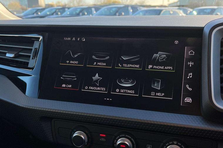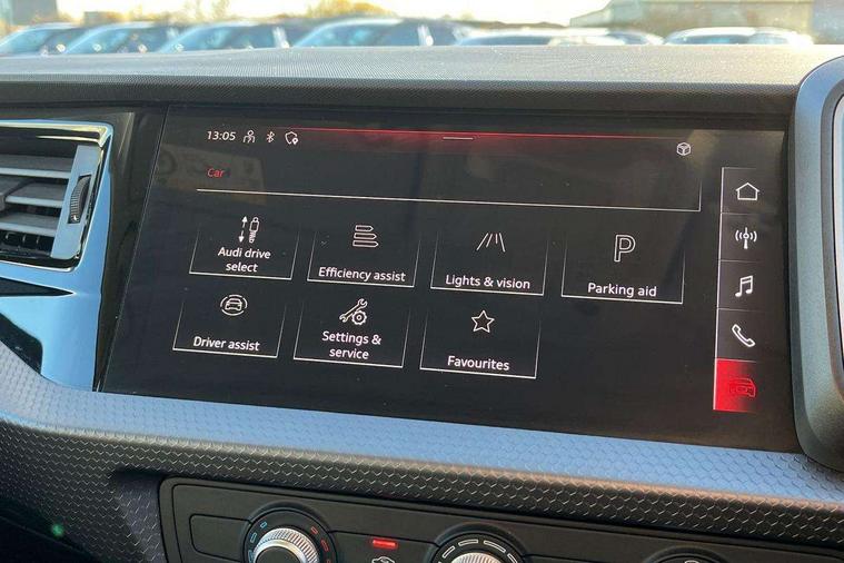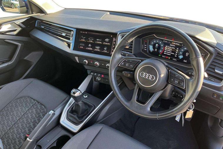 10.25" Digital instrument cluster display classis style instrument dials + speed, odometer, time, outside temperature, telephone menu + fuel level warning, Audi drive select - power steering assistance + engine, Audi smartphone interface with connect compatible smartphone via USB directly MMI display + Nav, music, third party apps controlled via MMI controller, Automatic start/stop system, Bluetooth interface, Cruise control, Driver's information system, Electromechanical power steering, Emergency e-call, Lane departure warning system, Rear parking sensor, Service interval indicator, Speed limiter, Voice control system, Washer fluid level indicator, Dynamic suspension, 2 x USB type C connection points, 6 passive loudspeakers, DAB Digital radio, MMI radio plus with 10.1" colour MMI display screen and MMI touch, Auto dimming rear view mirror, Body coloured bumpers, Body coloured door mirrors, Electric front and rear windows, Electrically adjustable, heated, folding door mirrors with integrated LED side indicator, Front side air inlets in grained matt black and C frame in anthracite black, Heat insulating glass windscreen and side windows, Heated rear windscreen, High level LED brake light, LED headlights with LED rear lights + dynamic rear indicators + headlight adjustment and high beam, turning light + LED daytime running lights, Radiator grille and rear diffuser in matt anthracite black, Radiator protective grille frame in matt aluminium silver, Rain and light sensors, Rear fog lights, Rear side wing doors, Rear wiper, Side front spoiler lips in grained matt black, 12V socket in centre console with two cup holders, 3 rear seats with headrests, 3 seat bench in 2nd row, 3 spoke leather multifunction plus steering wheel, 40:60 Split folding rear seat or folded fully, Black front and rear floor mats, Door sill trims with aluminium inlay, Driver and passenger seat with manual height adjust with forward and backwards adjustment, Front head restraints, Front passenger seat, Grey cloth headlining, Height and reach adjustable steering wheel, ISOFIX child seat mounting for front passenger and outer rear seats including top tether attachment point of outer rear seats, Leather gear knob with aluminium trim, Leatherette handbrake grip, Luggage compartment light with front and rear reading lights, Manual air conditioning, Manually adjustable lumbar support in front seats, Novum cloth upholstery with front sport seats, Luggage compartment pack - A1, 3x3 point rear seatbelts, Audi pre-sense front with pedestrain and cyclist recognition, Brake assist function, Driver and front passenger airbag with front side and head airbags, Electronic Stability Control including ABS, EBD, ASR and EDL, Front passenger airbag deactivation switch, Hill hold assist, Manual rear child locks, Seatbelt height adjustment for front seats, Seatbelt monitoring, Tyre pressure warning light, Warning triangle and first aid kit, Anti theft alarm, Anti theft wheel bolts and loose wheel warning, Immobiliser, Remote central locking with 2 foldaway keys, Aluminium trim for control switches, air vents and digital instrument cluster, Black dashboard, Silver grey accent areas including air vents, door handle recesses and centre console in diamond paint finish, Slate grey inlays polygon structure in fine paint finish,