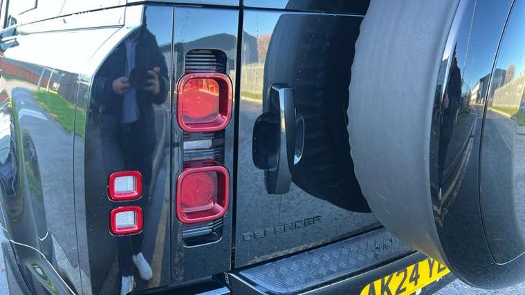 11.4" touchscreen, 360 degree parking aid, 3D Surround Camera with 360 View, 180 Rear View, Front Traffic Detection, Forward Vehicle Guidance, Tow Hitch Assist and clear sight Ground View, Adaptive cruise control, Android Auto, Apple CarPlay, Assisted tailgate with soft close, Blind spot assist, Bluetooth system, Brake pad wear indicator, Clear exit monitor, Connected navigation pro, Driver condition monitor, Electric power assisted steering (EPAS), Interactive driver display, Lane keep assist, Push button start, Rear collision monitor, Rear traffic monitor, Traffic sign recognition with adaptive speed limiter, Trip computer, Wade Sensing, 8 speed automatic transmission, Adaptive dynamics, All wheel drive system, Electronic air suspension, Twin speed transfer box, DAB Radio (Digital Audio Broadcasting), Pivi pro connected, Auto dimming interior rear view mirror, Automatic headlight levelling, Automatic headlights, Black exposed rear recovery eyes, Black roof rails, Centre high mounted stop light, Electric heated/power fold door mirrors with approach lights and auto dimming driver side, Electric windows with one touch open/close and anti-trap, Follow me home lighting, Front fog lights, Heated rear window with timer, Heated windscreen, LED tail lights, Privacy glass, Puddle lights, Rain sensing windscreen wipers, Rear fog lights, Rear side wing doors, Rear wiper, Side hinged tailgate, Sliding panoramic roof, Trailer stability assist, X-Dynamic badge, 12V power socket in loadspace, 14 way heated and cooled electric adjustable memory front seats with 4 way manual headrests, 3 seat bench in 2nd row, 3 seat bench in third row, Air quality sensor, Alpine lights, Cabin Air Purification plus, Configurable cabin lighting, Durable rubber cabin flooring, Durable rubber loadspace flooring, Electric cabin pre conditioning, Electric reach + rake adjustable steering column, Extended leather upgrade, Footwell lights, Front passenger isofix child seat attachment, Heated steering wheel, Loadspace cover, Loadspace Hook, Multifunction steering wheel, Overhead stowage for sunglasses, Premium cabin lighting, Rear headrests, Rear ISOFIX, Rear reading lights, Single front passenger seat, Storage glovebox, Sunvisors with illuminated vanity mirrors, Twin front cupholders with cover, Non-smoker package, Online pack with data plan - Defender, 5 x 3 point seatbelts, ABS, Brake hold function, Cornering brake control (CBC), Customer configurable autolock, DSC - Dynamic Stability Control, EBD - Electronic brakeforce distribution, Electric parking brake (EPB), Emergency brake assist, Emergency braking, ESP + traction control, Front airbags with passenger seat occupant detector, HDC - Hill descent control, Hill launch assist, Low traction launch, Power operated child locks, Remote for (e-Call, Optimised assistance call, InControl app, Climate, beep and flash and door), RSC - Roll stability control, Seat belt reminder, TPMS (Tyre pressure monitoring system), Alarm, Immobiliser, Intrusion sensor, Keyless entry, Locking wheel nuts, All season tyres, Body coloured spare wheel cover,