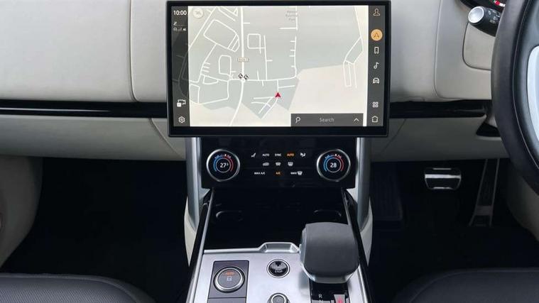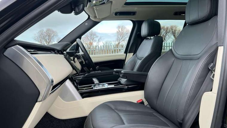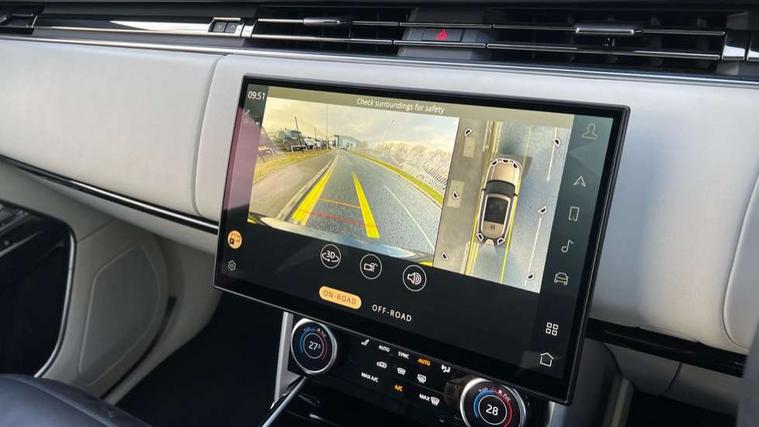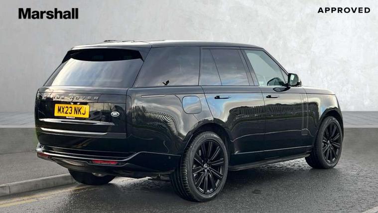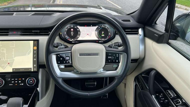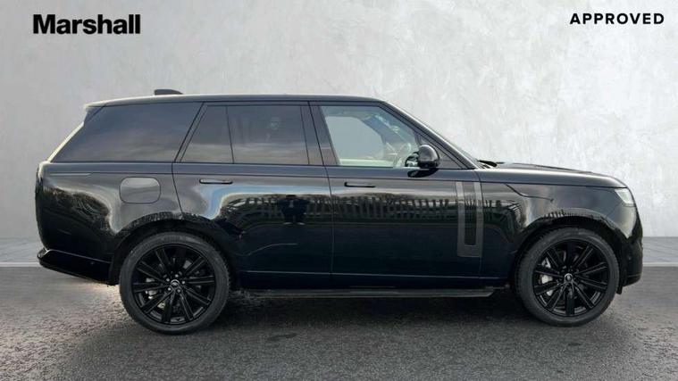 13.1" Touchscreen, 3D surround camera inc frwd traffic detection, vehicle clearance guidance, 3D view, clearsight ground view, manoevure light, 360 parking aid, wade sensing, Adaptive cruise control with steering assist, All Terrain Info Centre, All wheel steering, Android Auto, Apple car play, Blind spot assist, Bluetooth connectivity streaming, Driver condition response, Eco mode, Electric power assisted steering (EPAS), Emergency call service, Interactive driver display, Lane keep assist, Powered gesture tailgate/boot lid, Rear collision monitor, Rear traffic monitor, Remote, Traffic sign recognition with adaptive speed limiter, Wi-Fi Enabled with data plan, Wireless device charging with phone signal booster, 7 kW onboard charger, 8 speed automatic transmission, Active damper technology system, Adaptive dynamics, All terrain progress control, All Wheel Drive (AWD), Automatic access height, Home charging cable 5m Mode 2 including plugs, Public charging cable 5m Mode 2 including plugs, Terrain Response 2 Auto, Twin speed transfer box, Digital Audio Broadcast radio-DAB, Pivi pro including smart settings, Connected navigation pro, nuance speech, USB socket, Acoustic laminated windscreen, Animated directional indicators, Automatic headlights, Automatic levelling headlights, Centre high mounted stop light, Electric windows with one touch open/close and anti trap, Flush deployable exterior door handles, Front and rear recovery eyes, Front fog lights, Headlamp power wash, Heated rear window, Heated washer jets, LED tail lights, Power fold, auto-dimming, heated door mirrors with approach lights, Rain sensing windscreen wipers, Range rover badge, Rear boot, Rear fog lights, Rear side wing doors, Rear wash/wipe, Side repeater indicators in mirror, Trailer stability assist, Winter wiper park position, 12V power sockets, 3 seat bench in 2nd row, Air quality sensor, Bright metal pedals, Cabin lighting, Customer configurable single point entry, Driver and passenger front seat armrests, Easy boot loading, Ebony Carpet, Front and rear cupholders, Front and rear grab handles, Front head restraints, Gearshift paddles, Heated steering wheel, Hook in load space, Loadspace light, Luggage tie down in loadspace, Multifunction steering wheel, Rear centre armrest, Rear head restraints, Rear ISOFIX, Single front passenger seat, Twin blade sunvisors with Illuminated vanity mirrors, Upper and lower glovebox, Online pack with data plan - Range Rover, 3x3 point rear seat belts, Anti-lock braking system (ABS), Brake hold function, Cornering brake control (CBC), Customer configurable autolock, DSC - Dynamic Stability Control, Electronic brake force distribution, Electronic parking brake, Electronic traction control, Emergency brake assist, Emergency braking, Front airbags with passenger seat occupant detector, Front side airbags, Hill descent control, Hill launch assist, Low traction launch, Occupant protection assist, Power operated child locks, Roll stability control, Tyre pressure monitoring system (TPMS), Immobiliser, Intrusion sensor and alarm, Keyless entry, Locking wheel nuts, Remote central locking, Noble chrome controls,
