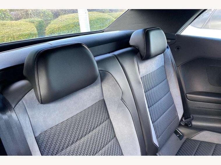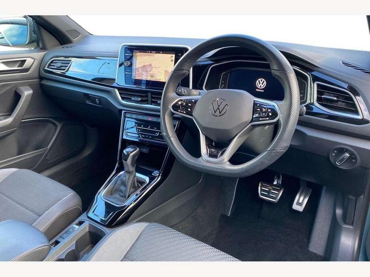 Adaptive cruise control and speed limiter, Bluetooth mobile phone interface, Brake pad wear indicator, Car information display, Digital Cockpit Pro with 10.25" Display, Driver alert system with fatigue detection, Driver tips and journey analysis, Emergency call service, Modified key software - reduce switch off time for key status change to Long no motion, Multifunction computer with visual gear change recommendation for fuel consumption, Multifunction front facing camera, Park assist including front and rear parking sensors, Speedo and rev counter, electronic odometer, trip, service interval display and exterior temperature gauge, Start/stop system with brake energy recovery, Tailgate/trunk lid release from outside, Warning sound and light for front seatbelts unfastened, Shock absorption in front, Diversity antenna for FM reception, Music playback - MP3, WMA and AAC files, SMS functionality - read, compose and send SMS messages using touch-screen display, Title and cover art display, USB-C Interface and USB charging socket, We Connect and We Connect Plus functionality, Ambient lighting with logo projection, Auto dimming interior rear view mirror, Automatic hazard lights activation under emergency braking, Automatic headlight control with LED separate daytime running lights with coming/leaving home function, Black roof, Body colour door handles, Body colour rear spoiler, Chrome effect left and right trapezoid exhaust tailpipe fascia surround, Chrome trim on upper and lower radiator grille, Dark red rear combination lamps in LED technology, Dusk sensor, Exterior mirrors aspherical on driver side, convex on front passenger side, Heat insulating glass windscreen, High level 3rd brake light, LED performance matrix headlights - dynamic range control, dynamic cornering light and turn signal + light mode for rain/fog/snow, LED rear number plate lights, Power operated canvas convertible top, Power windows with comfort operation and circuit breaker, R-Line design body coloured bumpers, Rain sensor, Rear boot, Rear exhaust tailpipe, Rear fog light on one side and reversing lights on both sides, Remote electrically foldable door mirrors, puddle lights and reverse activated passenger door mirror, Volkswagen roundel, Windscreen wiper with intermittent wipe light, Without exterior ambient lighting, 12V socket in centre console storage area, 2 LED front reading lights, 2 seat bench in 2nd row, 50:50 Split folding rear seat backrests with fixed rear seat bench, Air care climatronic air conditoning system with active combination filter and 2-zone temperature control, Black door lower parts with chrome trim, Chrome plated surround to light, mirror and window switch, Door and side trim panel with leatherette insert, Easy entry backrest release, Front and rear carpet mats with black stitching, Front centre armrest, Front cupholders x 2, Front door pockets, Front seat back storage pockets, Front sports comfort seats with manual height adjustment, Heated leather wrapped multi function sports steering wheel with tiptronic, Height/reach adjust steering wheel, Inserts of front seats and outer rear seats in ArtVelours titan black, Instrument lighting, white adjustable panel illumination, Interior light delay, Interior light in footwell, Interior lighting with switch off delay and contact switches on all doors, Interior white ambient lighting and surround lighting, Isofix child seat preparation, Lockable glove compartment with light, Luggage compartment lighting, Power adjustable lumbar support in front, Rear head restraints, Single front passenger seat, Stainless steel pedals, Sun visors with illuminated vanity mirrors, Unique R Line door sill protectors, Driver assistance pack without proactive passenger protection - T-Roc Cabriolet DSG, Sports pack - T-Roc cabriolet, 2 x 3-point seatbelts/outer rear seats with ECE label, Driver and front passenger airbag with front passenger airbag deactivation, Driver and front passenger safety-optimised head restraints, Drivers seatbelt reminder, Electronic parking brake, Electronic Stability Control (ESC) including ABS, ASR and EDL, Front and rear disc brakes, Front assist with autonomous emergency braking, Pedestrian monitoring, Predictive pedestrian protection, Rigid safety cell with front and rear crumple zones, Side airbag/thorax airbag system, for front passengers, Single tone horn, Three point height adjust front seatbelts + pretensioners, Tyre pressure loss indicator, Volkswagen roadside assistance, Anti-theft alarm system with interior protection and central locking system with SAFELOCK, radio remote control and 2 remote control folding keys, Electronic engine immobiliser, Trims for alloy wheels,