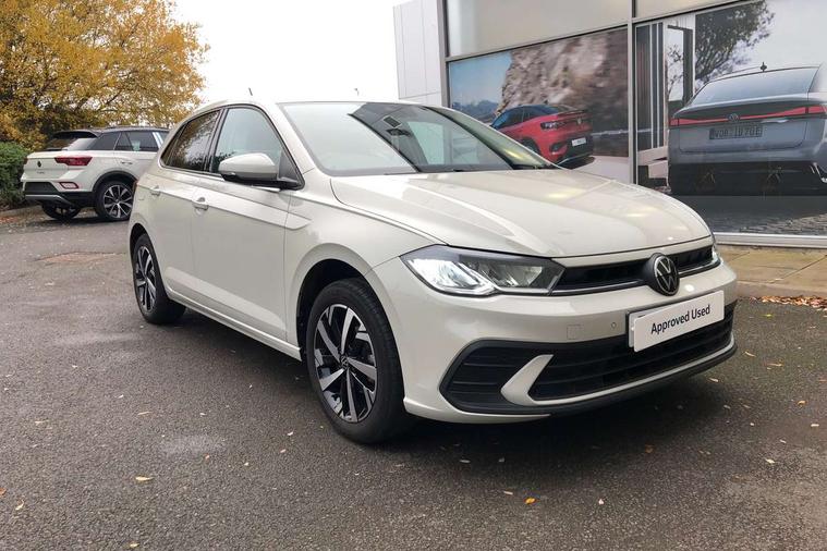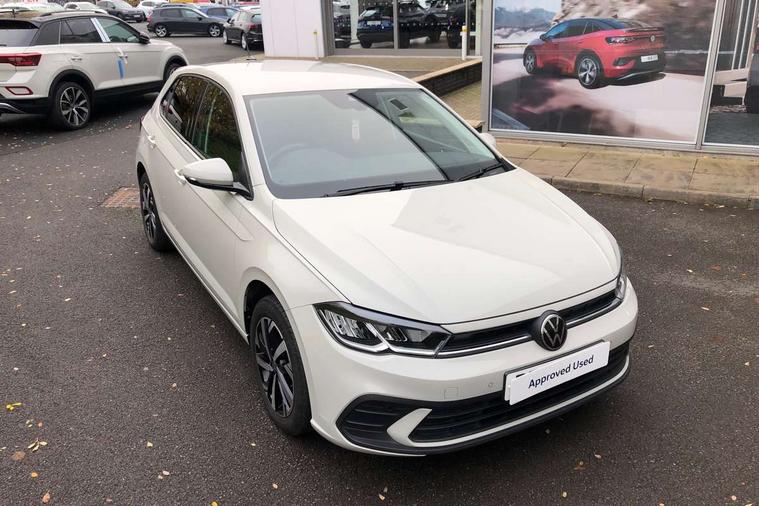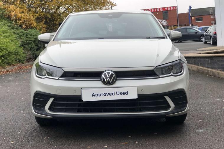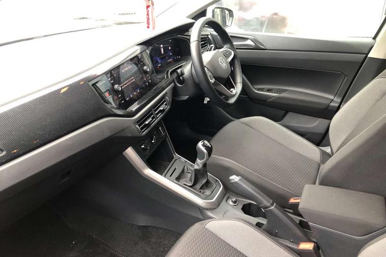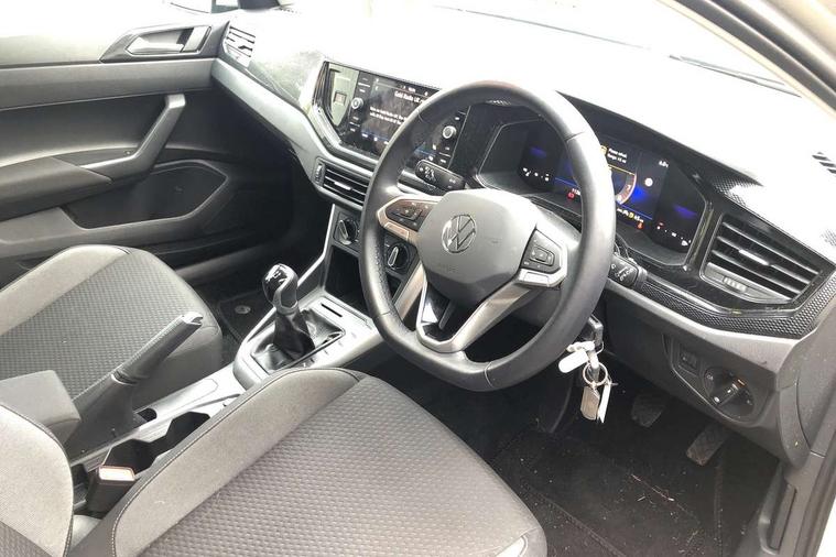 Adaptive cruise control without follow-to-stop and speed limiter, Advanced driver attention and drowsiness monitor, Bluetooth mobile phone interface, Dynamic road sign display, Emergency call service, Multifunction front facing camera for distance control, Park distance control, Power assisted speed sensitive steering, Preparation for navigation system with media and internet package, Preparation for We connect and We connect plus, Rear view camera, Speedo and rev counter, electronic odometer, trip, service interval display and exterior temperature gauge, Standard rear axle, Travel Assist - Lane keeping system and traffic jam assist, Travel assist including emergency assist, Trip computer, Warning signal and warning light for front and rear seatbelts not fastened, Washer fluid level indicator, Wireless app connect, Front wheel drive, Rear shock absorpion, Start-stop system with battery regeneration (recuperation - energy recovery during braking), DAB Digital radio, Diversity antenna for FM reception, Front and rear 6 speakers, Automatic dimming interior rear view mirror, Automatic headlight control with LED separate daytime running lights with coming/leaving home function, Body colour bumpers with chrome inserts, Body colour door handles, Body colour door mirrors, Electric front windows, Engine badge deletion, Headlight range adjustment, Heat insulating and laminated safety glass windshield, LED Headlights, LED rear combination lamps, Power folding adjustable/heated exterior mirrors and front passenger exterior mirror lowering function, Rain sensor, Rear electric windows, Rear fog light, Rear side wing doors, Rear tinted glass from B-pillar backwards approx 65% tinted, Rear windscreen washer and wiper with interval delay, Third brake light, 12V power socket in centre console, 2 front and 2 rear reading lights with switch off delay and dimmer, 2 USB-C ports in the front, 2 USB-C charging sockets on the center console in the rear, 3 rear head restraints, 60/40 split folding rear seat and rear seat bench not split, Ceramique roof lining, Chrome plated radiator grille inserts, air vent surrounds and light switch surrounds, Door and side trim panel, Driver and front passenger seat height adjustment, Driver/passenger sunvisors with illuminated vanity mirrors, Front centre armrest, Front seat backrest storage pockets, Front standard seats, Handbrake lever handle in leather, Hartley/Thomas cloth upholstery, Headliner in recycled material, Isofix child seat preparation easy-fit (for two outer rear seats, and front passenger seat) compatible with I-size, Leather trimmed gear knob, Luggage compartment cover, Luggage compartment lighting, Removable luggage compartment floor, Single front passenger seat, Standard climatic zones, Standard pedal cluster, Three spoke leather wrapped multifunction steering wheel, Light and vision pack - Polo, 3 point height adj front seatbelts + pretensioners, 3 point seat belt for centre rear seat, 3 point seatbelts, outer rear with ECE lable, ABS, Driver and front passenger airbag with front passenger airbag deactivation, Drivers and front passengers safety optimised head restraints, ESC (Electronic stability control) + EDL (Electronic Differntial lock) and ASR (Traction control), Extended and predictive pedestrian/ cyclist protection, Front assist with autonomous emergency braking (for Adaptive Cruise Control ACC up to 130 mph), Front curtain and side airbags with center airbag, Front disc brakes, Hill hold control, Manual child lock in rear doors, Rear drum brakes, Single tone horn, Tyre pressure loss indicator, Alarm with interior protection, Anti-theft alarm system with interior monitoring, backup horn, and towing protection, Anti-theft wheel bolts, Electronic engine immobiliser, Lava stone black gloss/matt decorative inserts in dash and front door panels, 16" Torsby alloy wheels, Low rolling resistance tyres,