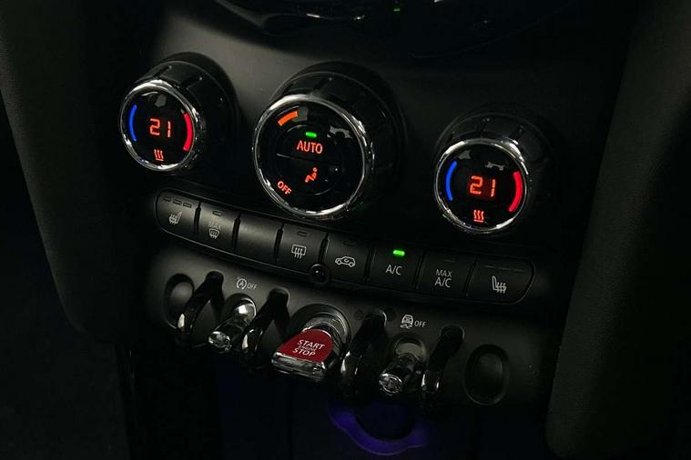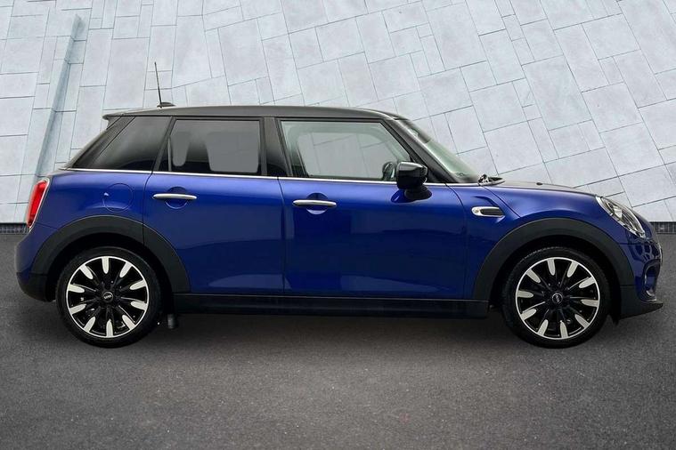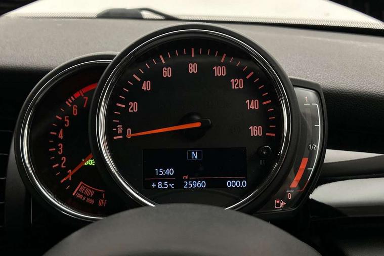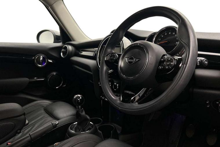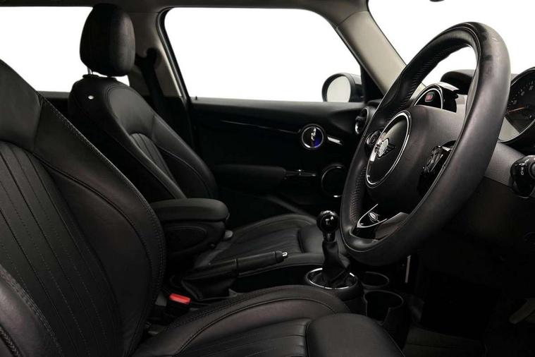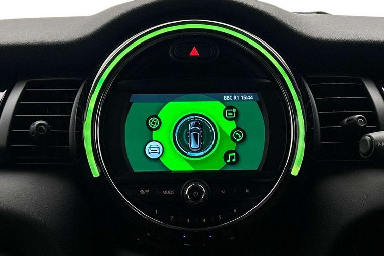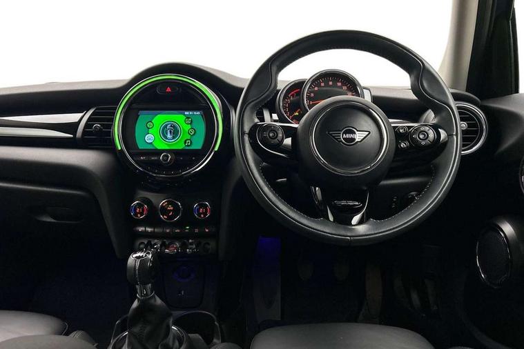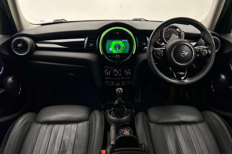 Automatic start/stop function with brake energy recuperation, Compatible mobile phone bluetooth with audio streaming, Electro-mechanical speed dependant steering assistance, Instrument cluster, Mini E-call, MINI TeleServices, On board computer, Service interval indicator, Double Vanos system, Fully variable valve control, High precision injection, 6.5" touchscreen with LED ring, FM tuner and DAB digital radio, Automatic headlight activation switch, Body colour fuel filler cap, Chrome border high gloss black slats radiator grille, Chrome line exterior, Dynamic brake lights, Electric front+rear windows, Heated rear window, Heated windscreen washer jets, LED headlight with closed ring and daytime driving lights, Left exhaust tailpipe with chrome finisher, Metal door sill strips with MINI imprint, Model logo Cooper on right of tailgate, Radiator grille bars, tailgate handle, lower front grille grating, rear central fog light in chrome, Rain sensor window wipers, Rear fog lights, Rear LED lights with union jack design, Rear window wiper, Side scuttle panel with integrated indicator, Sun/heat protection glass, White indicator lenses, 12V Accessory socket in centre console, 4 lashing eyes in luggage compartment, 60/40 split folding rear seat, Air vents, gear lever base, speakers in doors, door handles in chrome, Chrome interior highlights, Cupholders, Front and rear head restraints, Front and rear isofix with front passenger airbag deactivation, Glove compartment, Height and length steering column adjustment, Interior lighting with 12 basic colours selectable via toggle switch in roof, Leather gearshift lever and handbrake gaiters, LED reading lights, vanity mirror lights, front foot well light and spotlight on front seats, Manual air conditioning, Mechanical seat adjustment, driver seat height adjust, forward/back and front seats backrest, Mini logo projection on floor from drivers exterior mirror, MINI Yours leather steering wheel with silver contrasting stitching with MINI Yours badge, Multifunction steering wheel, Storage compartments in doors, Sunvisors with vanity mirrors, 3 point seatbelts on all five seats, 6 Airbags - front, side, head and seat belt tensioners, Anti-lock braking system (ABS), DSC - Dynamic Stability Control, Front and rear disc brakes, Hill start assist, Single tone fanfare horn, Tyre pressure monitoring system, Alarm system with tilt sensor, monitoring doors, bonnet interior and tailgate, Electronic vehicle immobiliser, Start/stop toggle with keyless go, Chrome line interior, Tool kit,