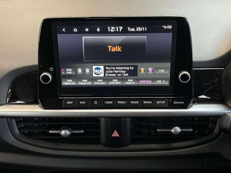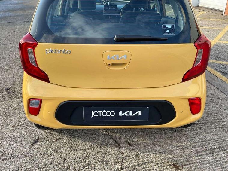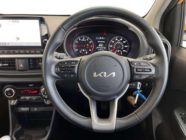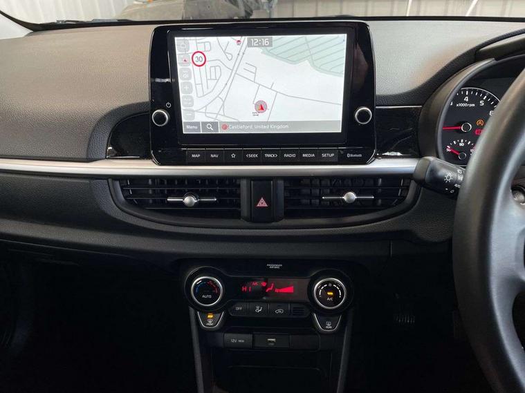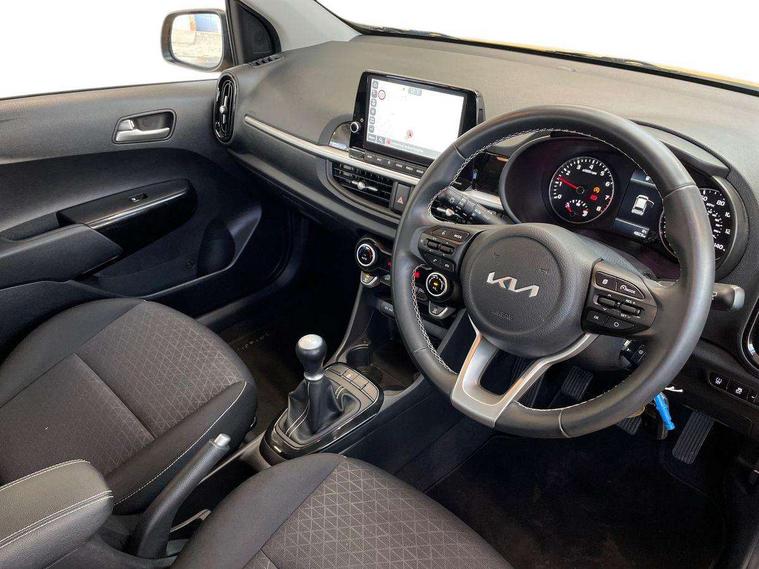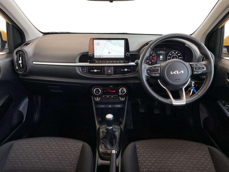 4.2" supervision monochrome cluster display, 8" touch screen satellite naviagtion with RDS and DAB with telematics, Apple car play/Android Auto with voice control, Cruise control + speed limiter, Emergency call service, Emergency stop signalling system, External temperature gauge, Forward Collision-Avoidance Assist (FCA) - City, Kia Connect (UVO), Motor driven power steering, Rear parking sensors, Reversing camera system with dynamic guidelines (Integrated into centre fascia screen), Tachometer, Tailgate, Trip computer, 6 speaker audio system, Bluetooth with music streaming, Steering wheel mounted controls, USB ports for connection of a media device, Automatic headlight control system, Black radiator grille with chrome surround, Body colour bumpers, Body coloured mirrors and chrome exterior handles, Day/night rear view mirror, Daytime running lights, Electric adjustable/heated/folding door mirrors with LED indicators lights, Front and rear electric windows with drivers's auto up/down function, Front fog lights, Headlamp levelling, Heated rear window, High mount brake light, MFR - Multi Focus Reflector halogen headlights with black bezel, Rain sensor, Rear fog lights, Rear side wing doors, Rear wash/wipe, Speed variable front wipers, Tinted glass, Visible VIN plate, Welcome and follow-me home light functionality, 1 x rear coat hook, 12V power point front, 2 seat bench in 2nd row, 3 x passenger assist grips, 60/40 split/folding 2nd row of seats, All round height adjustable headrests, Automatic air conditioning, Centre Console with Storage Box and Sliding Armrest, Cupholders in centre console, Driver and front passenger sunvisor with vanity mirror, Driver seat height adjust, Front cabin lights, Glovebox, High gloss lower centre fascia trim, door armrest and air vents, ISOFIX Child seat top tethers and anchor fixings, Leather trimmed steering wheel and gearshift, Luggage area light, Luggage area parcel shelf, Passenger front seatback pockets, Premium cloth upholstery, Silver paint finished interior door handles, Single front passenger seat, Slide/reclining front seats, Tilt adjustable steering wheel, Advanced Driver Assistance Pack - Picanto, 2 x 3-point rear seatbelts, ABS/EBD, Automatic unlocking of doors in case of impact, ESC + BAS + VSM + HAC, Front passenger airbag cut-off switch, Front seatbelt height adjusters, Front seatbelt pretensioners, Hill hold control, Hill start assist control (HAC), Knee airbags, Rear child proof door locks, Seatbelt warning, Side impact protection, Torque vectoring brake based and straight line stability (SLS), Traction control, Twin curtain airbags, Twin front airbags, Twin front side airbags, Tyre pressure monitoring system, Anti theft alarm, Engine immobiliser, Folding key, Locking wheel nuts, Remote central door locking, 15" Alloy wheels, Tyre mobility kit,