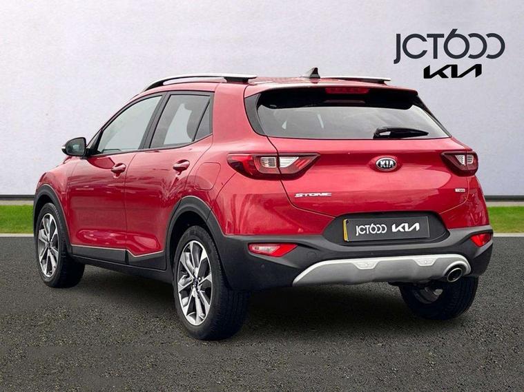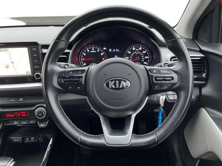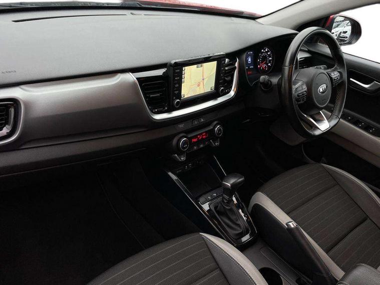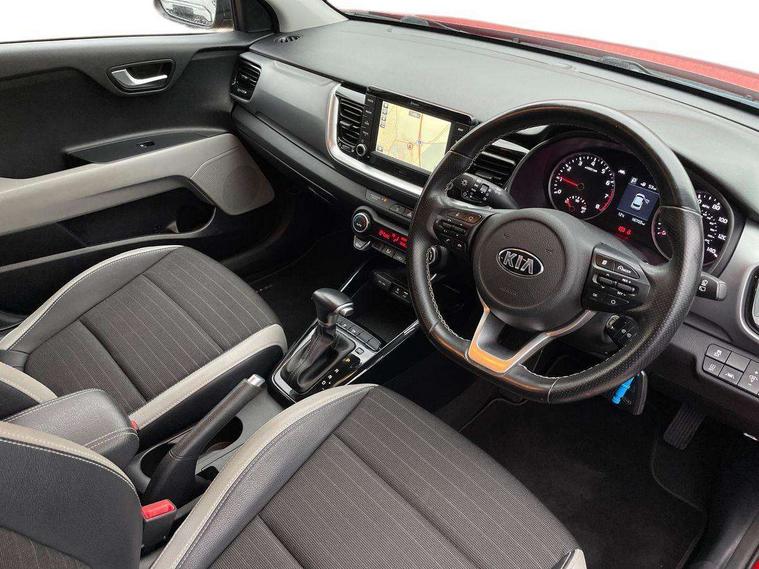 7" touch screen sat nav with TMC, Apple car play/Android Auto, Bluetooth connectivity with voice control, Cruise control + speed limiter, Driver attention warning, Electric power steering, Emergency stop signalling system, Forward Collision-Avoidance Assist (FCA) - City/Urban/Pedestrian, Gear selection indicator, Instrument cluster- 3.5" Monochrome TFT Display, Kia connected services featuring TomTom live, Lane keep assist system, Outside temperature display, Rear parking sensor with On/Off switch button, Reversing camera, Reversing camera system with dynamic guidelines (Integrated into centre fascia screen), Trip computer, Windscreen washer level indicator, Intelligent Stop and Go, 'Shark fin' mobile antenna, 6 speakers, 7" LCD screen, Bluetooth audio streaming, DAB Digital radio, RDS radio with MP3 player, Rear USB port, Steering wheel mounted audio controls, USB and auxiliary socket, Aero blade type windshield wipers, Auto dimming rear view mirror, Automatic defog system, Automatic front rain sensing wipers, Automatic lighting control, Bi-function projection headlights with static bending, Black door garnish, Black side sills, Black wheel arch extensions, Body colour bumpers, Body colour door handles, Body colour door mirrors, Electric adjustable/heated/folding door mirrors, Electric front windows + drivers one touch, Follow me home headlights, Front skid plate - silver, Headlamp levelling, Heated rear window, High beam assist, High Gloss Black and Satin Chrome Radiator Grille, High level brake light, LED daytime running lights, LED Indicators, LED rear combination lights, Matt black lower mirror housing, Projection front fog lights, Rear electric windows, Rear fog lights, Rear privacy glass, Rear skid plate - silver, Rear spoiler, Rear wash/wipe, Roof rails, Speed sensitive front wipers, Visible VIN plate, Welcome home function, 12V power point front, 3 passenger grab handles, 60/40 split/folding 2nd row of seats, Air filter, Automatic air conditioning, Centre console storage box/armrest, Centre console with cupholders, Cloth/faux leather upholstery, D-cut steering wheel, Dash illumination dimmer switch, Door pockets with bottle holder, Driver's seat height adjuster, Driver/passenger sunvisors and illuminated vanity mirrors, Front map lights, Glovebox illumination, Height adjustable headrests, Ignition key lock illumination, ISOFIX top tethers and lower anchor points, Leather trimmed gearshift, Luggage area lamp, Luggage net with hooks, Overhead console lamp, Overhead console with sunglasses holder, Passenger front seatback pockets, Rear parcel shelf, Satin chrome interior door handles, Tilt/telescopic adjustable steering wheel, Advanced driver assistance pack - Stonic, 3 point front seat belts, 3x3 point rear seatbelts, ABS/EBD, Automatic unlocking of doors in case of impact, Dual curtain airbags, Dual front airbags, Dual front side airbags, ESC + BAS + VSM + HAC, Front seatbelt pretensioners + load limiters, Height adjustable front seatbelts, Passenger airbag deactivate switch, Seatbelt warning, Traction control, Tyre pressure monitoring system, Anti theft alarm, Deadlocking system, Engine immobiliser, Folding key, Locking wheel nuts, Remote central door locking, Speed sensitive auto door locking, High gloss black centre fascia, 17" Alloy wheels, Tyre mobility system,