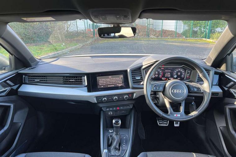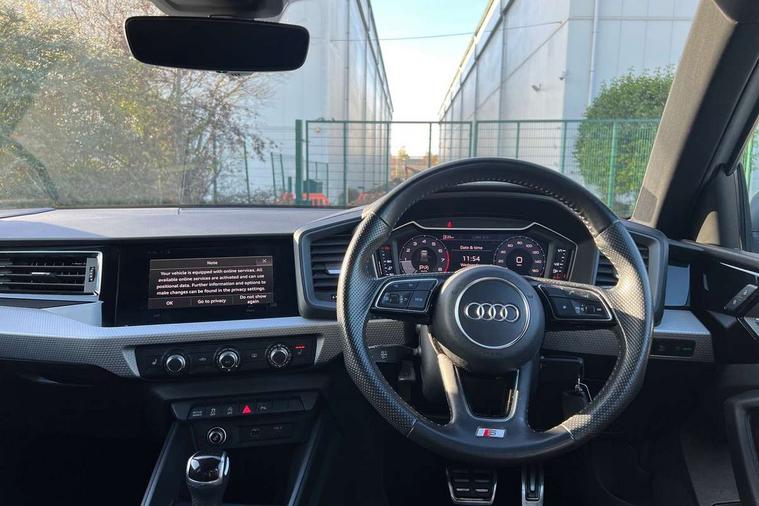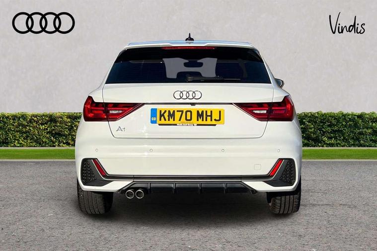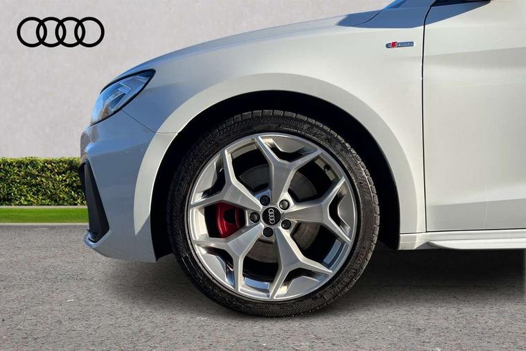 10.25" Digital instrument cluster display classis style instrument dials + speed, odometer, time, outside temperature, telephone menu + fuel level warning, Audi connect safety emergency and service including E-call, Audi drive select - power steering assistance + engine + gear shift 3 preset modes (auto, dynamic, efficiency and an Individual mode), Audi smartphone interface with connect compatible smartphone via USB directly MMI display + Nav, music, third party apps controlled via MMI controller, Automatic start/stop system, Bluetooth interface, Cruise control, Driver's information system, Electromechanical power steering, Lane departure warning system, Rear parking sensor, Service interval indicator, Speed limiter, Voice control system, Washer fluid level indicator, Sports suspension with adjustable dampers, 1 x SDXC card reader, 1 x USB type C and 1 USB type A charging points, DAB Digital radio, MMI radio plus with 8.8" colour MMI display screen and MMI touch, Audi rings logo foil in platinum grey, Auto dimming rear view mirror, Deletion of engine technology designation at rear, Door mirrors in platinum grey, Door sills with aluminium inlays and S Line logo, Electric front and rear windows, Electrically adjustable, heated, folding door mirrors with integrated LED side indicator, Front side air inlets in grained matt black and C frame in titanium black, Heat insulating glass windscreen and side windows, Heated rear windscreen, LED headlights with LED rear lights + dynamic rear indicators + headlight adjustment and high beam, turning light + LED daytime running lights, Radiator grille and rear diffuser in matt titanium black, Radiator protective grille frame in matt aluminium silver, Rain and light sensors, Rear fog lights, Rear wiper, S line badges on front wings, Side front spoiler lips in grained matt black, Visible tailpipes, 12V socket in centre console with two cup holders, 3 rear seats with headrests, 40:60 Split folding rear seat or folded fully, Black cloth headlining, Driver and passenger seat with manual height adjust with forward and backwards adjustment, Front and rear black floor mats with contrast stitching in fine silver, Front head restraints, Height and reach adjustable steering wheel, ISOFIX child seat mounting for front passenger and outer rear seats including top tether attachment point of outer rear seats, Leather gear knob with aluminium trim, Luggage compartment light with front and rear reading lights, Manually adjustable lumbar support in front seats, Stainless steel pedals, LED interior lighting pack - A1, Luggage compartment pack - A1, S line exterior styling pack - A1 Sportback, 3x3 point rear seatbelts, Audi pre-sense front with pedestrain and cyclist recognition, Brake assist function, Driver and front passenger airbag with front side and head airbags, Electronic Stability Control including ABS, EBD, ASR and EDL, Front and rear seatbelt reminder, Front passenger airbag deactivation switch, Hill hold assist, Red brake calipers, Seatbelt height adjustment for front seats, Seatbelt monitoring, Tyre pressure warning light, Warning triangle and first aid kit, Anti theft alarm, Anti theft wheel bolts and loose wheel warning, Immobiliser, Remote central locking with 2 foldaway keys, Aluminium trim for control switches, air vents and digital instrument cluster, Silver grey inlays polygon structure in diamond paint finish, Structured grey accent areas including air vents, door handle recesses and centre console in quartz paint finish,