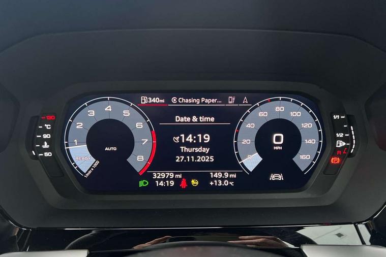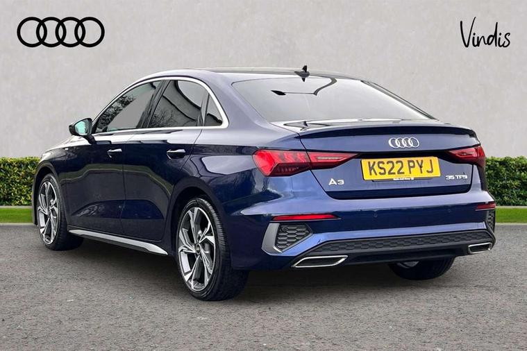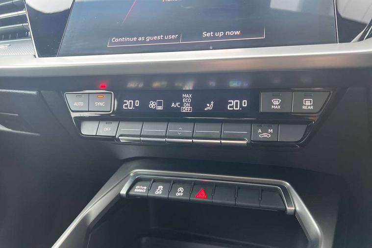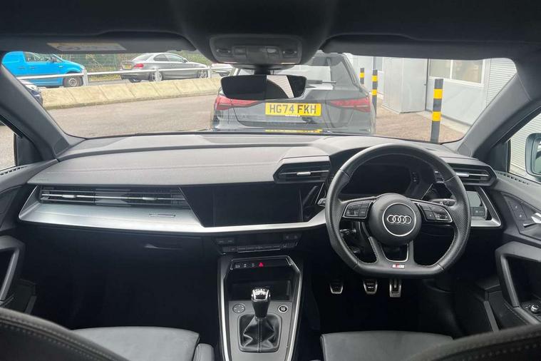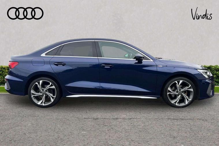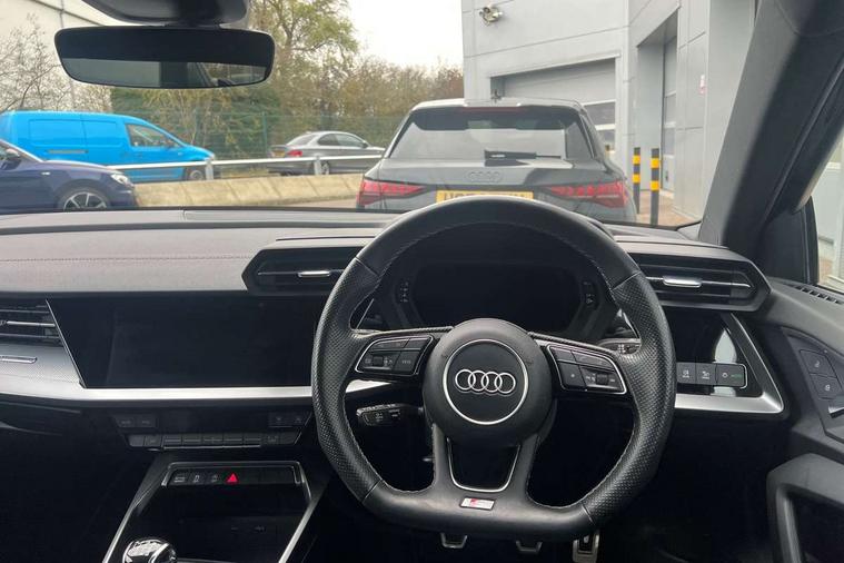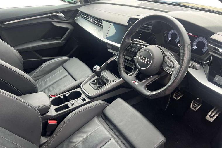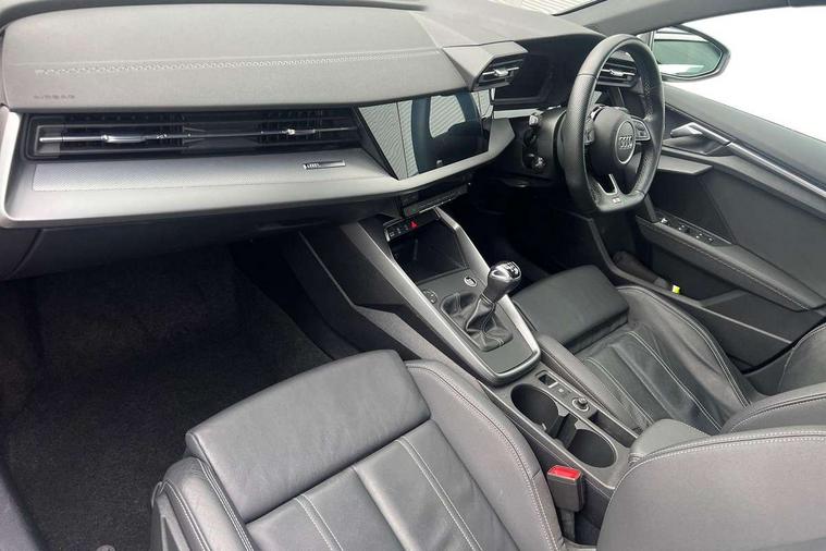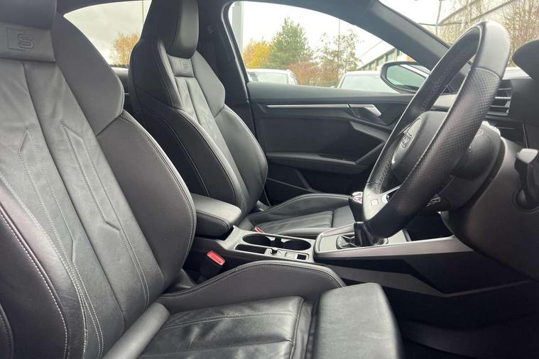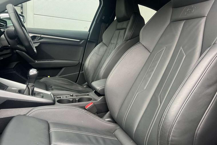 Audi connect emergency call and service, Audi drive select (Auto, Comfort, Dynamic, Efficiency and Individual), Audi smartphone interface, Audi Virtual Cockpit - 10.25" digital and colour instrument cluster, Automatic start/stop system with recuperation, Bluetooth interface, Collision avoidance assistant, Cruise control + speed limiter, Electromechanical power speed sensitive steering, Lane departure warning system, MMI Navigation Plus with high resolution 10.1" colour touch screen display, Rear parking sensors, Service indicator, Voice control system with natural language interaction, 2x USB Type C ports (for charging and data transfer), 6 passive loudspeakers, CD player, DAB Digital radio, 3rd brake light, Acoustic glass windscreen, Aluminium window trim, Auto dimming frameless rear view mirror, Electrically adjustable/heated/folding/auto dimming door mirrors with integrated LED indications + kerb view function for passenger side, Front electric windows, Illuminated door sills with aluminium inserts at the front with S logo, LED daytime running lights, LED headlights with LED rear lights and dynamic rear indicators, Light and rain sensors, Model and engine designation badges at rear, Privacy glass - dark tinted rear window, rear door and side windows, Rear boot, Rear electric windows, Rear side wing doors, S line bumpers, S roof spoiler, 12V socket and storage compartment in front centre console, 3 seat bench in 2nd row, 40/20/40 split folding rear seat bench with cupholder, Black cloth headlining, Dual zone electronic climate control, Front and rear centre armrest in leather, Front and rear headrests, Front/rear floor mats, Height and reach adjustable steering wheel, Illuminated vanity mirror, Interior lighting - glove compartment light and right hand side, Luggage compartment floor covering, Manual boot compartment lid, Manually adjustable front sport seats, Seat side bolsters, Single front passenger seat, Stainless steel pedals and front footrest in black, Twin leather upholstery with front sports seats S embossed logo, Aluminium interior elements pack - A3, S line styling pack - A3 Saloon, 3x3 point rear seat belts, Driver and front passenger airbag with passenger airbag deactivation, Electronic Stabilisation Control (ESC) including ABS, ASR and EDL, First aid kit with warning triangle and 2 safety vests, Front side airbags with head airbags and interaction airbag, Hill hold assist, Pre-sense front with pedestrian and cyclist detection, Seatbelt monitoring, Tyre pressure loss indicator, Anti theft alarm, Anti-theft wheel bolts, Immobiliser, Manual child locks, Remote control central locking, Aluminium air vent surrounds, Aluminium trim elements, Dark spectrum aluminium inlays, accent surfaces in the dashboard and centre console in platinum grey silk effect paint finish,