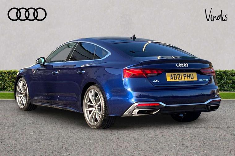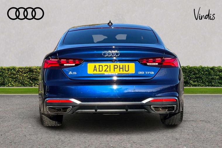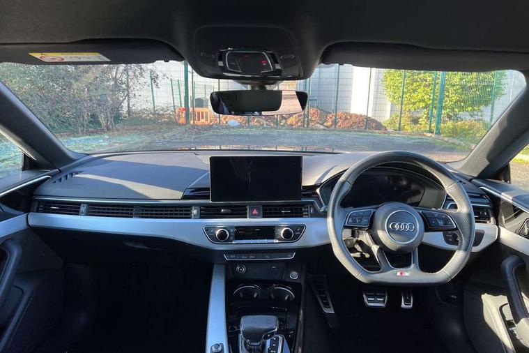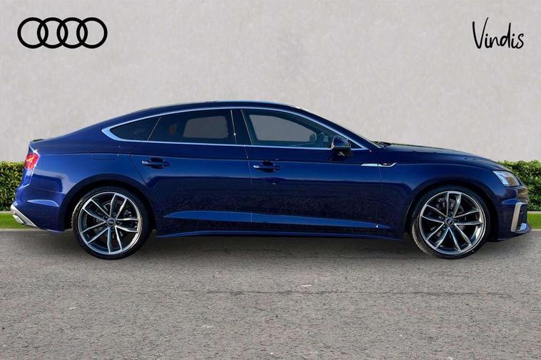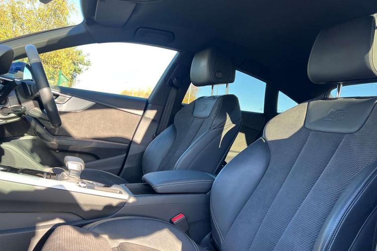 Audi connect safety and service (e-call), Audi connect with Amazon Alexa Integration, Audi drive select (Auto, Comfort, Dynamic and Individual), Audi parking system plus with front and rear sensors, Audi phone box with wireless charging, Audi smartphone interface, Audi virtual cockpit - 12.3" full colour digital instrument cluster, vehicle/engine speed, Radio/media information+Driver assistance systems, Automatic start-stop system with coasting functionality and efficiency programme, Bluetooth interface, Electro-mechanical power steering, Email, calendar and text messages displayed via MMI, MMI nav+ with MMI touch - 10.1" high resolution MMI display, touch sensitive, 3D map, route/country info, dynamic route guide, personal route assist, Power operated tailgate, Rear view camera, Service interval indicator, Voice control system, Sports suspension lowered by 23mm, 8 passive loudspeakers, CD player, DAB digital radio reception, Two additional USB ports for rear passenger in rear centre console, Two SDXC card slots, Audi matrix LED headlights with LED rear lights + dynamic front and rear indicators, Auto dimming rear view mirror, Body colour bumpers, Body colour door handles, Body colour front spoiler lip, Body colour side sill trim, Body coloured door mirrors, Electric adjustable heated door mirrors, Electric folding door mirrors, Electric front windows, Front fog lights, Honeycomb structure radiator grille in grained matt black, LED daytime running lights, Matt aluminium silver tailpipe trim, Privacy glass, Rain and light sensors, S line badges on front wings, S line front and rear bumpers with side skirts, S Line rear diffuser in matt titanium black with trim strip in matt aluminium silver, Side air inlets in grained matt black with matt aluminium silver inlay, Windscreen with acoustic glazing, 4 way electric lumbar support for driver and front passenger, 40/20/40 split folding 3 seater rear bench seat, Adjustable steering column, Black cloth headlining, Black perforated leather gearknob, Contrast stitching on seats, steering wheel and gear lever gaiter, Deluxe 3 zone electronic climate control, Front centre armrest, Front head restraints, Front/rear floor mats, Heated front seats, Illuminated door sill trim with S logo, ISOFIX child seat mounting and top tether, Luggage compartment mat, Manual seat adjustment, Rear headrests, Stainless steel pedals, Sunvisors with vanity mirrors, Tool kit, LED interior light pack - A5/RS5, 3x3 point rear seatbelts, 6 airbags - Driver, front passenger, curtain and side airbags, Electromechanical parking brake, Electronic Stabilisation Control (ESC) including ABS, ASR and EDL, Front passenger airbag deactivation, Height adjustable front seatbelts, Hill hold assist, Multi collision brake assist, Pop-up bonnet for pedestrian protection, Pre sense city, Seatbelt monitoring, Tyre pressure warning, Variable restraint system, Warning triangle and first aid kit, Anti theft alarm system, Anti theft wheel bolts, Immobiliser, Keyless Go, Remote central locking, Matt brushed aluminium inlays, Tyre repair kit,