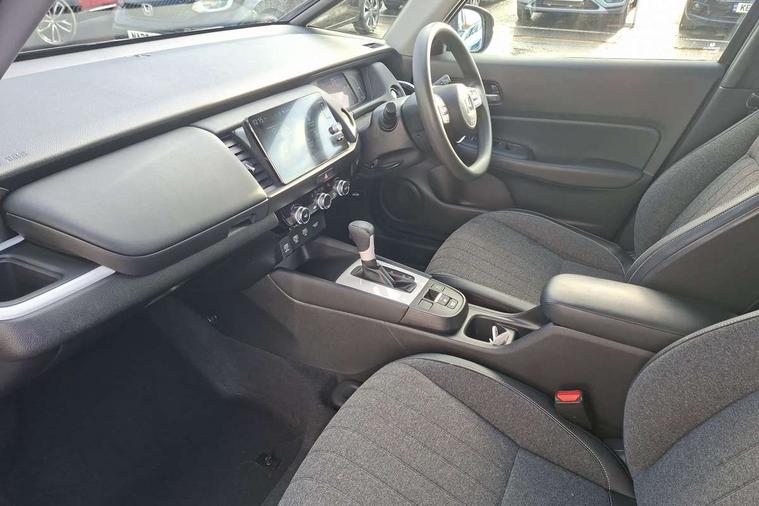 Adaptive cruise control, Adjustable speed limiter, Agile handling assist, Bluetooth hands free telephone connection, eCall emergency call system, Econ mode, Electric power steering wheel with variable gear ratio steering, Emergency stop signalling system, Forward collision warning, Front and rear parking sensors, Honda CONNECT with 9" touchscreen, AM/FM/DAB/Apple Carplay and android auto, Idle stop, Intelligent speed limiter, Lane departure warning system, Lane keep assist system, Low speed following, Multi-information display, Road departure mitigation, Traffic sign recognition, Vehicle stability assist, 'Shark fin' mobile antenna, 2x USB Front socket (1 data & 1 charge), 4 speakers, Remote audio controls on steering wheel, Aspheric door mirrors, Auto wipers, Automatic headlights with on/off timer, Coming/leaving home function, Body colour door handles, Body colour door mirrors, Body coloured bumpers, eHEV emblem, Electric adjustable door mirrors, Electric front windows, Electrically folding door mirrors, Heated door mirrors, High beam assist, LED daytime running lights, LED Headlights, LED rear lights, Rear side wing doors, Rear wiper, Single exhaust tailpipe, Third brake light, 3 seat bench in 2nd row, 60/40 split rear bench seat, Cargo net hooks, Climate control air conditioning, Driver and front passenger seat armrests, Driver and passenger front seat pockets, Driver's seat height adjustment, Fabric/leather upholstery, Front accessory power socket, Front head restraints, Front map lights, Front/rear courtesy lights, Isofix child seat restraint mechanism, Isofix points, Magic seat flexibility system, Plating interior door handles, Rear head restraints, Rear parcel shelf, Single front passenger seat, Sunvisors with vanity mirrors, Tilt/telescopic adjustable steering wheel, Tonneau cover, Trunk light, 3x3 point rear seatbelts, Anti-lock braking system (ABS), Brake assist function, Brake hold function, Child locks on rear doors, Collision mitigation braking system, Deflation warning system, Driver knee airbag, Driver SRS airbag (single stage inflation), Driver/Front Passenger airbags, Electric parking brake, Front and rear side curtain airbag, Front side airbags, Hill start assist, Passenger SRS airbag cut-off device, Rear side airbags, Whiplash lessening front headrests, Front seat belt with emergency locking retractor, Honda super locks, Immobiliser, Mirrors key fob operation, Remote central locking with 2 remote folding keys, Security alarm, Soft pad leather interior panels, 15" Multi apperance alloy wheels in mat berlina black, Tyre repair kit,