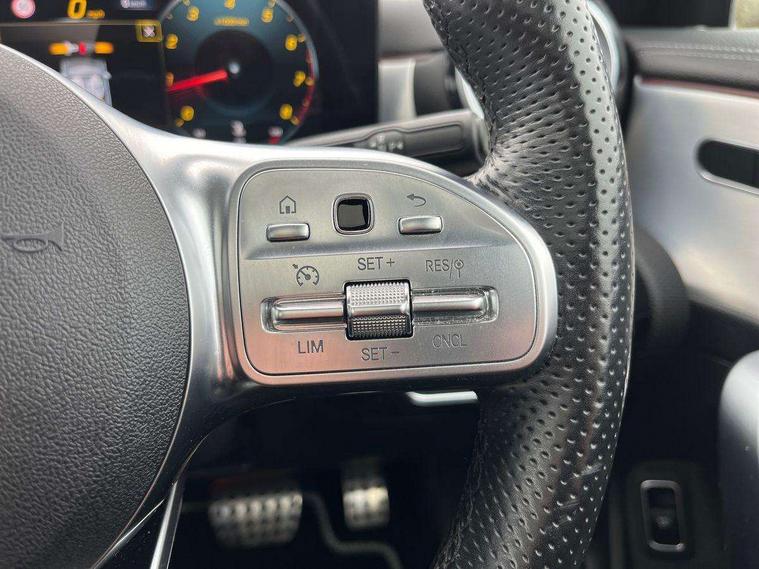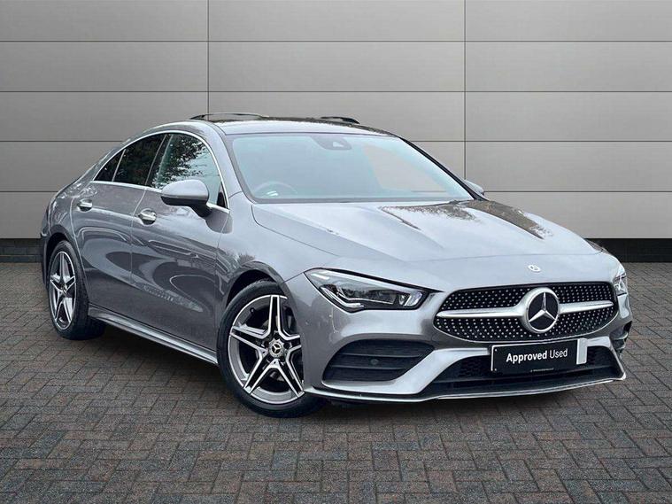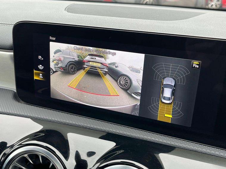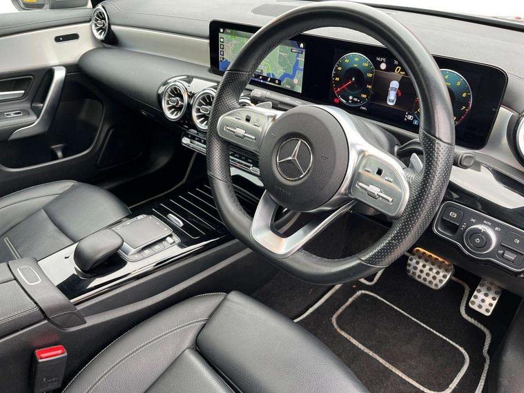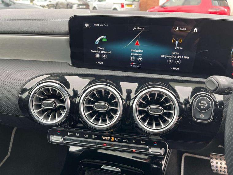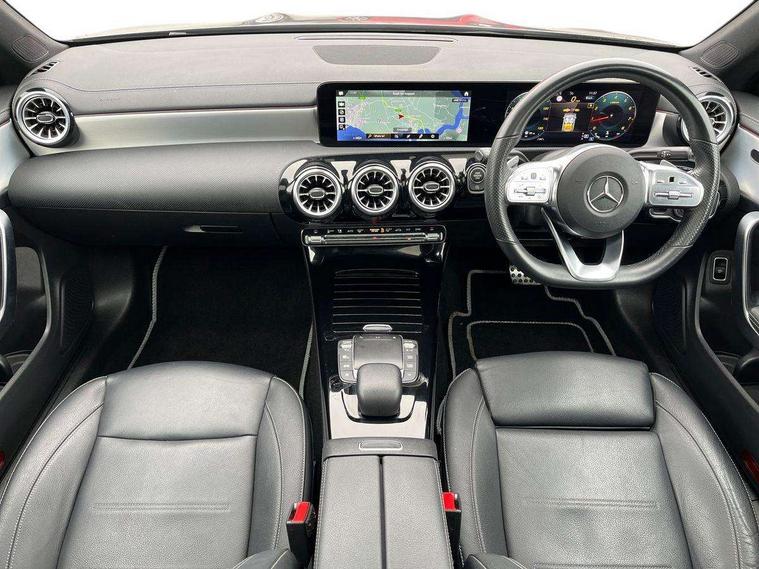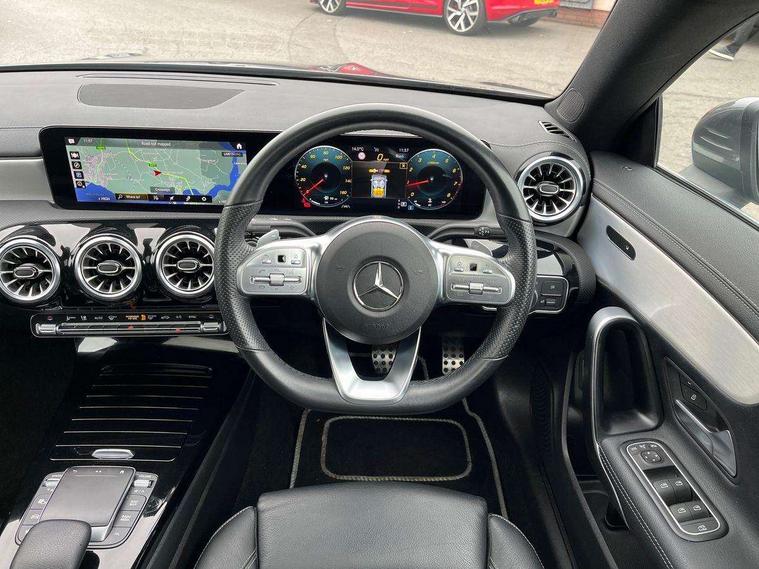 10.25 inch Instrument display with digital cockpit, 10.25 inch touchscreen central media display, Attention assist - Monitors steering behaviour and long journey fatigue, Bluetooth connection, Car wash mode, DYNAMIC SELECT with a choice of driving modes (ECO, Comfort, Sport and Individual), ECO start/stop function, Fluid level warning indicator for fuel, oil, coolant and washer fluid, Hard-disk navigation, Hey Mercedes Voice activation, Lamp failure indicator, Mercedes me connect including emergency call system, accident recovery, breakdown management and maintenance, Mercedes me remote services, Outside temperature gauge, Owners manual and service booklet in English, Pre-installation of private car share, Preinstallation for Mercedes Benz link, Radio aerial integrated into front and rear windshields, Service indicator (ASSYST), Smartphone integration with Apple CarPlay and Android auto, Traffic sign assist, Trip computer in multifunction display with current consumption indicator, 7G-DCT 7 speed automatic transmission, Lowered comfort suspension, Rear axle multi-link, DAB digital radio tuner, MBUX multimedia system with DAB digital radio and touchpad including satellite navigation, Mid-range sound system, USB (type C) ports (2) in stowage compartment and 1 in front of centre console, Adaptive brake lights, AMG body styling with AMG front apron and rear apron and visible exhaust tailpipe in chrome trim elements, AMG bodystyling side skirts, Auto headlights, Body colour bumpers, Body colour door handles, Chrome beltline strips, Chrome weather strip, Diamond radiator grille pins in chrome with silver painted louvres and chrome insert, Electric panoramic sliding sunroof, Electric windows, Electrically adjustable and heated door mirrors with integrated LED indicators, Exhaust system with 2 Visible tailpipe trim elements and rear apron with trim in chrome, Headlamp assist automatic headlamp activation, Heated glass rear windscreen + timer control, High level LED third brake light, Integrated LED daytime running lights, Interior mirror with black reading lamps and frameless, LED tail lamp, Multibeam LED headlamps with adaptive highbeam assist plus, Privacy glass with dark tinting on rear side windows and rear window, Rain sensing windscreen wipers with two sensitivity settings, Rear boot, Rear fog lamp, Rear side wing doors, Window line trim strip in chrome, 3 seat bench in 2nd row, 3 spoke flattened bottom nappa leather multifunction steering wheel with perforated leather in grip area, 40:20:40 split folding rear seats with backrest, Air conditioning - Two zone thermotronic luxury automatic climate control with display, Air vents with surround in silver chrome, Automatic child seat recognition sensor, Black roof lining, Brushed stainless steel sports pedals with rubber studs, Floor mats with stitched AMG lettering, Front centre armrest with stowage, Galvanished gear shift paddles on steering wheel, Heated front seats, Illuminated front door sills with changeable cover, Illuminated glove compartment stowage, Interior lighting - 64 colour Ambient lighting, Luggage net on driver/front passenger seat backrest, Manually height and reach adjustable steering column, Rear armrest with two integral cup holders for drinks, Rear head restraints, Single front passenger seat, Sport seats with fixed head restraints, Stowage compartment in centre console with retractable cover, Sunvisors with illuminated vanity mirrors, Touchpad on center console, Twin front cupholders, Two outer rear seat isofix and top tether child seat fixing points, Keyless go pack - CLA, Light and sight pack - CLA, Mirror pack - CLA, Parking package - CLA, Seat comfort pack - CLA, Active bonnet pedestrain safety measure which detects an impact and raises bonnet by 65mm, Adaptive brake assist with hold function and hill start assist, Anti-lock braking system (ABS), Black seat belts, Bonnet with power domes, Brake pad wear warning indicator, Childproof locks manually operated for rear doors and electrically operated for rear power windows, Crash responsive emergency lighting, Driver and front passenger head and sidebags, Driver and front passenger windowbags, Drivers knee airbag, Dual stage driver and front passenger airbags, Electric parking brake, Electronic stability programme with acceleration skid control, ESP curve dynamic assist, Front and rear seatbelt reminder, Front passenger seat occupancy sensor, Three point rear seat belts, Tyre pressure monitoring system, Warning triangle and first aid kit, Remote central locking and crash sensor with emergency opening function, Urban guard vehicle protection system with immobiliser and interior protection, Light aluminium with longitudinal grain interior trim, 18" 5 twin spoke design alloy wheels painted in titanium grey with high sheen finish, Summer tyres, Tirefit tyre sealant kit,