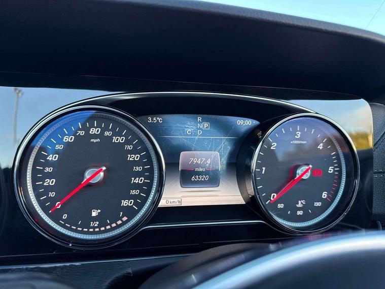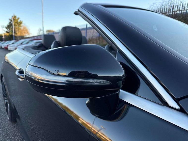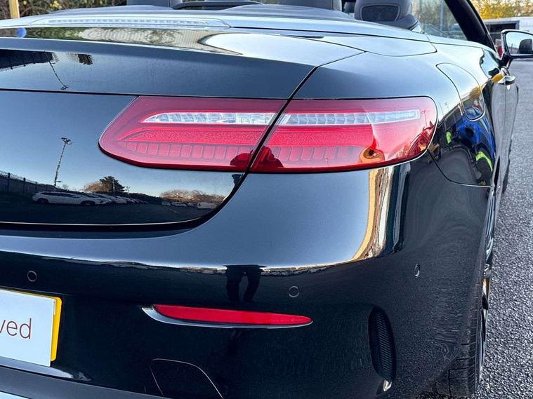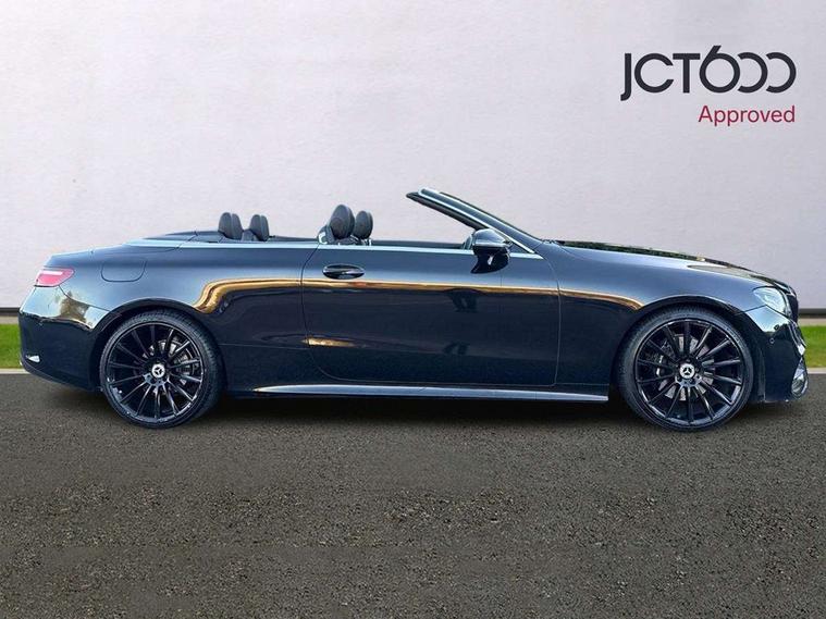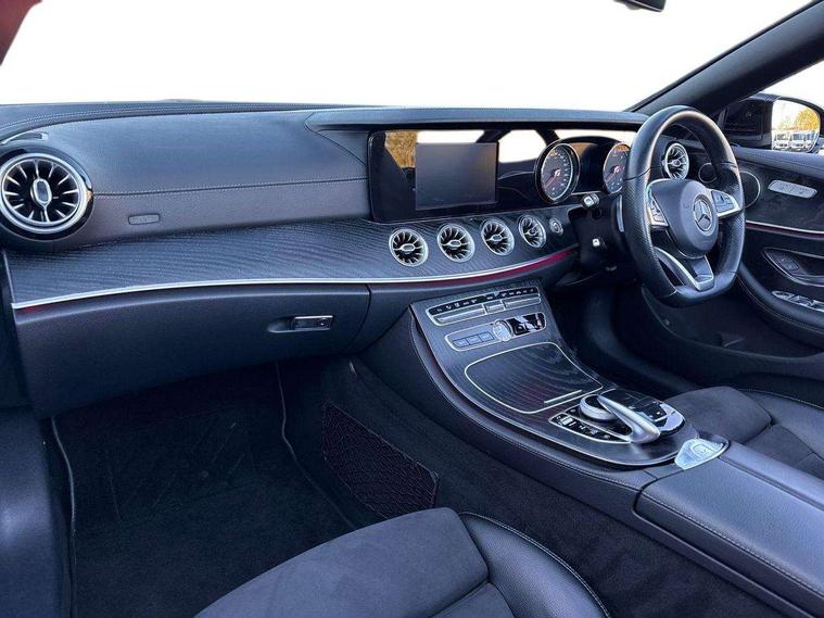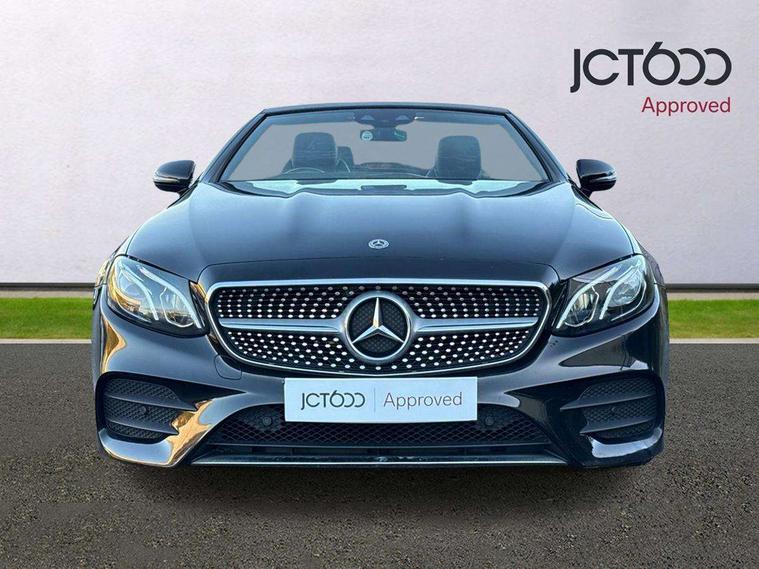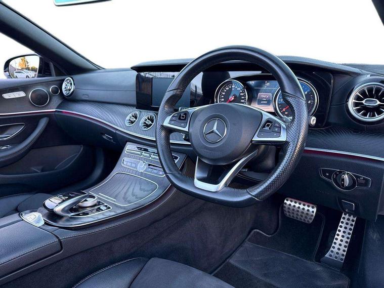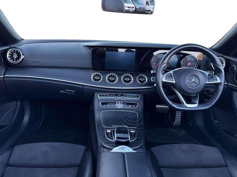 Active park assist with parktronic system, Analogue clock, Attention assist, Automatic boot separator, Bluetooth interface for hands free telephone, Collision prevention assist plus, Direct steering, DYNAMIC SELECT with a choice of driving modes (ECO, Comfort, Sport, Sport+ and Individual), On board computer, Outside temperature display, Remote boot release, Service indicator (ASSYST PLUS), Diesel particulate filter, DAB Digital radio, USB/aux-in in centre console, Adaptive brake lights, AMG bodystyling, AMG boot lid spoiler in body colour, AMG front, rear apron and side skirts, Automatic rain sensing wipers, Body colour door handles, Body coloured bumpers, Electric adjustable heated door mirrors, Electric front/rear windows with one touch/auto up/down, Electric soft-top with auto roll-over bar, Heated windscreen wash system, Illuminated door sill inserts, LED daytime running lights, LED Headlights, LED tail lights, Polished aluminium upper window surround, Polished aluminium waistline, Radiator grille with integral star and 2 louvres in matt iridium silver with chrome trim, Twin exhaust pipes, Wind deflector, 2 way rear head restraints, 3 spoke flat bottom AMG steering wheel in nappa leather, 4 way adjustable front head restraints, 50/50 split folding rear seat, Airscarf - neck level heating, Ambient lighting, AMG floormats, Artico man-made leather upper dash trim, Bag hook in luggage compartment, Black roof lining, Centre armrest and door handle illumination, Child seat recognition sensor, Chrome door pins, Cupholders in centre console, Easy entry seats, Front and rear door pockets, Front centre armrest with storage compartment, Front footwell lights, Front seat back map pockets, Front seatbelt electric feeders, Heated front seats, Height/reach adjust steering wheel, Illuminated air conditioned glovebox, Interior rear light/integral reading lights, Isofix rear child seat fastenings, Multi contour front sports seats, Multi function steering wheel, Partial electric front seats/backrest/height adjust, Rear centre armrest with 2 cupholders + storage, Sports pedals with stainless steel surfaces and rubber studs, Steering wheel gearshift paddles, Storage net in luggage compartment, Stowage compartment with 12V socket, Sunglasses holder, Sunvisors with illuminated vanity mirrors, Twin front cupholders, Interior lighting pack - E Class, Mirror pack - E Class, Seat comfort pack - E Class, ABS, Active bonnet, Active brake assist, Adaptive brake system, Adaptive driver and front passenger airbags, Crash sensor (auto door unlocking), Drivers knee airbag, Electronic parking brake, ESP with ASR, Front and rear window airbags, Front seatbelt pretensioners, Front side airbags, Head airbags, Seat occupancy sensor, Seatbelt warning, Tyre pressure monitoring system, Warning triangle and first aid kit, Alarm system/interior protection/immobiliser, Chrome surround electric key, Keyless Go access/ignition system, Remote central locking, High gloss black centre console, Run flat tyres,