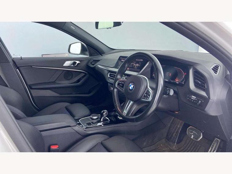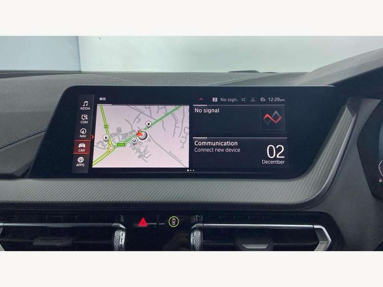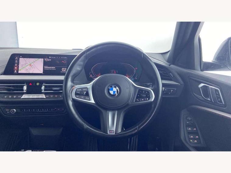 Active guard plus, Attentiveness assist, BMW ConnectedDrive online services, BMW Teleservices, Check Control warning system for monitoring of lights and door/luggage compartment open warning, Cruise control with brake assist, Eco pro mode, Front axle single joint with specific axle kinematics to minimise drive influences on steering + provide increased rigidity agile driving behaviour, Integrated owners handbook, Lane departure warning system, Oil sensor for level and grade, On board computer, Optimum shift indicator, Personal Profile, Pull away assistant, Rigidly mounted rear subframe - Multi link construction with separate spring / damper configuration and excellent driving characteristics, Speed limit Info including no-overtaking indicator, Speed limiter, Aluminium lightweight construction, Anti roll bar front and rear, Balancer shaft, Double VANOS twin scroll turbocharging system, Drive Performance Control, Electronic differential lock, High precision injection, M sport suspension, Petrol Particulate Filter, Twin tube gas filled shock absorbers with degressive characteristic curve, VALVETRONIC engine management, DAB Digital radio, Auto dimming rear view mirror, Automatic headlight beam throw control, Automatic windscreen wipers and automatic headlight, Body colour door handles, Body colour mirror caps, Body colour roof trims, Chrome 'M' logo side designation, Chrome exhaust twin tailpipes round 90mm in left, Chrome kidney grille frame with Satin Aluminium struts, Direction indicator side lights in exterior mirrors, Fading support, Folding side mirrors with auto dimming/folding wing mirrors with auto dimming, Follow me home headlights, Front and rear bumper system with replaceable deformation elements, Front and rear electric windows with open and close fingertip control, anti trap facility and comfort closing, Front door sill finishers in black plastic with M designation in metallic look, Green tinted heat protection glazing, Heated, electrically adjustable exterior mirror aspheric on driver side, convex on passenger side, High gloss shadowline window frame, Recess cover mirror frames and B/C pillar embelisher trim, High level third brake light, Integrated front windscreen with washer jets, LED daytime running lights, LED eyebrow turn indicators, LED front fog lights, LED Headlights, Lightweight engineering, Matt black air guide grilles, Matt black wheel arch trim, Model designation on electric bootlid, Nearside reverse light in rear light cluster, Preparation for high beam assistant, Rear fog lights, Rear side wing doors, Rear window wiper, Shark fin antenna, Trailer stabilisation logic, Visible VIN plate, Welcome lighting, 12V power socket in front centre console with blanking plug, 3 rear seat head restraints, 3 seat bench in 2nd row, 3 spoke sports leather steering wheel with black leather and stitching, pearl chrome decorative finish, specific M Badge, Anthracite headlining, Black boot net with lashing eyes, Cargo function on 2nd seat row, Child seat ISOFIX attachment for two outer rear seats and front passenger seat with anchorage points, Conditioned based service, Driver and front passenger seat heating, Folding rear clothes hook, Four grab handles integrated in roof lining, Front and rear door pockets with bottle holders, Front and rear side armrest integrated into door trim, Front armrest, Front sports seats, Glove compartment, Height adjustable front head restraints, Luggage compartment for bag hooks on left and right, foldable luggage compartment liner and four lashing eyelets, Manual adjust steering wheel, Multi-function controls for steering wheel, Single front passenger seat, Storage compartment in centre console, Sun visors with vanity mirrors and insert tab, Two front centre console cupholders, Two zone automatic air conditioning, Velour floor mats, Additional interior lighting pack - 1 Series, BMW live cockpit professional pack- 1 Series, Connected pack professional - 1 Series, Interior lights pack - 1 Series, M Sport exterior styling aerodynamics pack - 1 Series, 2 tone horn, 3 point seatbelts on all seats, front pyrotechnic belt tensioners, stopper and belt force limiters, rear coded belt buckles, Airbags - Front driver/passenger, front and rear curtain head protection, front side, manual deactivation of front passenger airbag, Anti lock braking system (ABS) with brake assist, BMW emergency call, Brake drying, Braking readiness, Child proof locking system in rear door, City braking function, Comfort modes, Cornering brake control, Crash sensor activating central locking release, hazard warning lights, fuel cut off, interior lighting + activation of safety battery terminal clamp, Driver and front passenger seat belt security check, Dynamic stability control + (DSC+), Dynamic Traction Control - DTC, Electrically operated hand brake including automatic hold function, Front and rear disc brakes, Seatbelt warning, Side impact protection, Tyre pressure monitoring system, Warning triangle and first aid kit, Central locking switch for all doors, fuel filler cap and luggage compartment, Deadlocking function system to all doors, Drive away locking system on all doors and luggage compartment with de-activated in iDrive settings, Locking wheel bolts, Remote control with integrated key with High-gloss Black inlay and M designation and 1 button for open/ close lock, window, open luggage compartment, Start/stop button illuminated in centre console with keyless engine start and auto start stop deactivation button, Thatcham Cat.1 alarm and immobiliser, Wheel slip limitation close to the actuator (ARB), Contrast stitching on instrument panel, Electrically powered 12V compressor, Reduced rolling resistance tyres,