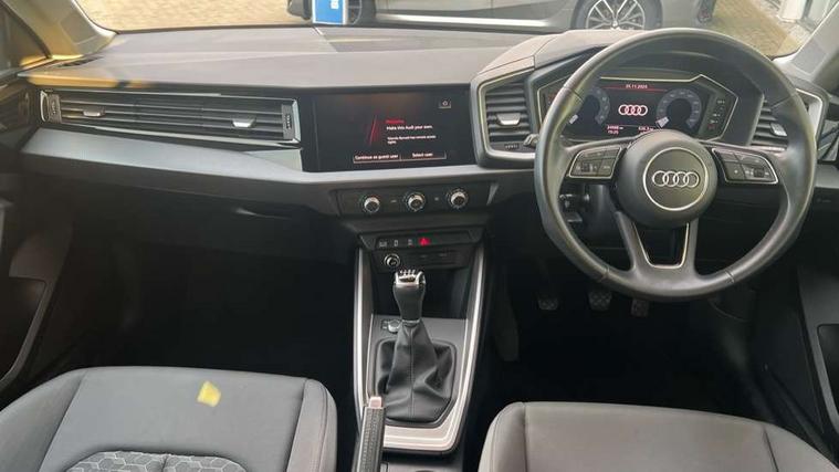 10.25" Digital instrument cluster display classis style instrument dials + speed, odometer, time, outside temperature, telephone menu + fuel level warning, Audi connect safety emergency and service including E-call, Audi drive select - power steering assistance + engine, Audi smartphone interface with connect compatible smartphone via USB directly MMI display + Nav, music, third party apps controlled via MMI controller, Automatic start/stop system, Bluetooth interface, Cruise control, Driver's information system, Electromechanical power steering, Emergency services call system, Lane departure warning system, Service interval indicator, Speed limiter, Voice control system, Washer fluid level indicator, Dynamic suspension, 1 x SDXC card reader, 2 x USB type C connection points, DAB Digital radio, MMI radio plus with 8.8" colour MMI display screen and MMI touch, Auto dimming rear view mirror, Body coloured bumpers, Body coloured door mirrors, Electric front and rear windows, Electrically adjustable, heated, folding door mirrors with integrated LED side indicator, Front side air inlets in grained matt black and C frame in titanium black, Heat insulating glass windscreen and side windows, Heated rear windscreen, High level LED brake light, LED headlights with LED rear lights + dynamic rear indicators + headlight adjustment and high beam, turning light + LED daytime running lights, Radiator grille and rear diffuser in matt titanium black, Radiator protective grille frame in matt aluminium silver, Rain and light sensors, Rear fog lights, Rear side wing doors, Rear wing door, Rear wiper, Side front spoiler lips in grained matt black, 12V socket in centre console with two cup holders, 3 rear seats with headrests, 3 seat bench in 2nd row, 40:60 Split folding rear seat or folded fully, Door sill trims with aluminium inlay, Driver and passenger seat with manual height adjust with forward and backwards adjustment, Front head restraints, Front passenger seat, Front/rear floor mats, Height and reach adjustable steering wheel, ISOFIX child seat mounting for front passenger and outer rear seats including top tether attachment point of outer rear seats, Leather gear knob with aluminium trim, Leatherette handbrake grip, Luggage compartment light with front and rear reading lights, Manually adjustable lumbar support in front seats, Novum cloth upholstery with front sport seats, Titanium grey cloth headlining, Luggage compartment pack - A1, 3x3 point rear seatbelts, Audi pre-sense front with pedestrain and cyclist recognition, Brake assist function, Driver and front passenger airbag with front side and head airbags, Electronic Stability Control including ABS, EBD, ASR and EDL, Front passenger airbag deactivation switch, Hill hold assist, Manual rear child locks, Seatbelt height adjustment for front seats, Seatbelt monitoring, Tyre pressure warning light, Warning triangle and first aid kit, Anti theft alarm, Anti theft wheel bolts and loose wheel warning, Immobiliser, Remote central locking with 2 foldaway keys, Aluminium trim for control switches, air vents and digital instrument cluster, Silver grey accent areas including air vents, door handle recesses and centre console in diamond paint finish, Slate grey inlays polygon structure in fine paint finish,