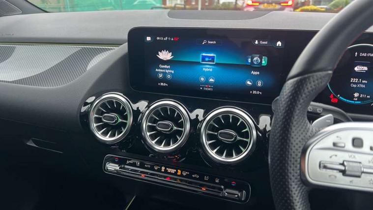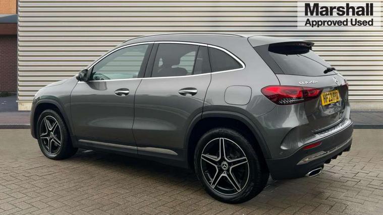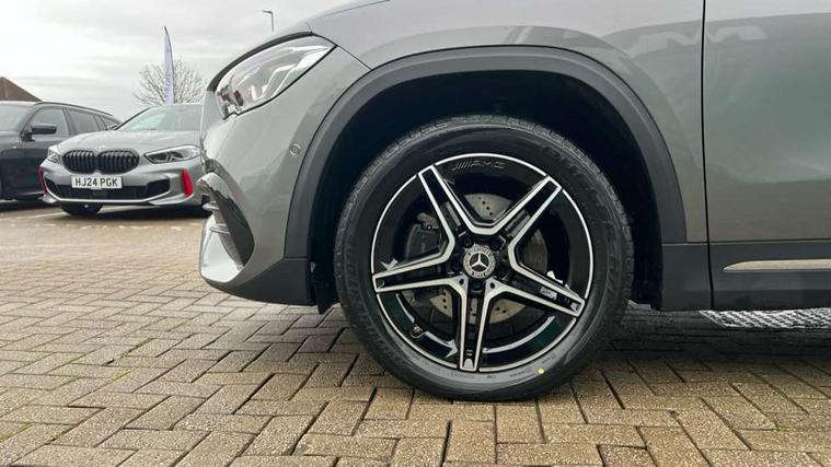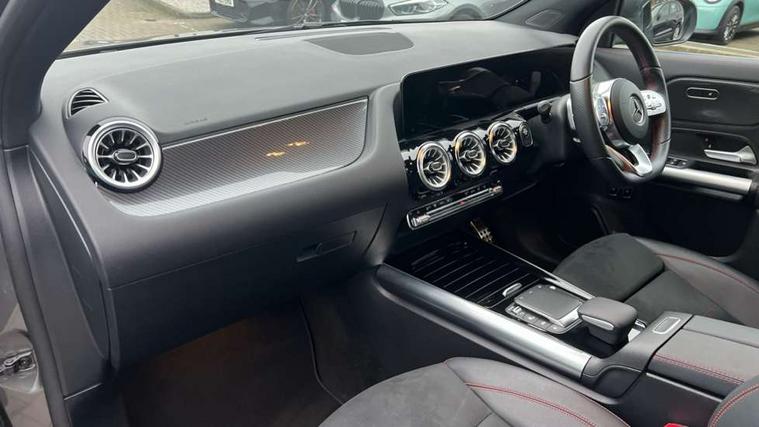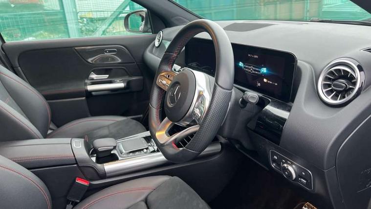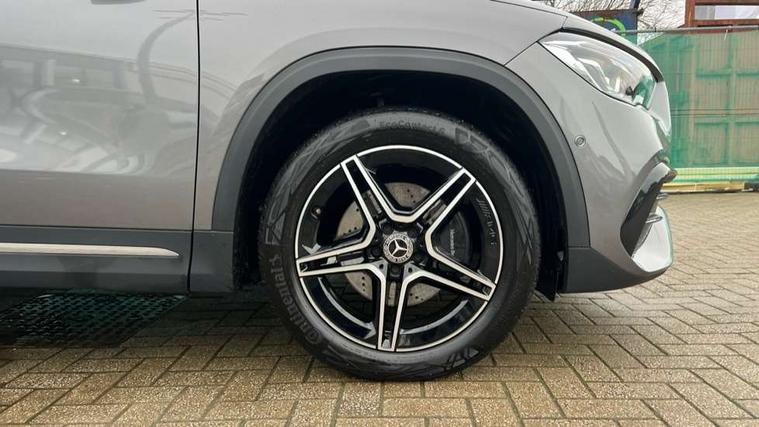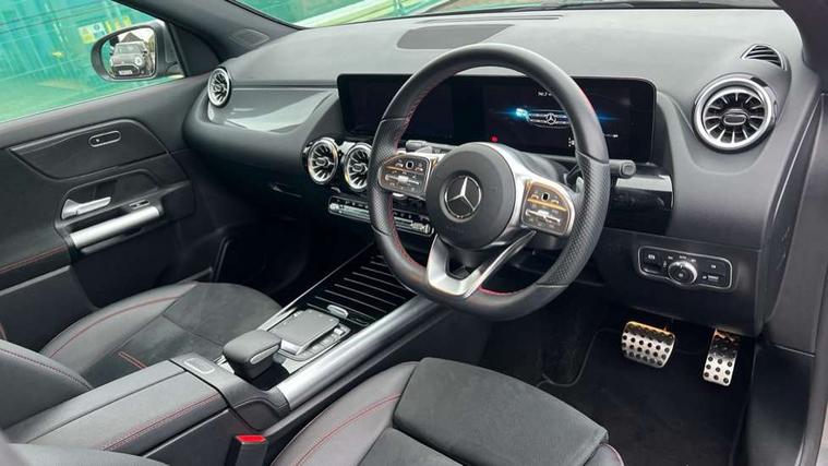 10.25 inch touchscreen central media display, 10.25" Digital instrument cluster display screen, Acoustic ambient protection, Active lane keeping assist, Attention assist, Cruise control + speed limiter, Direct steering, DYNAMIC SELECT with a choice of driving modes (ECO, Comfort, Sport and Individual), ECO start/stop function, Fluid level warning indicator for fuel, oil, coolant and washer fluid, Hard-disk navigation, Hey Mercedes Voice activation, Lamp failure indicator, Mercedes me connect including emergency call system, accident recovery, breakdown and maintenance management, Mercedes me remote services, Multi function trip computer, Outside temperature gauge, Owners manual and service booklet in English, Pre-installation of private car share, Radio aerial integrated into front and rear windshields, Service indicator (ASSYST), Smartphone integration with Apple CarPlay and Android auto, Speed limit assist, Status display for rear seat belts in instrument cluster, 4m charging cable for wall box/public charging stations(mode 3), Charging system - AC charging system rated at 7.4 kW, Comfort suspension, Rear axle multi-link, 2 USB ports (type C) in rear stowage compartment and one in front of center console, Bluetooth connectivity including audio streaming, DAB Digital radio, MBUX multimedia system, Media interface, Mercedes-Benz (225w) sound system with 10 speakers, Adaptive brake lights, Aerial for GPS, Aluminium roof rails, AMG front and rear apron, AMG specific/dual flow exhaust pipes in chrome (non-functional), Automatic headlamp activation, Beltline strips and weather strip in chrome, Black grained claddings with chrome parts, Body colour bumpers, Body colour door mirrors, Body coloured door handles with chrome insert for keyless entry, Car wash function, Dark privacy glass from B-pillar backwards, Electric front windows, Electric rear windows, Electrically adjustable and heated door mirrors with integrated LED indicators, EQ badging, Front bumper with underride guard in high gloss chrome, Heat insulating dark tinted glass, Heated glass rear windscreen + timer control, Heated windscreen wash system, Interior mirror with black reading lamps and frameless, LED high performance headlamps with integrated LED daytime running lights, LED tail lights in two piece design, LED third brake light, Matt titanium grey front and rear apron trim, Rain sensor windscreen wipers, Rear fog lights, Rear side wing doors, Rear wiper, Roof spoiler, Single lamella raditor grille with chrome dotted diamond grille and inlay, 12V power socket in centre console, 3 seat bench in 2nd row, 3 spoke multifunction sports steering wheel in nappa leather with flattened bottom and perforated grip area, 40:20:40 split folding rear seat backrests, Adjustable head restraints, Air conditioning - Two zone thermotronic luxury automatic climate control with display, Ambient lighting in front headrests, AMG floor mats in black with AMG lettering in front, Artico man-made leather/Microcut microfibre upholstery with red contrast stitching, Auto Mercedes-Benz child seat recognition sensor, Black roof lining, Brushed door pulls in silver chrome, Charging socket, Courtesy light in boot, Floor mats in velour, Front centre armrest with stowage, Galvanished gear shift paddles on steering wheel, Heated front seats, illuminated door sills with changeable cover, Illuminated glovebox, Interior lighting - 64 colour Ambient lighting, Leather trimmed gearknob, Luggage net on driver/front passenger seat backrest, Manually height and reach adjustable steering column, Multi-gesture touchpad control on center console, Pre-entry climate control, Single front passenger seat, Sports pedals in brushed stainless steel with black rubber studs, Sports seats, Stowage compartment in centre console, Stowage compartment with retractable cover, Sunvisors with illuminated vanity mirrors, Twin front cup holders, Two outer rear seat isofix and top tether child seat fixing points, AMG body styling pack - GLA, Comfort seat pack - GLA Class, Interior lighting with light and sight pack - GLA, Keyless go comfort package - GLA, Load compartment pack - GLA, Mirror pack - GLA Class, Parking pack - GLA, 3 rear 3 point seatbelts, ABS with Brake Assist, Active bonnet pedestrain safety measure which detects an impact and raises bonnet by 65mm, Active brake assist includes forward collision warning system with autonomous braking, Adaptive brake assist with hold function and hill start assist, Bonnet with power domes, Brake pad wear warning indicator, Childproof locks manually operated for rear doors and electrically operated for rear power windows, Crash responsive emergency lighting, Driver and passenger head and side airbags, Drivers knee airbag, Dual stage driver/passenger airbags, Electronic parking brake, ESP curve dynamic assist, ESP with ASR, Front and rear seatbelt reminder, Front brake callipers with Mercedes Benz logo lettering on front, Front brake discs internally ventilated and perforated, Front passenger seat occupancy sensor, Radar-based recuperation, Sports braking system, Tyre pressure monitoring system, Warning triangle and first aid kit, Window airbags, Alarm system with immobiliser and interior protection -Thatcham category 1, Keyless entry lock/unlock, Keyless Go starting function, Remote central locking and crash sensor with emergency opening function, Urban guard vehicle protection, Vehicle key with decorative surround in chrome, Carbon structure trim, Chrome air vent surrounds, 19" AMG 5 twin spoke light alloy wheels painted in high gloss black with high sheen finish, Summer tyres, Tirefit tyre sealant kit,