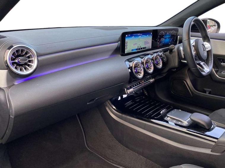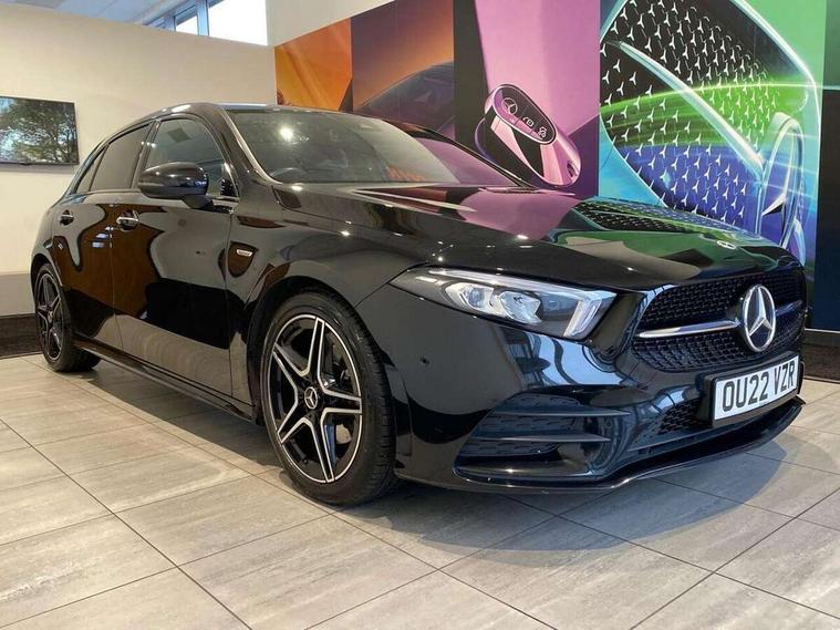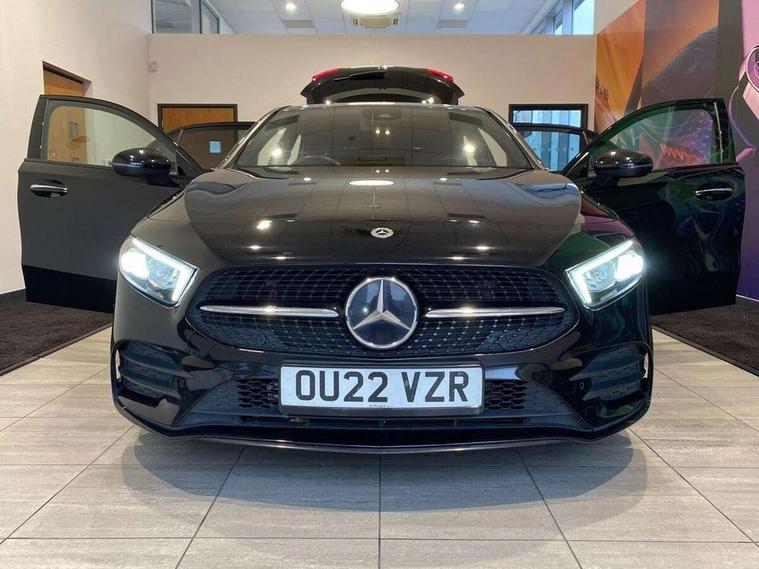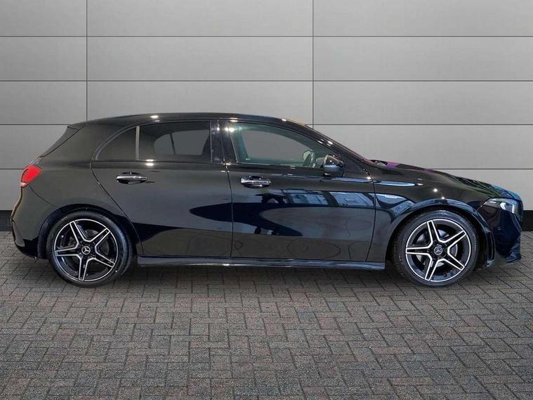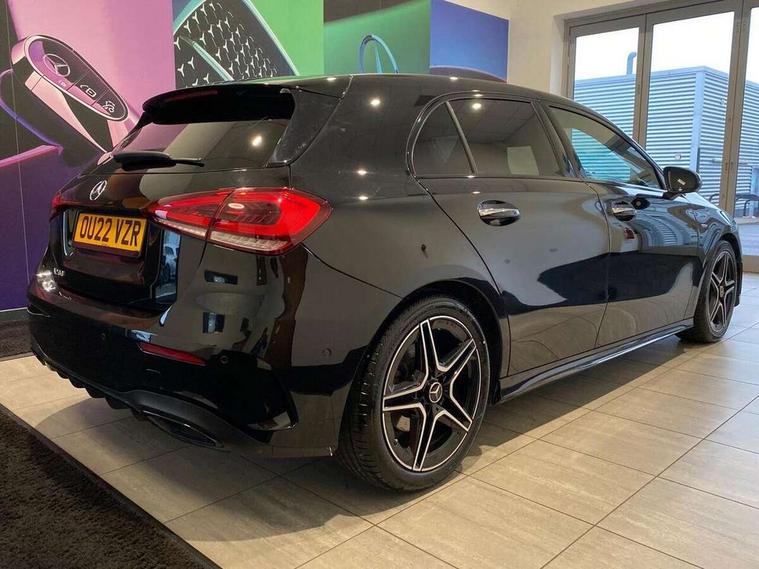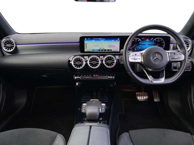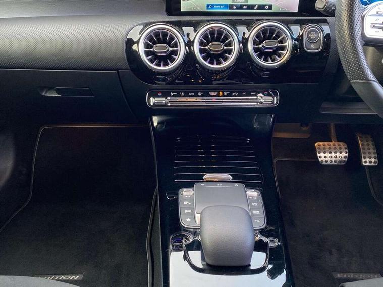 10.25" Digital instrument cluster display screen, 10.25" media display, 180 degree rear view camera with parking guidelines, Active parking assist with visual and audible warning of detected obstacles, Attention assist, Brake pad wear indicator warning light, Car wash mode, Cruise control + speed limiter, Direct steering, Dual bluetooth interfaces, DYNAMIC SELECT with a choice of driving modes (ECO, Comfort, Sport and Individual), ECO start/stop function, Fluid level warning indicator for fuel, oil, coolant and washer fluid, Hard-disk navigation, Hey Mercedes Voice activation, Lamp failure indicator, Lane keeping system, Mercedes me connect including emergency call system, accident recovery, breakdown and maintenance management, Mercedes me remote services, Outside temperature gauge, Owners manual in English, Pre-installation for private car sharing, Preinstallation for Mercedes Benz link, Service indicator (ASSYST), Smartphone integration with Apple CarPlay and Android auto, Speed sensitive power steering, Trip computer, Ultrasonic sensors positioned in the front and rear bumpers, Lowered comfort suspension, Rear axle torsion beam, 10 speakers, 2 USB ports (type C) in rear stowage compartment and one in front of center console, DAB Digital radio, MBUX multimedia system with DAB digital radio and touchpad including satellite navigation, Mercedes-Benz sound system - 100W, 4 Electric Front and Rear windows, Adaptive brake lights, AMG bodystyling - Front apron with splitter in chrome, rear apron with chrome trim and chrome visible trim elements in tailpipe, Automatic headlights, Black weather strip, Body colour bumpers, Body colour door handles, Body colour side skirt, Body coloured door mirrors, Electric adjustable and heated door mirrors with integrated LED side indicators, Exclusive diamond radiator grille, Exhaust system - Twin visible tailpipes in polished stainless steel, Headlamp assist automatic headlamp activation, Heated glass rear windscreen + timer control, High gloss black beltline, LED High level third brake light, LED high performance headlamps with integrated LED daytime running lights, LED tail lamp, Privacy glass, Radio aerial, Rain sensing windscreen wipers with two sensitivity settings, Rear fog lights, Rear side wing doors, Rear wiper, Window line trim strip in high gloss black, 3 seat bench in 2nd row, 3 Spoke flat bottom leather multi function steering wheel with perforated leather in grip area, 40:20:40 split folding rear seats, Artico man-made leather/Microfibre Dinamica upholstery with contrast stitching in light grey, Auto Mercedes-Benz child seat recognition sensor, Black air vents with surround in silver chrome, Black roof lining, Brushed stainless steel sports pedals with rubber studs, Controller on centre console with chrome surround, Floor mats with black top stitching and embroidered edition logo and piping in light grey, Front centre armrest with storage compartment, Front seat backs luggage nets, Front seat cushion length adjustment, Galvanished gear shift paddles on steering wheel, Heated front seats, Height/reach adjustable steering column, Illuminated front door sills with changeable cover, Interior lighting - 64 colour Ambient lighting, Interior mirror with reading lamps in black and frameless, Manual height adjustable front seats, Rear armrest with 2 cupholders, Rear head restraints, Seat occupancy sensor for front passenger seat, Single front passenger seat, Sports seats with integrated headrests, Stowage compartment in centre console with retractable cover, Sunvisors with illuminated vanity mirrors, Touchpad on center console, Twin front cupholders, Two zone thermotronic luxury automatic climate control, Light and sight pack - A Class, Mirror package - A Class, Night pack - A Class Saloon/Hatchback, Seat comfort pack - A Class, 3 rear 3 point seatbelts, ABS with Brake Assist, Active bonnet, Active brake assist includes forward collision warning system with autonomous braking, Adaptive brake assist with hold function and hill start assist, Black seatbelts, Childproof locks manually operated for rear doors and electrically operated for rear power windows, Crash responsive emergency lighting, Driver and passenger head and side airbags, Drivers knee airbag, Dual stage driver/passenger airbags, Electronic parking brake, ESP curve dynamic assist, ESP with ASR, Front and rear seatbelt reminder, Front brake callipers with Mercedes Benz lettering, ISOFIX and top tether child seat fixing points in two outer rear seats, Tyre pressure monitoring system, Warning triangle and first aid kit, Window airbags, Alarm system/interior protection/immobiliser, Keyless entry lock/unlock, Keyless Go, Remote central locking and crash sensor with emergency opening function, Urban guard vehicle protection system with immobiliser and interior protection, Matrix look light longitudinal grain aluminium trim element, 18" AMG 5 twin spoke light alloy wheels aerodynamically optimised painted in black with highsheen finish, Summer tyres, Tirefit sealant kit,