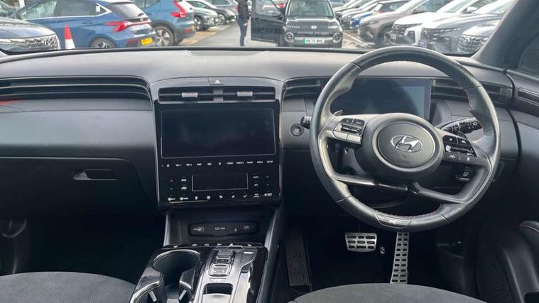 10.25" super vision instrument cluster, 10.25" touchscreen satellite navigation with mapcare and live services, Apple car play/Android Auto, Blind spot collision avoidance assist, Blind spot Collision Warning (BCW), Bluetooth system, Cruise control - smart adaptive speed control with stop and go function, Digital clock, Drive mode selector, Driver attention warning, E-call, Emergency stop signalling system, Forward Collision Avoidance Assist (FCA) - Car, Pedestrian and Cycle, Forward Collision Avoidance Assist Junction Turning (FCAJX), Front and rear parking sensors, Intelligent speed limit assist, Lane follow assist, Lane keep assist, PAS, Rear cross traffic collision avoidance (RCCA), Rear cross traffic collision warning (RCCW), Rev counter, Reversing camera, Roll over sensor, Smart power tailgate, Tailgate open warning light, Trip computer, Trip odometer, Voice recognition, Water temperature gauge, Windscreen washer fluid sensor and warning indicator, Wireless phone charging pad, DAB Digital radio, Krell premium audio system with 8 speakers and subwoofer, Steering wheel mounted audio/phone controls, USB connections in front and rear, Adjustable intermittent front windscreen wipers with aero wiper blade, Auto dimming rear view mirror, Automatic defog system, Automatic headlights with dusk sensor, Automatic windscreen wipers with rain sensor, Black headlamp bezels, Body colour bumpers, Body colour door mirrors with integrated indicators, Body colour exterior door handles, Body coloured wheel arches, Dark chrome effect radiator grille, Electric tilt/slide panoramic sunroof, Electrically adjustable, heated and power folding door mirrors, Follow me home headlights, Front and rear electric windows with anti-trap mechanism and one touch control, Front fog lights, Gloss black door frame moulding, High beam assist, High level third brake light, LED daytime running lights, LED rear lights, MFR - LED headlight with static bending light, N Line body coloured side mouldings, N Line design front grille, N Line Exclusive front and rear bumpers, N Line rear spoiler with fins, Positioning Lights - LED, Privacy glass - Rear windows and tailgate, Rear side window blinds, Rear side wing doors, Rear wash/wipe with intermittent wipe setting, Roof rails, Silver front and rear skid plate, Sports twin tip exhaust and diffuser, Tinted glass with windscreen shade band, Trailer stability assist, 12V power outlets in front console and luggage compartment, 3 seat bench in 2nd row, 40/20/40 split folding rear seat, Adjustable head restraints (Up and down), Alloy pedals, Ambient lighting, Black headliner, Cupholders in rear armrest, Door courtesy lights, Driver and passenger sunvisors with illuminated LED vanity mirrors, Driver's seat electric lumbar support, Driver's seat manual height adjust, Front and rear door pockets, Front armrest with storage box, Front door pocket bottle holders, Front passenger seat lumbar adjustment, Heated front seats, Heated steering wheel, Height/reach adjustable steering column, Illuminated/air conditioned glove compartment, ISOFIX child seat anchorage points attached on outer rear seats, Leather wrapped steering wheel, Leather/suede upholstery, LED personal and overhead console lamp, Luggage area underfloor compartment, Luggage compartment lighting, Luggage cover, Luggage hooks, Manual height adjustable front passenger seat, Map and reading lights, N Line logo on steering wheel, Retractable load cover, Single front passenger seat, Sunglasses holder, Three zone climate control, 3x3 point rear seatbelts, Active bonnet, Airbag - Front, front side, curtain and centre front airbags, Anti-lock brake system (ABS), Brake assist function, Childproof rear door locks, Downhill brake control, Electric parking brake with auto hold function, Electronic stability control, Front and rear seatbelt reminder, Front passenger airbag deactivation switch, Front seatbelt pretensioners, Hill start assist control (HAC), Multi-Collision braking, Outer rear seatbelt height adjustment, Seatbelt height adjustment for front seats, Traction control, Tyre pressure monitoring system with individual tyre pressure display - TPMS, Alarm, Deadlocks, Immobiliser, Locking wheel nuts, Remote control central locking, Smart key with keyless entry and engine start/stop button, Speed sensitive auto door locking, 19" Alloy wheels, Tyre repair kit,