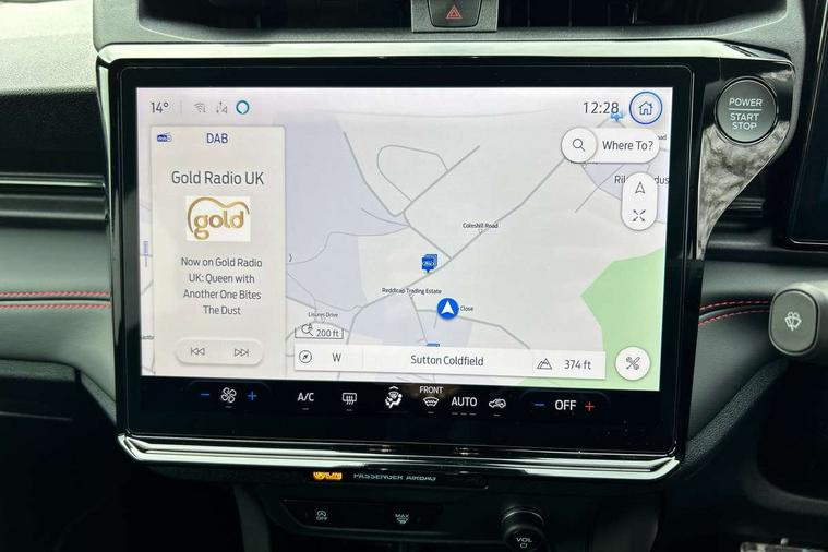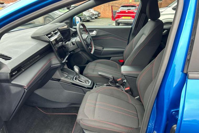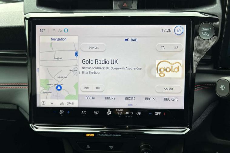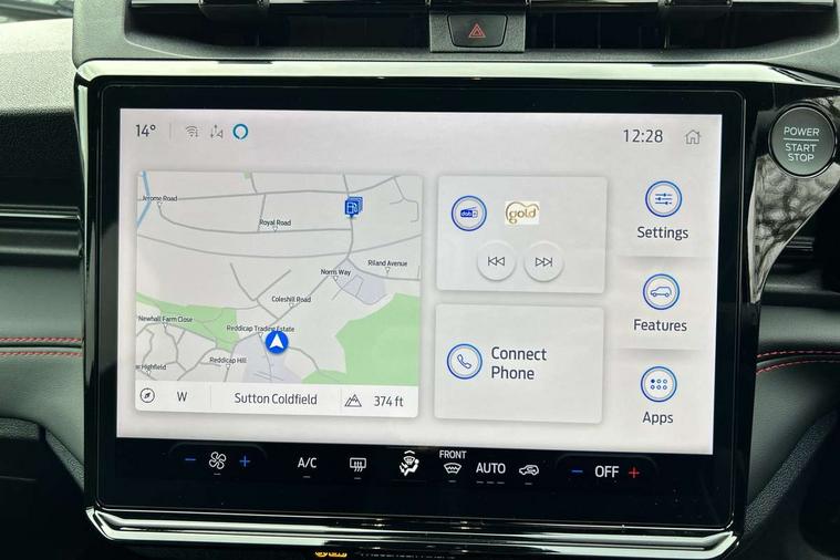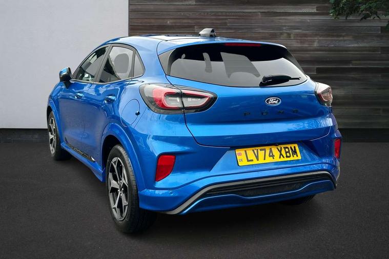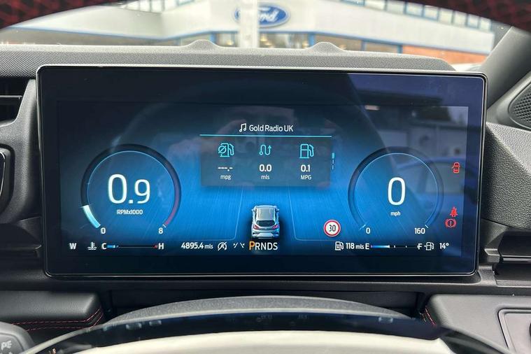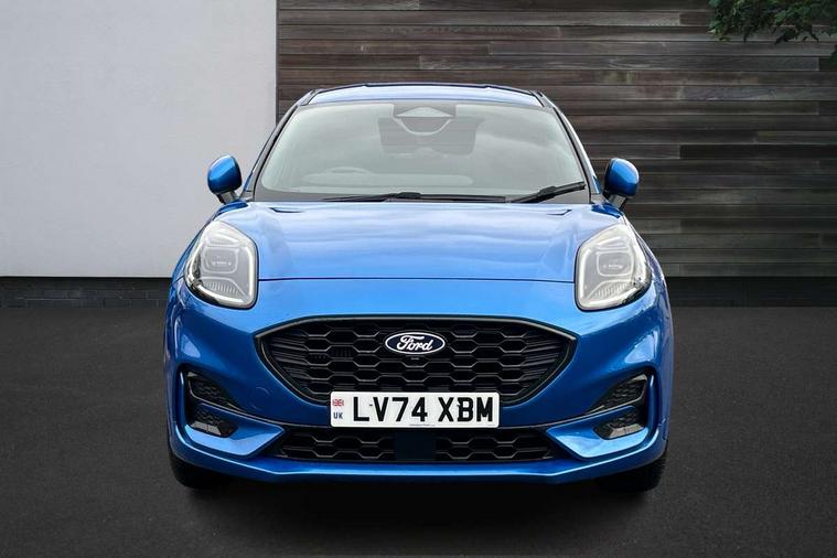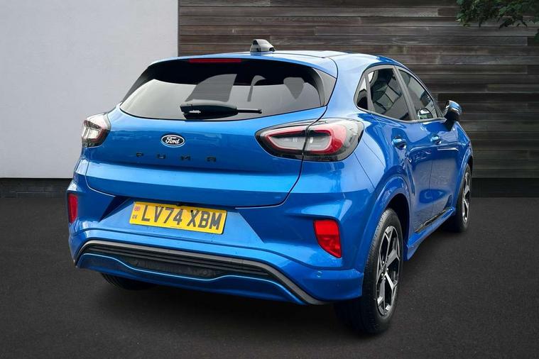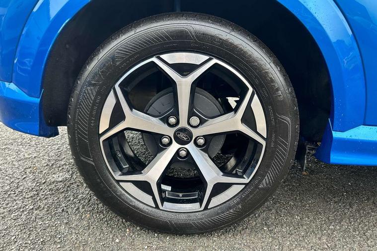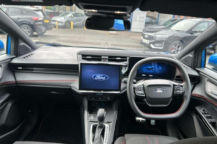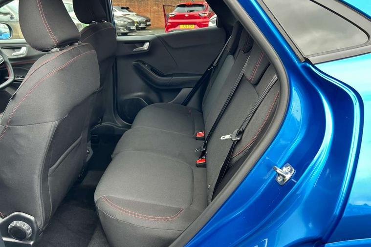 Driver impairment monitor, Emergency call service, Ford easy fuel, Full digital 12.8" instrument cluster, Lane keeping aid with lane departure warning, Power assist steering, Selectable drive modes(Normal, Eco, Sport, Slippery and Trail), Speed sign recognition, Sport suspension, 12" landscape touchscreen display with wireless apple car play and android auto 6 speaker audio system, Ford pass connect and emergency assistance, Ford SYNC4 with connected navigation, Automatic headlights with rain sensing wipers and auto high beam, Front fog lamps, LED daytime running lights, LED rear lamps, LED third brake light, Power foldable heated door mirrors with puddle lamps and puma logo protection, Quickclear heated windscreen, Rear privacy glass, Rear side wing doors, Rear wiper, ST-Line body styling kit with unique grille, 3 seat bench in 2nd row, Centre console with armrest and stowage, Electronic automatic temperature control (EATC), Ford megabox extended bootspace, Front and rear head restraints, Front floor mats, Manual 4 way driver seat adjust with lumbar adjustment, Single front passenger seat, ST- Line cloth trim with red stitching, 3 rear seatbelts, Child safety lock, Electronic stability control (ESC) and hill start assist, Pre-collision assist with autonomous emergency braking, pedestrian/cyclist detection & post-collision braking, Tyre pressure monitoring system (TPMS), Thatcham alarm,