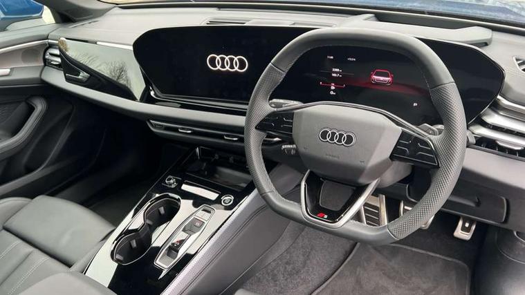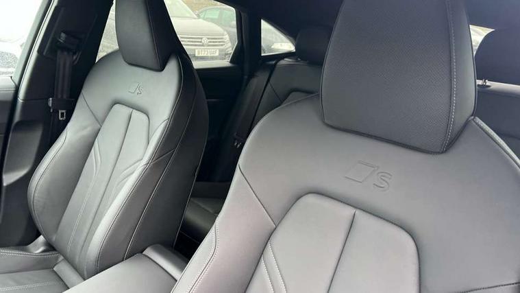 Adaptive cruise control, Advanced driver attention and fatigue montior, Audi application store, Audi assistant, Audi connect emergency call and service, Audi drive select, Audi smartphone interface, Audi virtual cockpit plus with 11.9" OLED colour display, Automatic start/stop system with coasting functionality, Camera based traffic sign recognition, Intersection assist, Lane departure warning, MMI navigation plus with high resolution 14.5" OLED touchscreen colour display, Park assist plus, Parking system plus with 360 display, Progressive steering with servotronic, Rear view camera, Swerve assist and turn assist, Traffic sign based speed limiter, Sports suspension lowered by 20mm, 2 USB-C ports in both the front and rear, Audi sound system impressive sound with 10 loudspeakers including centre speaker and subwoofer, 6-channel amplifier with a total output of 180 watts, DAB digital radio reception, Smartphone compartment with wireless charging, Aluminium window trims, Auto dimming rear view mirror, Body colour door mirrors, Door mirrors - electrically adjustable, heated, folding and auto dimming on both sides, Front and rear electric windows, Front door sill trims with aluminium inlays, illuminated with 'S' logo, High beam assist, LED headlights Plus incl. digital daytime running lights, turning light, all-weather light, motorway light, manouevring light and intersection light, LED rear lights pro incl. dynamic rear indicators and illuminated light strip with animated coming and leaving home function, LED third brake light, Privacy glass, Rear and side windows with heat insulating glass, Rear boot, Rear side wing doors, S Line badges on the front wings, S line bumpers, radiator grille and diffuser in phantom black and diffuser insert in matt anthracite, White rhombus logo projection light in exterior mirrors, Windscreen with acoustic glazing, 3 rear headrests, 3 seat rear bench, 3 spoke leather steering wheel with multi-function buttons with touch control, flattened on top and bottom, with S badging and contrast stitching, 3-zone automatic climate control, 40:20:40 split folding rear seat bench with centre armrest and cup holders, Comfort front centre armrest, Front and rear floor mats, Front seats with manual adjustment for position and 4-way electric lumbar support, Front sport seats with integrated headrest and S embossed logo, Headlining in black cloth, Heated front seats, i-Size child seat mounting on the front passenger side and outer rear seats, i-Size and top tether on the outer rear seats, Luggage compartment lid, electrically opening and closing, Manual steering column height and depth adjustment, Single front passenger seat, Stainless steel pedals and footrest, Steering wheel grips in perforated leather and shift paddles, Ambient lighting package plus - A5, 3x3 point rear seat belts, Driver airbag, Electric child safety locks, First aid kit with warning triangle and vests, Front emergency brake assist, Front passenger airbag, Front passenger airbag deactivation, Front side airbags with head airbag system and front interaction airbag, Hill hold assist, Seat belt monitoring with rear seat occupant reminder, Tyre pressure loss indicator, Anti theft alarm, Anti-theft wheel bolts, Keyless Go, Accent surfaces and control buttons in gloss black, Black dashboard with contrast stitching, Inlays in matt brushed aluminium with linear embossing, anthracite, Softwrap in leatherette with contrast stitching, Upper and lower interior elements in leatherette, Tyre repair kit,