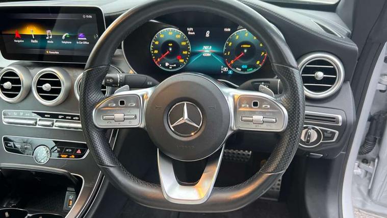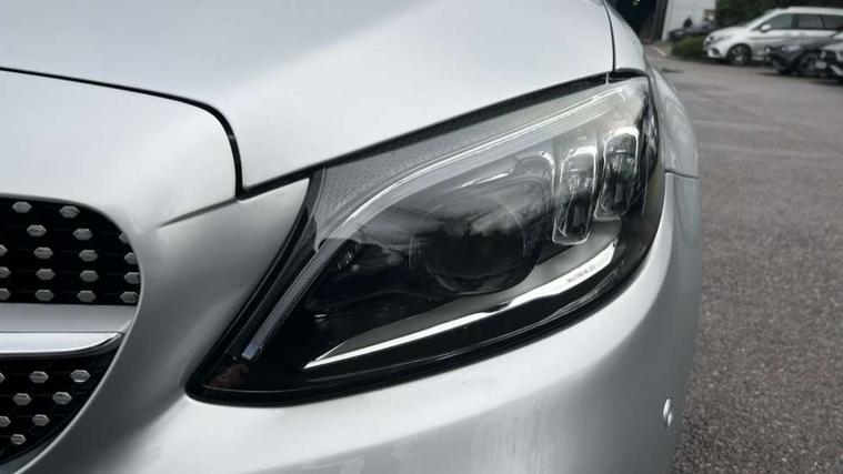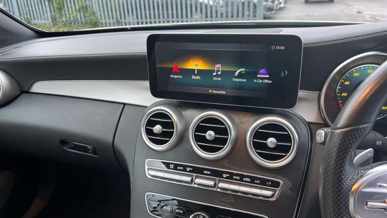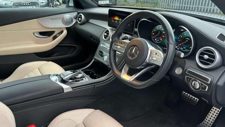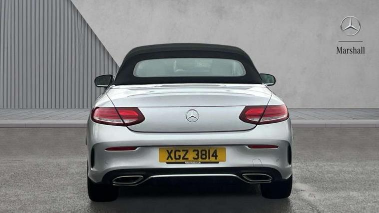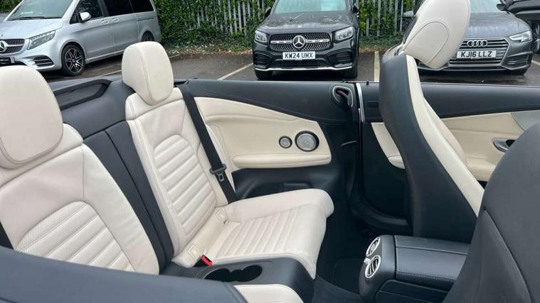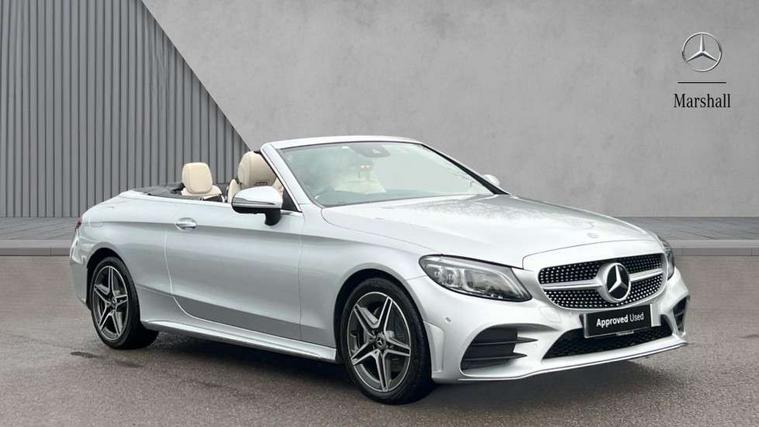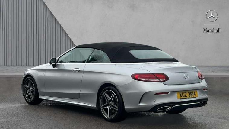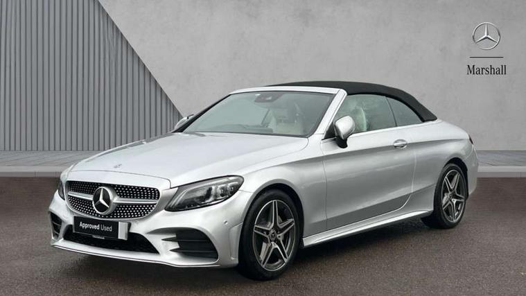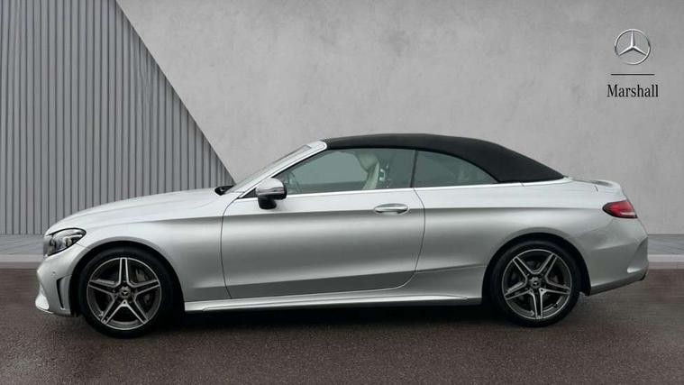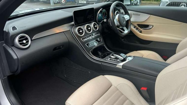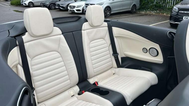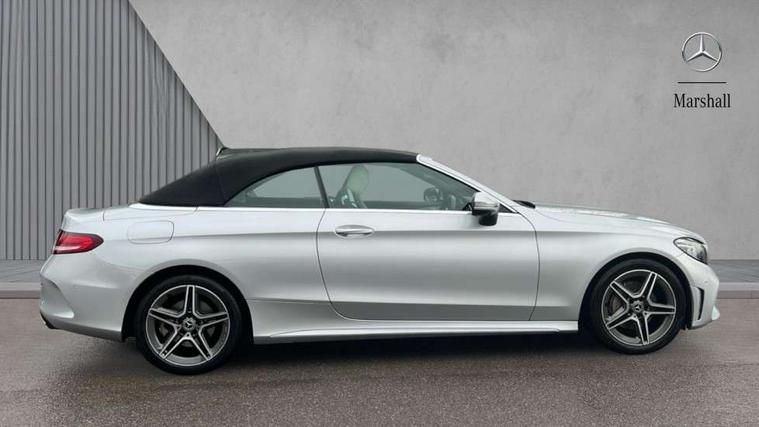 Seat comfort pack - C Class, Stowage space pack - C Class, Alarm system/interior protection/immobiliser, Automatic door locking, Chrome surround electric key, Keyless entry and keyless start, Remote central locking, Tow away protection, 2 USB ports, Burmester surround sound system, DAB digital radio module, Mercedes Audio 20 radio/single CD, SD card slot, 2 rear seatbelts, 3 point automatic seatbelts, ABS, Active bonnet, Adaptive brake system, Black seat belts, Brake calipers with Mercedes-Benz lettering + perforated brake discs, Crash sensor, Drivers knee airbag, Drivers pelvis airbag, Dual stage driver/passenger airbags, Electronic parking brake, Electronic stability control, Front and rear window airbags, Front seatbelt pretensioners, Front side airbags, Hill hold control, Hill start assist, Tyre pressure monitoring system, Warning triangle and first aid kit, Acoustic soft-top with enhanced climate and noise comfort, Adaptive brake lights, AMG front, rear apron and side skirts, Auto dimming driver's door mirror, Auto dimming rear view mirror, Body coloured bumpers, Body coloured door mirrors, Chrome grille surround, Chrome pins diamond radiator grille with integrated stars, Door sill plates with "Mercedes-Benz" lettering, Electric adjustable/heated/folding door mirrors, Electric windows one touch open/close, Green tinted glass, LED daytime running lights, LED Indicators, LED tail lights, LED third brake light, Multi beam LED headlights, Radio aerial in side window, Rain sensor windscreen wipers, Side windows surround in polished aluminium, Twin exhaust tailpipes x2, Wind deflector, 2 cupholders in front centre console, 2 rear head restraints, 3 spoke flat bottom multi-function leather AMG steering wheel, 40:20:40 split folding rear seats, Airscarf - neck level heating, Ambient lighting, AMG floormats, Artico man-made leather upper dashboard and beltlines with contrast stitching, Auto dual-zone climate control system, Auto Mercedes-Benz child seat recognition sensor, Door courtesy lamps, Electrically adjustable front seats, Front centre armrest with storage compartment, Front footwell illumination, Heated front seats, Height adjustable front seats, Illuminated front/rear door handle recesses, Illuminated glovebox, Isofix rear child seat fastenings, LED reading lights, LED rear reading lights, Sports pedals with stainless steel surfaces and rubber studs, Sports seats with integrated headrests, Steering wheel audio controls, Steering wheel gearshift paddles, Sunvisors with illuminated vanity mirrors, 12.3" Active TFT crystal driver's instrument display, Active park assist with parktronic system, Attention assist, Automatic boot separator, Bluetooth interface for hands free telephone, Collision prevention assist plus, Comand Online HDD Nav with media interface, radio/CD/DVD/MP3, 10.25 screen, linguatronic voice control, DYNAMIC SELECT with a choice of driving modes (ECO, Comfort, Sport, Sport+ and Individual), Mercedes connect me with remote online, Multi function trip computer, Outside temperature gauge, Remote boot release, Service indicator (ASSYST), Smartphone integration with Apple CarPlay and Android auto, Speed sensitive steering, Stop/start system, Surround camera system, Wireless charging, Petrol Particulate Filter, Sport exhaust system,