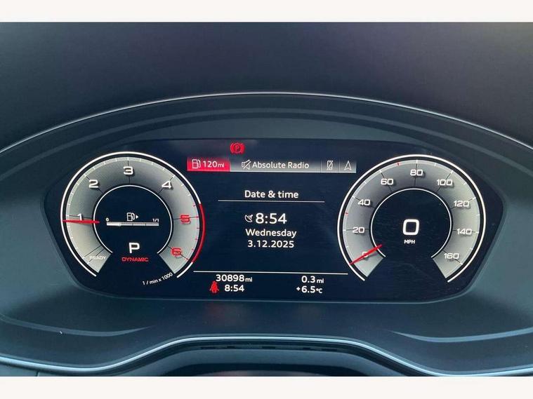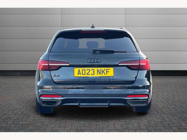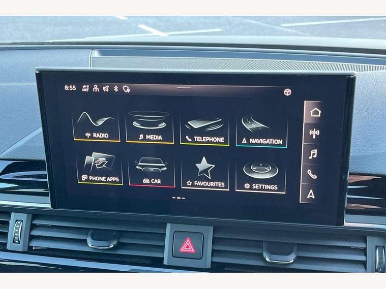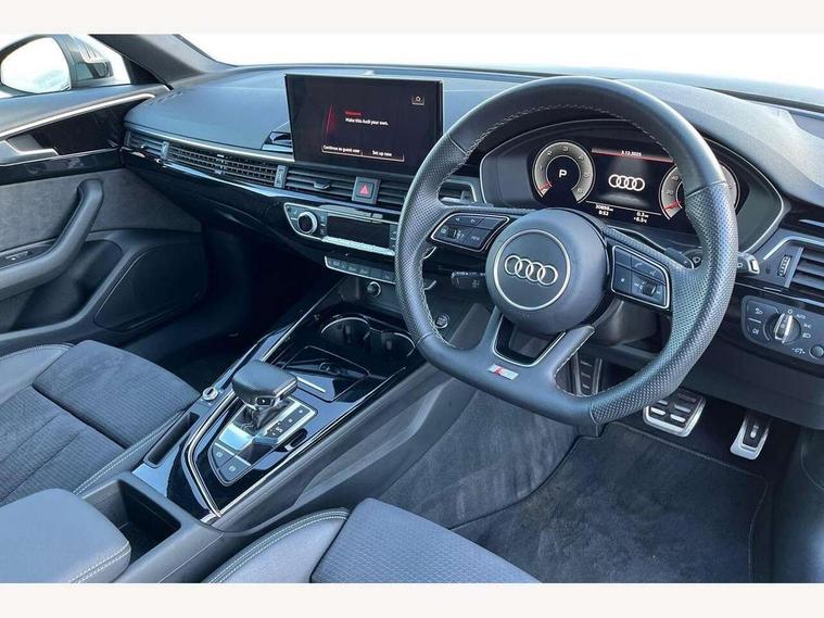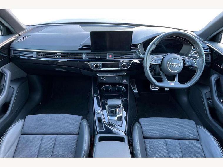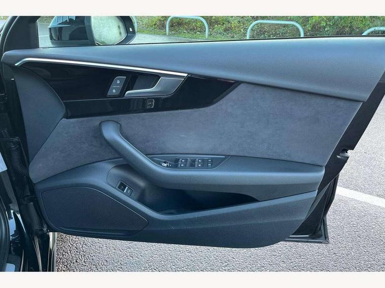 Audi connect safety and service (e-call), Audi connect with Amazon Alexa Integration, Audi drive select, Audi smartphone interface, Audi virtual cockpit, Automatic start-stop system with coasting functionality and efficiency programme, Bluetooth interface, Electromechanical power steering, Email, calendar and text messages displayed via MMI, MMI Navigation plus with MMI touch includes 10.1" high resolution colour MMI display, 3D map, Power operated tailgate, Voice control system, Sports suspension lowered by 23mm, 2 USB charging ports, 8 passive loudspeakers, DAB digital radio reception, Audi beam uses LEDs to project the audi logo onto the ground as you exit your A4, Auto dimming rear view mirror, Black Audi rings and black badging (model name in black badging, no engine badging), Body colour door handles, Body colour front spoiler lip, Body colour side sill trim, Electrically folding auto dimming/adjustable/heated door mirrors with LED side indicators and kerb view function for passenger side, Exhaust tailpipes in high dark chrome, Front and rear bumpers with side skirts, Grained matt black side air inlets with matt aluminium silver inlay, High beam assistant, High gloss black B pillar trims and triangular rear door trim, LED headlights with LED rear lights + dynamic rear indicators + headlight adjustment and high beam, turning light + LED daytime running lights, LED third brake light, Privacy glass, Rain and light sensors, Rear diffuser in matt black with trim strip in matt aluminium silver, Rear side wing doors, Rear wiper, RS4 rear spoiler in body colour, S Line badges on the front wings, S Line roof edge spoiler, Variable intermittent front wash/wipe, Windscreen with acoustic glazing, 4 way electric lumbar support for driver and front passenger, 40/20/40 split folding 3 rear seat bench in 3 parts with rear centre armrest, Black cloth headlining, Black perforated leather gearknob, Contrast stitching on seats, steering wheel and gear lever gaiter, Deluxe 3 zone electronic climate control, Door sill trims with aluminium inlay, Electric load area cover, Front and rear head restraints, Front centre armrest, Heated front seats, Illuminated door sill trims with S logo, ISOFIX child seat mounting and top tether, Manual seat adjustment, Single front passenger seat, Stainless steel pedals and foot rest, Black styling pack - A4 Avant, LED Interior light pack - A4/S4, 3 rear seatbelts, 6 airbags - Driver, front passenger, curtain and side windows, Electronic Stabilisation Control (ESC) including ABS, ASR and EDL, Hill hold assist, Multi collision brake assist, Pop-up bonnet for pedestrian protection, Pre sense city, Rear door child safety locks, Seatbelt monitoring, Warning triangle and first aid kit, Anti theft alarm, Anti theft wheel bolts, Central locking, Keyless Go, Piano black finish inlay, 19" 5 arm flag design Audi sport diamond cut alloy wheels in gloss anthracite black, Tool kit, Tyre repair kit,