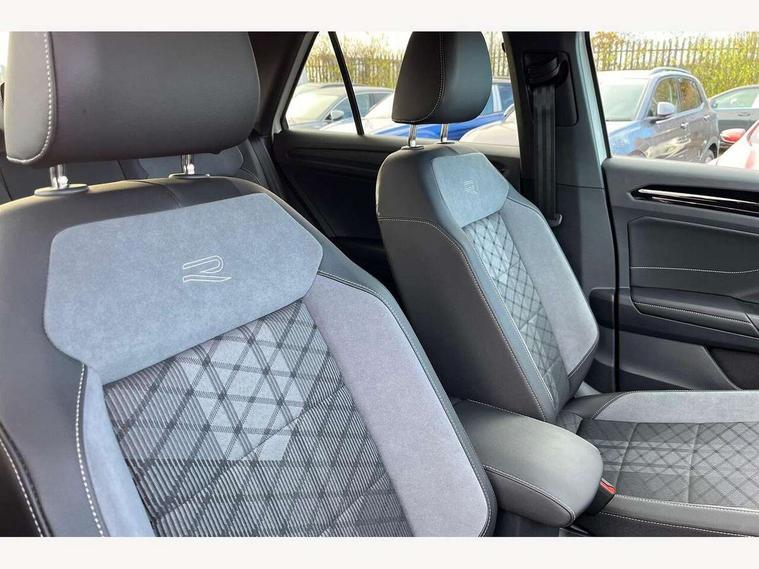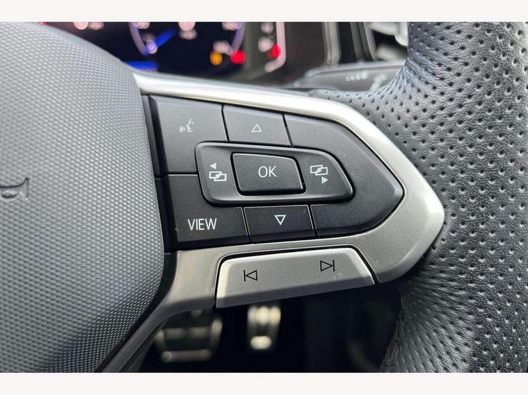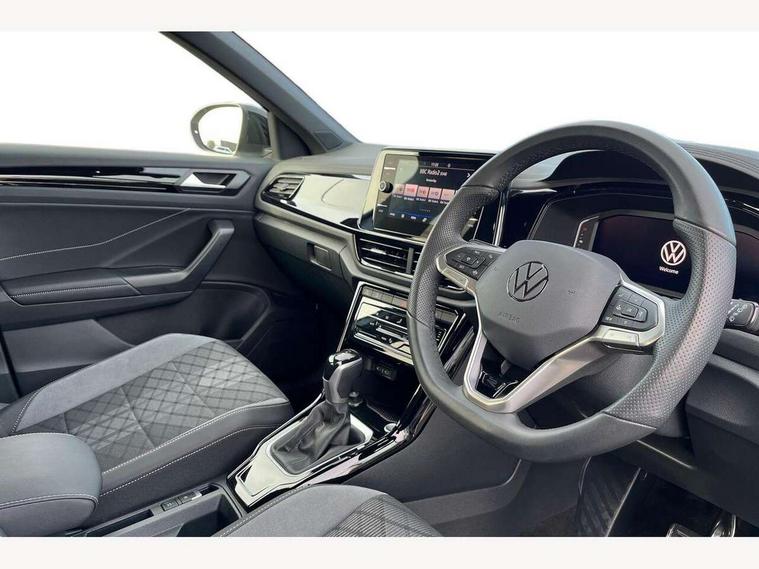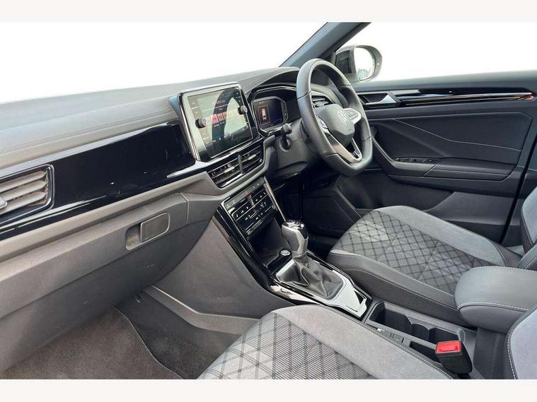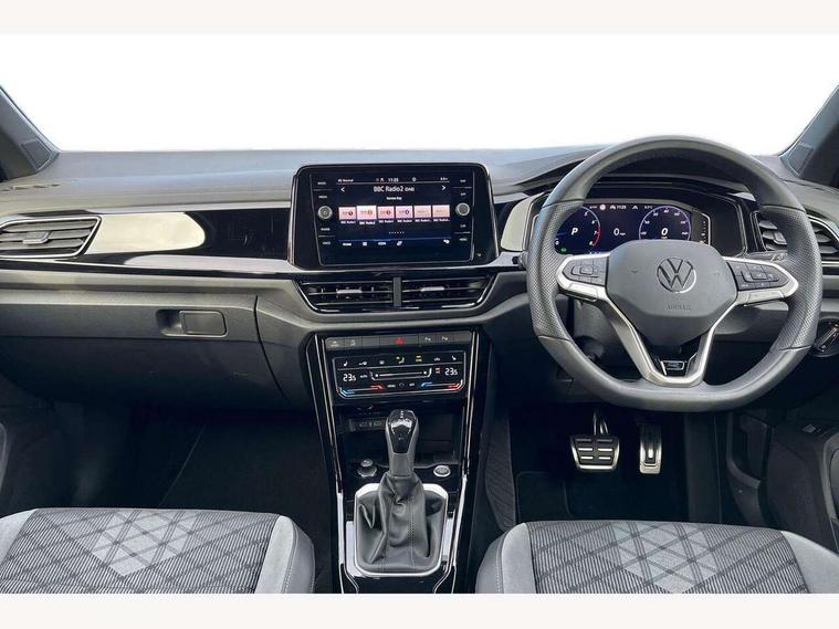 10.25" Digital cockpit pro, Advanced driver attention and drowsiness monitor, Emergency call service, Lane keeping system Lane Assist, Mobile phone interface, Modified key software - reduce switch off time for key status change to Long no motion, Online services, Park assist including front and rear parking sensors, Power assisted speed sensitive steering, Service interval indicator, Tailgate/trunk lid release from outside, Think blue trainer driver tips and journey analysis, Warning sound and light for front seatbelts unfastened, Wireless app connect, Battery regeneration during braking, Rear shock absorption chassis with increased ride height, Start/stop function with battery regeneration, DAB Digital radio, Diversity antenna for FM reception, Front and rear 6 speakers, Music playback - MP3, WMA and AAC files, Premium USB cable in choice of either Apple or Android smartphone compatibility, SD card slot, Simultaneous pairing of 2 compatible mobile devices, Title and cover art display, We Connect and We Connect Plus functionality, Auto dimming interior rear view mirror, Automatic hazard lights activation under emergency braking, Automatic headlight control with LED separate daytime running lights with coming/leaving home function, Dynamic cornering light, Electrically adjustable and heated door mirrors, Extended roof spoiler, Exterior mirrors aspherical on driver side, convex on front passenger side, External USB type C socket and charging sockets, Front windscreen wiper with intermittent wipe and 4 position delay, Heated rear window, Illuminated front grille, IQ LED matrix headlights, LED 3rd brake light, LED rear number plate lights, LED rear tail lights with dynamic turn signal, Light mode for poor weather, rain, fog or snow, Power windows with comfort operation and circuit breaker, R-Line design body coloured bumpers, Rain sensor, Rear exhaust tailpipe, Rear fog light on one side and reversing lights on both sides, Rear side wing doors, Rear wash/wipe with intermittent wipe setting, Remote electrically foldable door mirrors, puddle lights and reverse activated passenger's door mirror, 12V power socket in centre console, 3 rear head restraints, 3 seat bench in 2nd row, 4 load lashing points in luggage compartment, Air care climatronic air conditoning system with active combination filter and 2-zone temperature control, Artvelours cloth upholstery, Black roof lining, Chrome plated radiator grille inserts, air vent surrounds and light switch surrounds, Door and side trim panel with leatherette insert, Drawer under drivers seat, Driver seat height adjust, Driver's seat lumbar support, Front + rear carpet mats, Front centre armrest, Front comfort sports seats, Front cupholders x 2, Front footwell illumination, Front reading light, Front scuff plates with R Line logo, Front seat back storage pockets, Glove compartment door with light, Instrument lighting, white adjustable panel illumination, Interior ambient lighting and surround lighting, Interior light delay, Isofix child seat preparation, Leather gearshift handle, Leather wrapped multifunction steering wheel with paddle shift, Load-through provision with cup holder when folded down ('Unsplit rear seat bench, split folding backrest, with centre armrest), Luggage compartment lighting, Non-folding front passenger seat backrest, Passenger seat height adjuster, Passenger seat lumbar support, Single front passenger seat, Stainless steel pedals, Storage compartment in left and right luggage area, Storage compartment in rear doors, Storage compartments in driver and front passenger doors, Sunvisors with illuminated vanity mirrors, Variable boot floor, height adjustable and removable, Winter pack without heated windscreen washer jets - T-Roc, 3 point height adj front seatbelts + pretensioners, 3 point seatbelts in outer rear with ECE label, ABS, Child locks on rear doors, City emergency braking and pedestrian monitoring, Driver and front passenger airbag with front passenger airbag deactivation, Driver and front passenger safety-optimised head restraints, Drivers seatbelt reminder, Electronic parking brake, Electronic Stability Control (ESC) inc EDL (Electronic Differential Lock) and ASR (Traction Control), Front and rear passengers curtain airbag system including front side airbags, Front disc brakes, Hill start assist, Predictive pedestrian protection, Rear disc brakes, Two tone horn, Tyre pressure loss indicator, Volkswagen roadside assistance, Tool kit, Trims for alloy wheels, Tyre mobility kit including compressor and sealing foam,