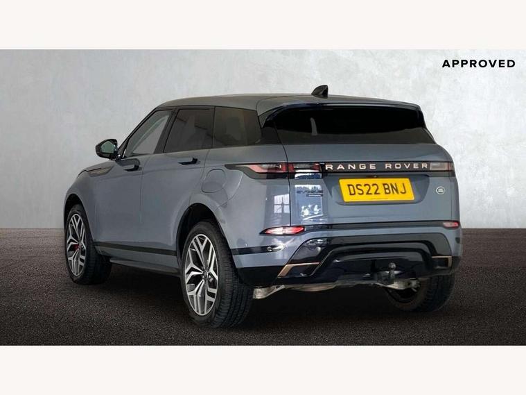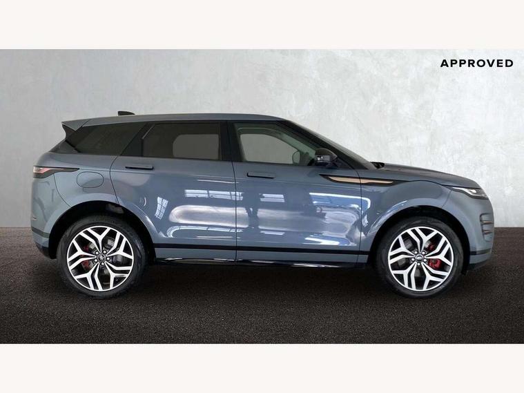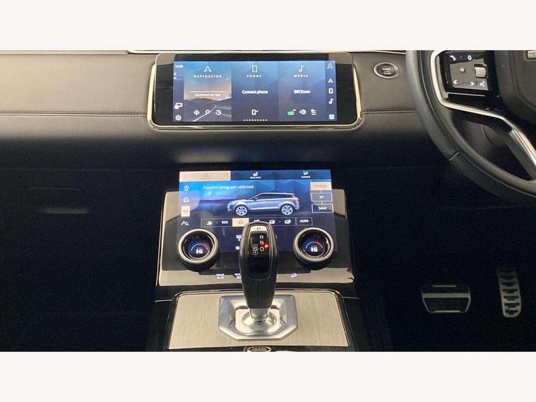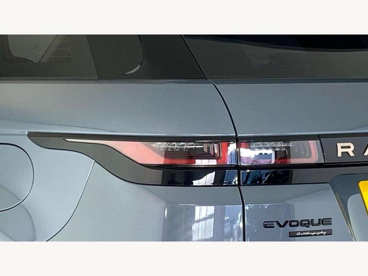 10" deployable touchscreen with lower touchscreen, Adaptive cruise control, Android Auto, Apple car play, Blind spot assist, Bluetooth connectivity, Brake pad wear indicator warning light, Driver condition monitor, eCall emergency system, Electronic power assisted steering (EPAS), Front and rear parking aid, InControl remote, Land Rover InControl apps, Lane keep assist, Pivi pro connected includes upgraded infotainment, connected navigation pro, Nuance speech licence, Powered gesture tailgate/boot lid, Push button starter, Rear collision monitor, Rear traffic monitor, Traffic sign recognition with adaptive speed limiter, Voice control system, 7 kW onboard charger, All terrain progress control, Configurable dynamics, Electric rear axle drive, Home charging cable, Large fuel tank, Passive suspension, Public charging cable, Terrain Response 2 Auto, Digital Audio Broadcast radio-DAB, Meridian surround sound system with 650W subwoofer and 14 speakers, Steering wheel mounted controls, Auto headlights, Autobiography badge, Automatic headlight levelling, ClearSight interior rear view mirror, Electric windows with one touch open/close and anti trap, Evoque and R-Dynamic badge, Flush deployable exterior door handles, Heated rear window with timer, Heated washer jets, Heated windscreen, Matrix LED headlights with signature DRL, intelligent high beam assist, signature Hi-Line tail lights and animated directional indicators, Power fold, auto-dimming, heated door mirrors with approach lights and auto dimming driver side, R-Dynamic branding illuminated metal tread plates in loadspace and row 1 with brand name script and non illuminated metal in row 2, Rain sensing windscreen wipers, Rear fog lights, Rear side wing doors, Rear wiper, Tailgate spoiler, Third brake light, 14 way electric heated/cooled front and rear seats with driver memory, 2 way man headrest, electric 4 way lumbar support, bolsters + headrest adj, 40:20:40 split folding rear seats with centre headrest and armrest, Ambient interior lighting, Bright metal pedals, Electrically adjustable steering column with memory function and easy entry/exit, Full extended leather upgrade, Heated steering wheel, Isofix system on outer rear seats, Overhead lighting console, Overhead stowage for sunglasses, Passive front head restraints, Perforated full leather steering wheel, Premium cabin lighting, Premium carpet mats, Rear air vents, Rear centre headrest, Rear head restraints, Satin chrome gearshift paddles, Single passenger seat, Sunvisors with illuminated vanity mirrors, Twin sliding front centre armrest, 3 rear 3 point seatbelts, Anti-lock braking system (ABS), Customer configurable autolock, DSC - Dynamic Stability Control, Electronic brake force distribution, Electronic parking brake, Electronic traction control, Emergency braking, Front and rear seatbelt reminder, Hill descent control, Hill launch assist, Low traction launch, Power operated child locks, Red brake calipers, Roll stability control, Six airbags - Driver and passenger airbags/driver knee airbag/front side airbag and curtain airbags, Torque vectoring brake, Tyre pressure monitoring system, Alarm, Immobiliser, Intrusion sensor, Keyless entry, Locking wheel nuts,