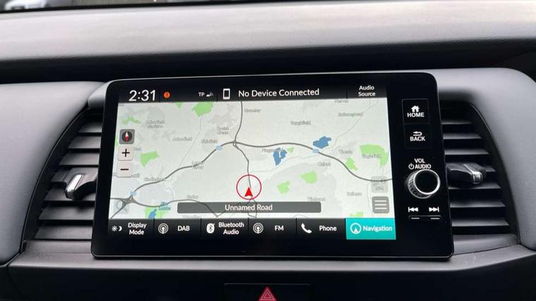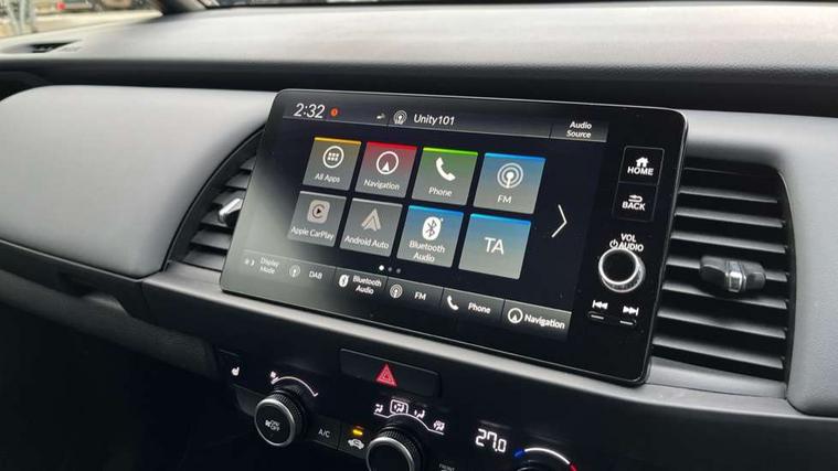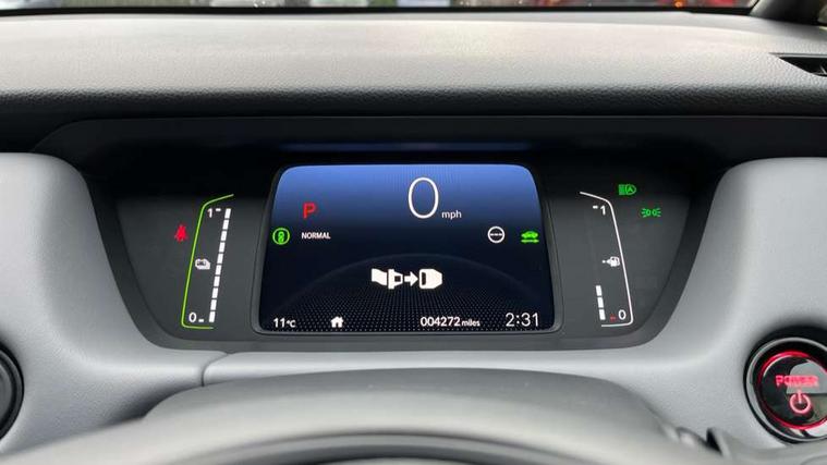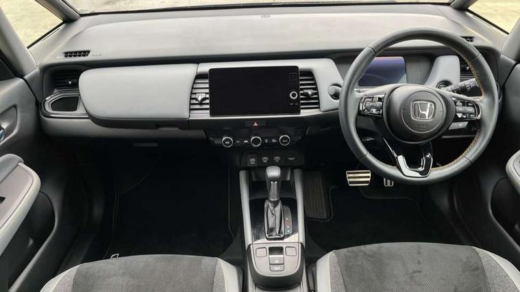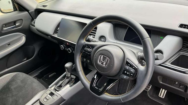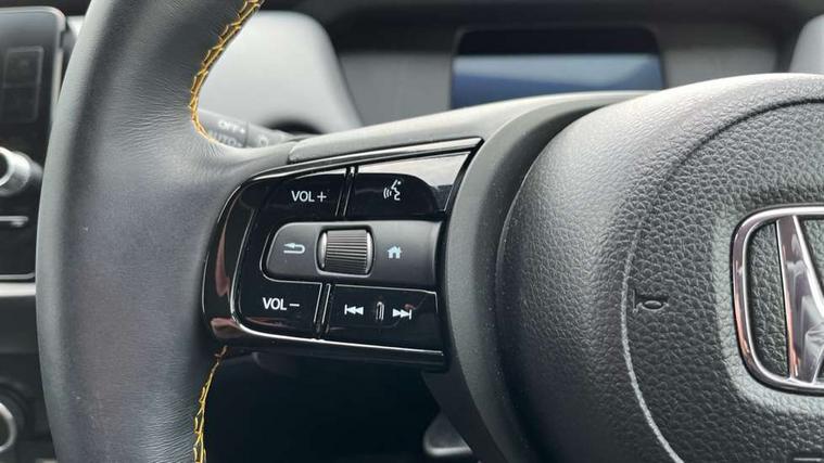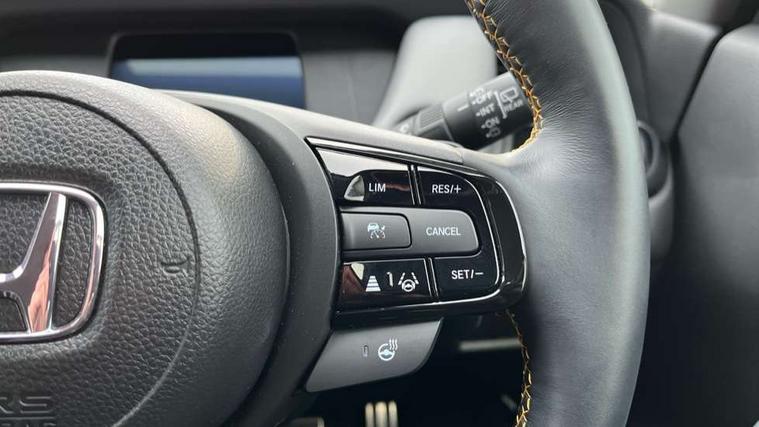 Adaptive cruise control, Adjustable speed limiter, Agile handling assist, BLIS (Blind Spot Information System) with Cross Traffic Monitor, Bluetooth hands free telephone connection, Drive mode (Econ, Sport, Normal), Driver attention monitoring system, eCall emergency call system - ecall functionality is subject to 2G/3G network availability, Electric power steering wheel with variable gear ratio steering, Emergency stop signalling system, Forward collision warning, Front and rear parking sensors, Honda CONNECT with Navigation 9" touchscreen, AM/FM/DAB, Apple Carplay and Android Auto, live traffic info, Idle stop, Intelligent speed limiter, Lane departure warning system, Lane keep assist system, Low speed following, Multi-information display, Rear view camera, Road departure mitigation, Tailgate, Traffic jam assist, Traffic sign recognition, Wireless apple carplay, Vehicle stability assist, 'Shark fin' mobile antenna, 180w Power audio system with 4 speakers, 2 USB-C connectors rear, 2x USB Front socket (1 data & 1 charge), Remote audio controls on steering wheel, Aspheric door mirrors, Auto wipers, Automatic headlights with on/off timer, Coming/leaving home function, Black headlight extension, Body colour door handles, eHEV emblem, Electric adjustable door mirrors, Electrically folding door mirrors, Exclusive styling includes front and rear bumper in gloss black finish, Front and rear electric windows, Heated door mirrors, High beam assist, LED 3rd brake light, LED daytime running lights, LED Headlights, LED rear lights, Manual headlight levelling, Privacy glass, Rear side wing doors, Rear wiper, Single exhaust tailpipe with finisher, Sport grille, 3 seat bench in 2nd row, 60/40 split rear bench seat, Cargo net hooks, Climate control air conditioning, Driver and front passenger seat armrests, Driver and passenger front seat pockets, Driver's seat height adjustment, Fabric/suede leather upholstery, Front accessory power socket, Front head restraints, Front map lights, Front/rear courtesy lights, Heated front seats, Heated steering wheel, Isofix points, Leather 3-spoke steering wheel, Leather gearshift knob, Magic seat flexibility system, Plating interior door handles, Rear head restraints, Single front passenger seat, Sport pedals, Sunvisors with vanity mirrors, Tilt/telescopic adjustable steering wheel, Tonneau cover, Trunk light, Vanity mirror illumination, 3x3 point rear seatbelts, Anti-lock braking system (ABS), Brake assist function, Brake hold function, Child locks on rear doors, Collision mitigation braking system, Deflation warning system, Driver knee airbag, Driver SRS airbag (single stage inflation), Driver/Front Passenger airbags, Electronic parking brake with auto hold, Front and rear seat belt with emergency locking retractor, Front and rear side curtain airbag, Front centre airbag, Front side airbags, Hill start assist, Paddle deceleration control, Passenger SRS airbag cut-off device, Rear side airbags, Regenerative braking system, Whiplash lessening front headrests, Honda super locks, Immobiliser, Mirrors and windows key fob operation, Remote central locking with 2 remote folding keys, Security alarm, Smart entry + Smart start, Soft pad leather interior panels, Tyre repair kit,