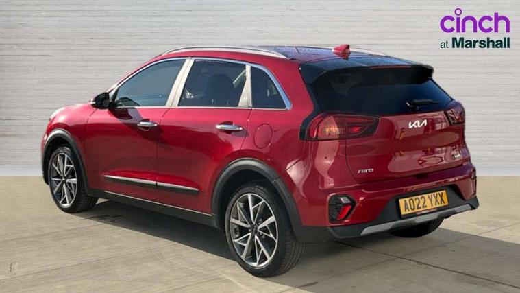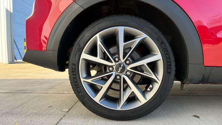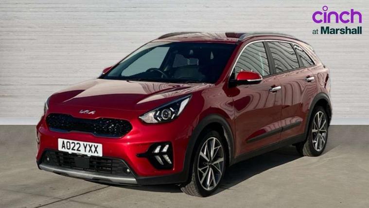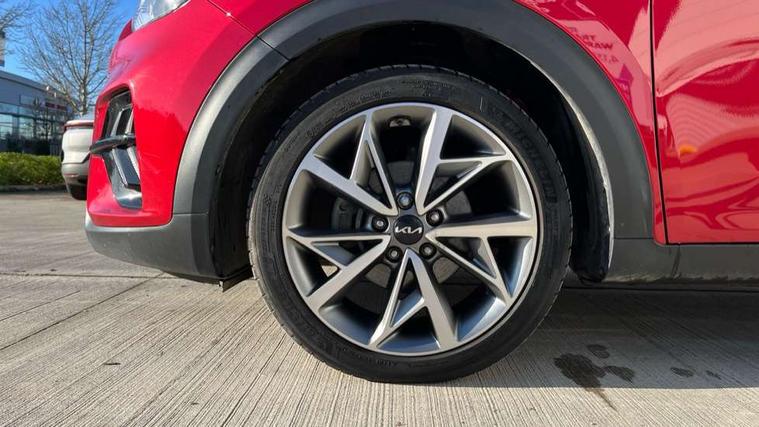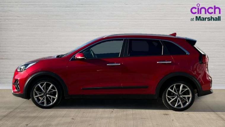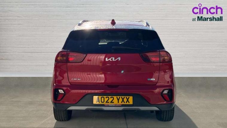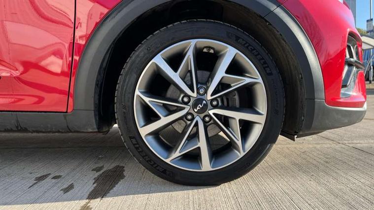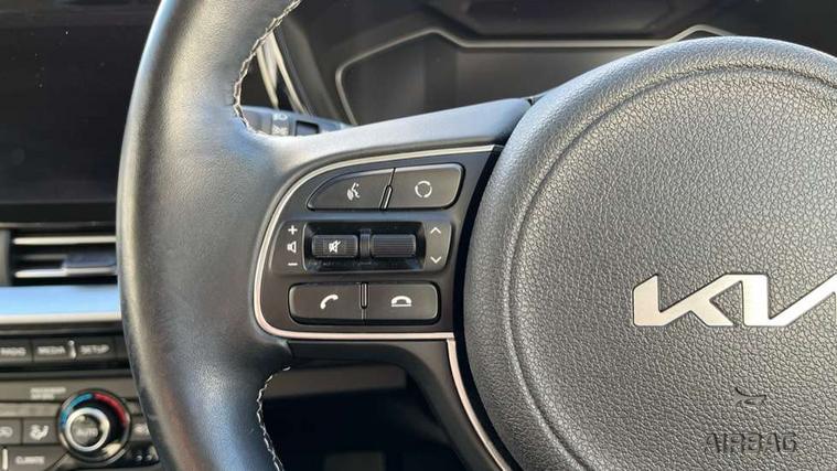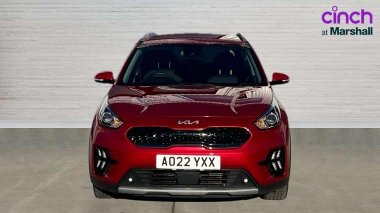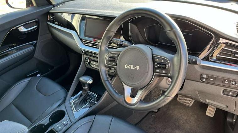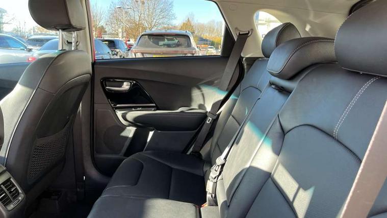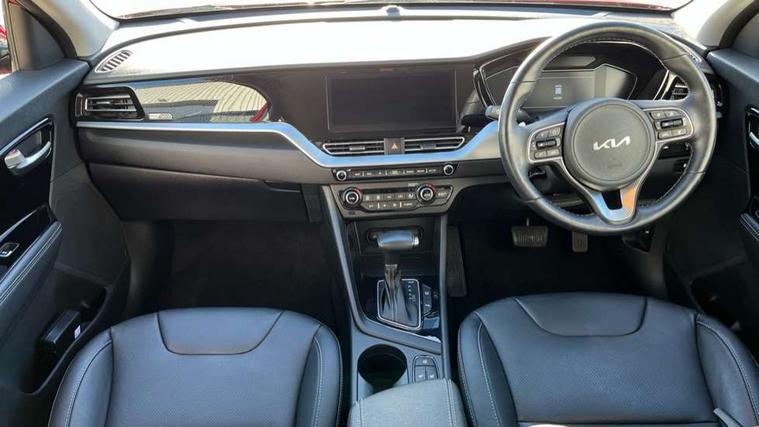 10.25" Touch screen satellite navigation with european mapping and traffic messaging channel, 7" full supervision cluster with TFT colour display, Adaptive smart cruise control function (SCC) with stop and go, Apple car play/Android Auto with voice control, Digital clock, Drive mode selector, Driver attention warning, Emergency call service, Emergency stop signalling system, Forward collision avoidance assist, Front parking sensors, Kia connected services featuring TomTom live, Lane Following Assist (LFA), Lane keep assist, Motor driven power steering, Rear parking sensors, Reversing camera, Speed limiter, Trip computer with distance/fuel consumption/average speed, UVO connect, Wireless Smartphone charger, 'Shark fin' mobile antenna, 6 speakers, Bluetooth with music streaming, DAB Radio with MP3, Steering wheel mounted controls, USB connection located in centre console, USB port, All round electric windows with drivers and front passenger auto up/down function, Auto dimming rear view mirror, Automatic defog system, Automatic headlight control system, Black beltline mouldings, Black side sills, Black wheel arch mouldings, Body colour bumpers, Body coloured/high gloss door mirrors, Chrome door handles, Driver's side wide angle mirror, Electrically folding/adjustable/heated door mirrors with LED indicators, LED daytime running lights, LED fog lights, LED rear combination lights, LED third brake light, Manual headlight levelling, Matt black radiator grille, Privacy glass - Rear windows and tailgate, Projector headlamps, Rain sensing front wipers, Rear side wing doors, Rear spoiler, Rear wiper, Roof rails, Solar glass, Variable front intermittent wipers, Waistline black paint, Welcome and follow-me home light functionality, 3 seat bench in 2nd row, 3 x passenger assist grips, 60/40 split/folding 2nd row of seats, 8 way electric adjustable drivers seat, All-round height adjustable headrests, Aluminium door scuff plates, Bulb type overhead console lamp with sunglasses case, Centre console storage box, Centre room lamp, Cupholders in rear armrest, Driver/passenger sunvisors with illuminated vanity mirrors, Drivers seat power lumbar support, Dual zone automatic air conditioning, Front and rear door storage, Front/rear centre armrests, Headlining in Light grey, Heated front seats, Heated steering wheel, High gloss black lower console trim, High gloss black steering wheel trim, Illuminated ignition key hole, Interior door lock/unlock function, ISOFIX Child seat top tethers and anchor fixings, Leather trimmed door armrests, Leather trimmed steering wheel, Leather trimmed steering wheel and gearshift, Leather upholstery, Luggage area lamp, Luggage area load cover, Luggage net with hooks, Paddle shifts, Passenger seat height adjuster, Satin finish inner door handles, Seatback pocket - driver, Seatback pocket - front passenger, Single front passenger seat, Tilt/telescopic adjustable steering wheel, Under floor storage box, Ventiliation ducts to rear compartment, Towing pack - Niro, 3 point seatbelts on all seats, ABS, Automatic unlocking of doors in case of impact, Drivers knee airbag, Electric parking brake with auto hold function, Electronic stability control, Front passenger airbag cut-off switch, Height adjustable front seatbelts, Hill start assist control (HAC), Manual child lock in rear doors, Traction control, Twin curtain airbags with roll over sensor, Twin front and side airbags, Tyre pressure monitoring system, Alarm system and engine immobiliser, Deadlocks, Locking wheel nuts, Remote central door locking with fold away key, Speed sensitive auto door locking, Visible vehicle identification number, High gloss black centre fascia, High gloss black door inserts, 18" Alloy wheels, Tyre mobility kit,