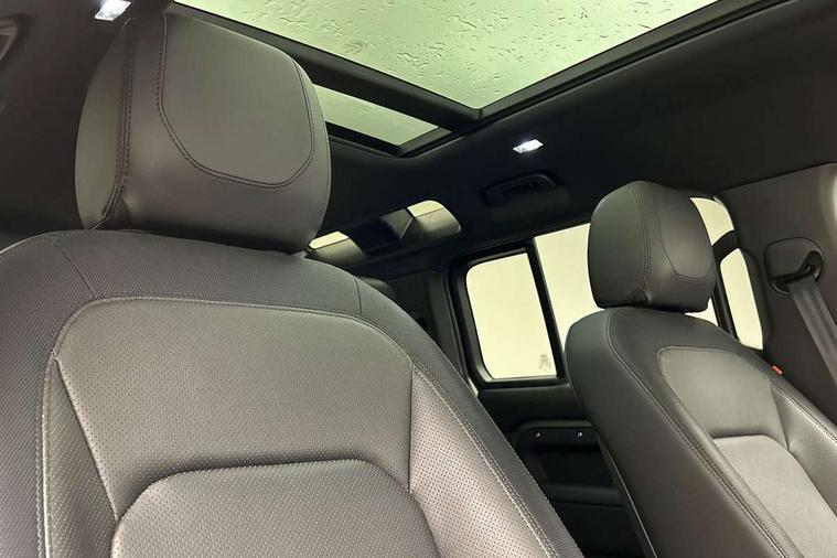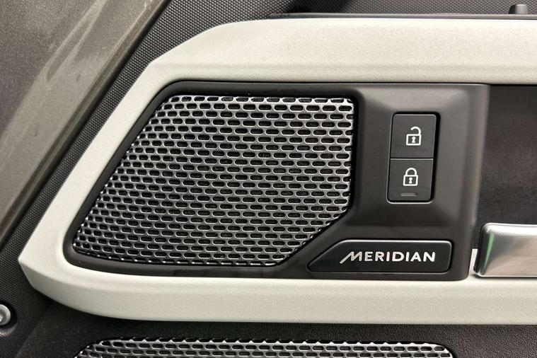 360 degree parking aid, 3D Surround Camera with 360 View, 180 Rear View, Front Traffic Detection, Forward Vehicle Guidance, Tow Hitch Assist and clear sight Ground View, Adaptive cruise control, Android Auto, Apple CarPlay, Assisted tailgate with soft close, Blind spot assist, Bluetooth system, Brake pad wear indicator, Clear exit monitor, Connected navigation pro, Driver condition monitor, Electric power assisted steering (EPAS), Interactive driver display, Lane keep assist, Push button start, Rear traffic monitor, Traffic sign recognition with adaptive speed limiter, Trip computer, Wade Sensing, 8 speed automatic transmission, Adaptive dynamics, All wheel drive system, Twin speed transfer box, DAB Radio (Digital Audio Broadcasting), Meridian 400w sound audio system with 11 speakers and subwoofer, Pivi pro connected, Automatic headlight levelling, Automatic headlights, Black exposed rear recovery eyes, Centre high mounted stop light, Electric heated/power fold door mirrors with approach lights and auto dimming driver side, Electric windows with one touch open/close and anti-trap, Follow me home lighting, Heated rear window with timer, Heated windscreen, LED tail lights, Privacy glass, Puddle lights, Rain sensing windscreen wipers, Rear fog lights, Rear side wing doors, Rear wiper, Side hinged tailgate, Trailer stability assist, X-Dynamic badge, 12V power socket in loadspace, 2 seat bench in 3rd row, 3 seat bench in 2nd row, Alpine lights, Configurable cabin lighting, Durable rubber cabin flooring, Durable rubber loadspace flooring, Footwell lights, Front passenger isofix child seat attachment, Loadspace cover, Loadspace Hook, Multifunction steering wheel, Overhead stowage for sunglasses, Premium cabin lighting, Rear headrests, Rear ISOFIX, Rear reading lights, Single front passenger seat, Storage glovebox, Sunvisors with illuminated vanity mirrors, Online pack with data plan - Defender, 7 three point seatbelts, ABS, Brake hold function, Cornering brake control (CBC), Customer configurable autolock, DSC - Dynamic Stability Control, EBD - Electronic brakeforce distribution, Electric parking brake (EPB), Emergency brake assist, Emergency braking, ESP + traction control, Front airbags with passenger seat occupant detector, HDC - Hill descent control, Hill launch assist, Low traction launch, Power operated child locks, Remote for (e-Call, Optimised assistance call, InControl app, Climate, beep and flash and door), RSC - Roll stability control, Seat belt reminder, TPMS (Tyre pressure monitoring system), Alarm, Immobiliser, Intrusion sensor, Keyless entry, Locking wheel nuts,