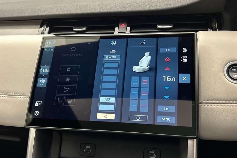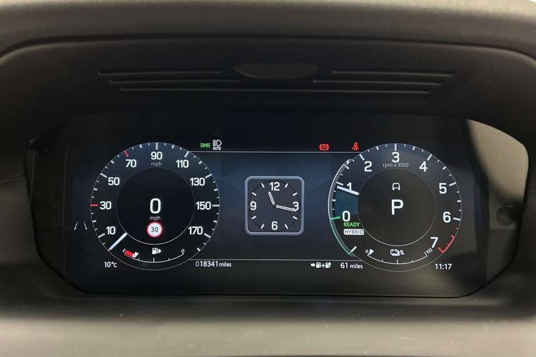 11.4" touch screen, Adaptive cruise control, Android Auto, Apple CarPlay, Blind spot assist, Driver condition monitor, eCall emergency call system, Front and rear parking aid, Head up Display, InControl remote premium, Interactive driver display, Lane keep assist, Locking fuel flap, PAS, Pivi Pro connected navigation system with upgraded Infotainment, Powered tailgate/boot lid, Push button start, Rear collision monitor, Rear traffic monitor, Service interval indicator, Traffic sign recognition with adaptive speed limiter, Trip computer, Wireless device charging, 7 kW onboard charger, All terrain progress control, Coil suspension system, Dynamic stability control, Home charging cable, Public charging cable, Terrain Response 2, Bluetooth connectivity including audio streaming, Digital Audio Broadcast radio-DAB, Steering wheel mounted audio controls, 3rd brake light, Automatic headlight levelling, Automatic headlights, Dynamic Exterior Styling, Electric front/rear windows, Electric heated/power fold door mirrors with approach lights and auto dimming driver side, Front and rear recovery eyes, Front fog lights, Heated rear window, Heated windscreen including heated washer jets, Illuminated metal treadplates with brand name script, Matrix LED headlights with signature DRL, front and rear animated directional indicators and intelligent high beam assist, P300e badge, Privacy glass, Rain sensing windscreen wipers, Rear fog lights, Rear side wing doors, Rear wing door, Rear wiper, 14 way heated electric front seats with driver memory, 2 way manual headrests and adjustable bolsters + 4 way electric lumbar support, 5 standard seating configuration, Bright metal pedals, Carpet mats, Centre console with armrest, Ebony morzine headlining, Electrically adjustable steering column with memory, Footwell lights, Front and rear 12V with front USB, Front and rear grab handles, Front passenger isofix child seat attachment, Full leather twin-rim steering wheel, Heated and cooled front seats, Heated steering wheel, Loadspace cover, Loadspace light, Manual slide and recline second row seats, Overhead lighting console, Overhead stowage for sunglasses, Rear headrests, Row 2 USB x 2 and row 3 USB x 1, Satin chrome gearshift paddles, Sunvisors with illuminated vanity mirrors, Twin front cupholders with cover, Windsor leather upholstery, Online pack with data plan - Discovery, 3 point seatbelts on all seats, ABS, Brake hold function, Child locks on rear doors, Collision mitigation braking system, Cornering brake control (CBC), Driver/Front Passenger airbags, Drivers knee airbag, Electronic brake force distribution, Electronic parking brake, Emergency brake assist, ESP + traction control, Hill descent control, Hill launch assist, Pedestrian airbag system, Rear seat ISOFIX, Roll stability control, Side and curtain airbags for front and 2nd row seats, Trailer stability control, Tyre pressure monitoring system, Battery Back Up System (BBUS) with tilt sensor, Global lock and unlock switch on driver door, Intrusion sensor, Keyless entry, Locking wheel nuts, Centre stack rails in noble chrome,