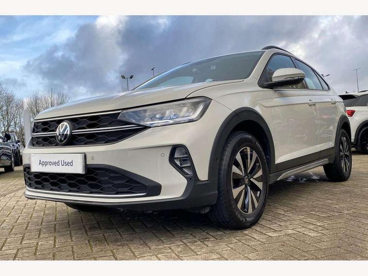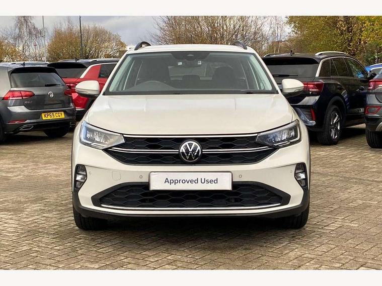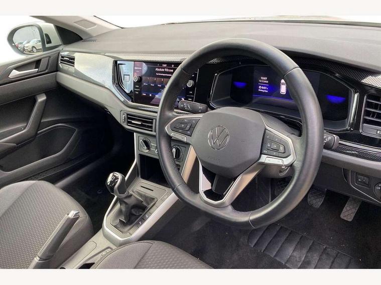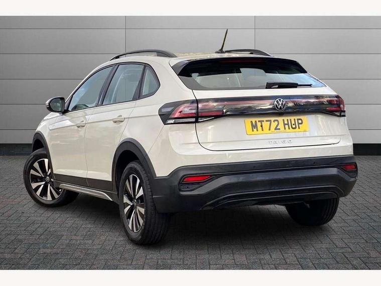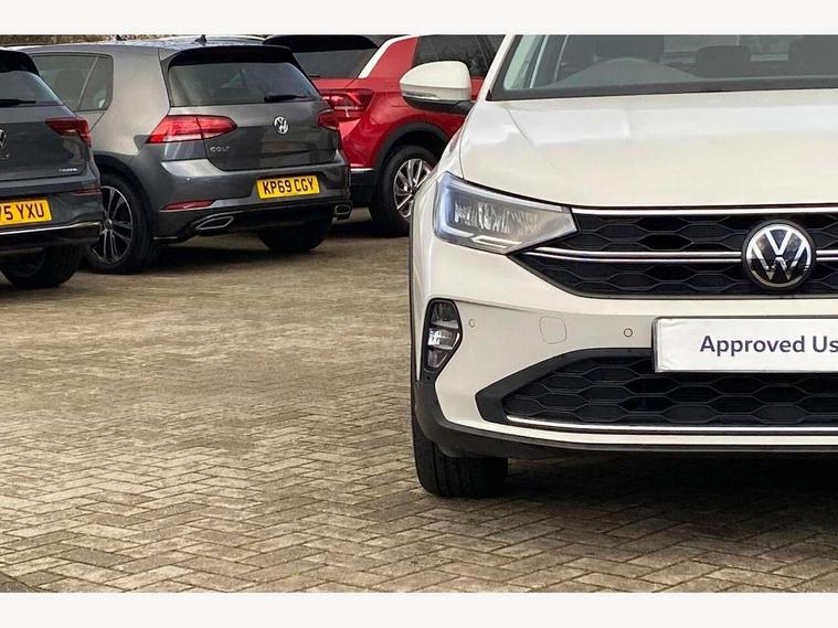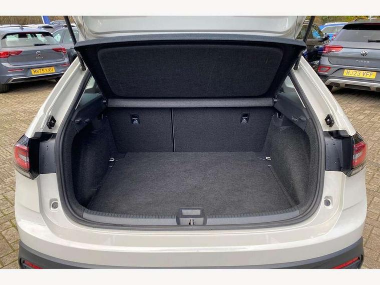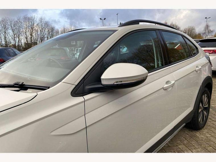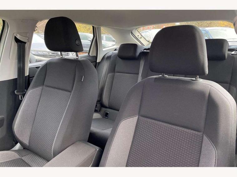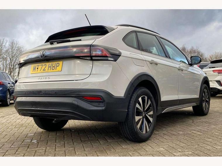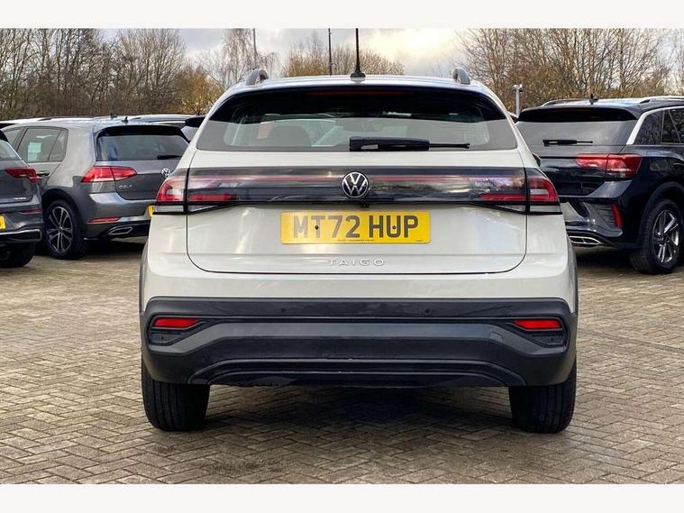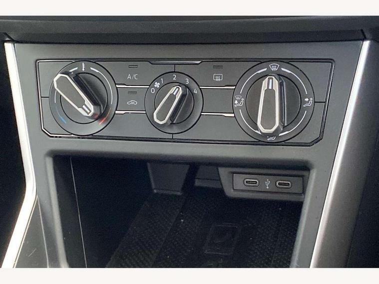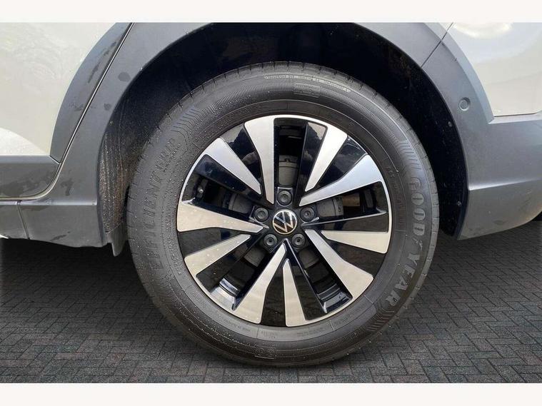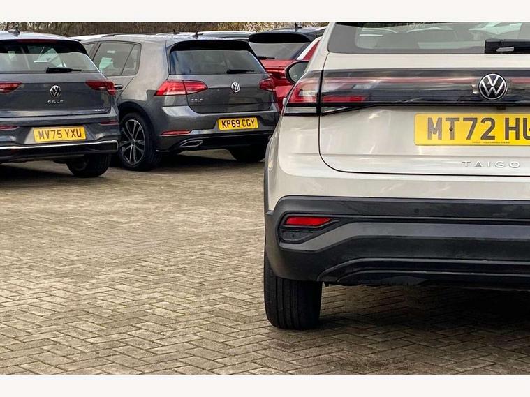 Driver alert system, e-Call (emergency call), Power Steering, Travel assist including emergency assist, Washer fluid level indicator, Wireless Charging including Bluetooth, Start-stop system with battery regeneration (recuperation - energy recovery during braking), WeConnect plus, Ambient lighting with logo projection, Aspherical driver's exterior mirror, Auto headlights, Body coloured bumpers, Body coloured exterior mirror housings and door handles, Electric windows, External USB type C socket and charging sockets, Front fog lamps with cornering function, Headlight range control, Heat insulating glass windscreen, LED headlamps, LED rear combination lamp, LED third brake light, Left convex exterior mirror, Power folding adjustable/heated exterior mirrors and front passenger exterior mirror lowering function, Rear fog light on one side, reversing light on both sides, Rear side wing doors, Rear wash/wipe with intermittent wipe setting, 'Slash/ Austin' Cloth upholstery, 12V socket in centre console, 2 front reading lights, 3 rear head restraints, 3 seat bench in 2nd row, Black carpets, Child seat anchor for child seat system i-Size, 2x top tether and child seat anchor in front on front passenger side, Door and side trim panels in titan black, Driver and front passenger seat height adjustment, Front centre armrest, Handbrake lever handle in leather, Height and reach adjustable steering wheel, Leather trimmed gear knob, Leather wrapped multifunction steering wheel, Luggage compartment floor, Luggage compartment light, Lumbar support for driver's and front passengers seat, Seat covers in titanium black, Single front passenger seat, Split folding backrest with centre armrest and unsplit rear seat bench, Storage compartment under front seats, Sun visors with illuminated vanity mirrors, Chrome Package - Taigo, Drivers assistance pack - Taigo, Light and Sight pack including High beam assist - Taigo, 2 x 3-point seatbelts/outer rear seats with ECE label, 3-point seat belts in front with pretensioner and height adjustment, 3-point seatbelt for centre rear seat, Driver and front passenger airbags with front passenger airbag de-activation, front side and curtain airbags, Driver and front passenger safety-optimised head restraints, Electronic stability control, Extended and predictive pedestrian/ cyclist protection, Front and rear disc brakes, Front curtain and side airbags with center airbag, Hill start assist, Manual rear child locks, Single tone horn, Tyre pressure loss indicator, Anti-theft alarm system with interior monitoring, backup horn, and towing protection, Anti-theft wheel bolts, Lava stone black gloss/matt decorative inserts in dash and front door panels, Low rolling resistance tyres,