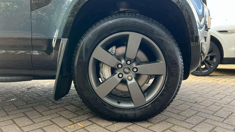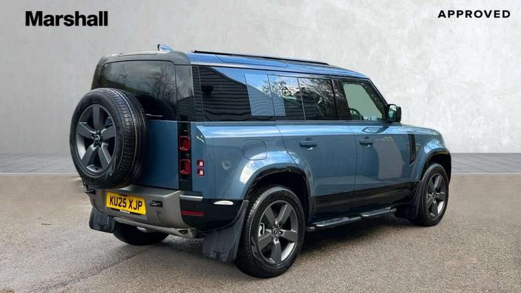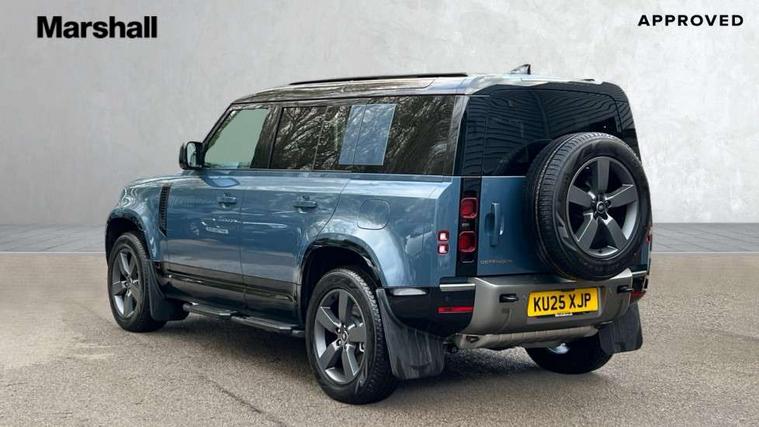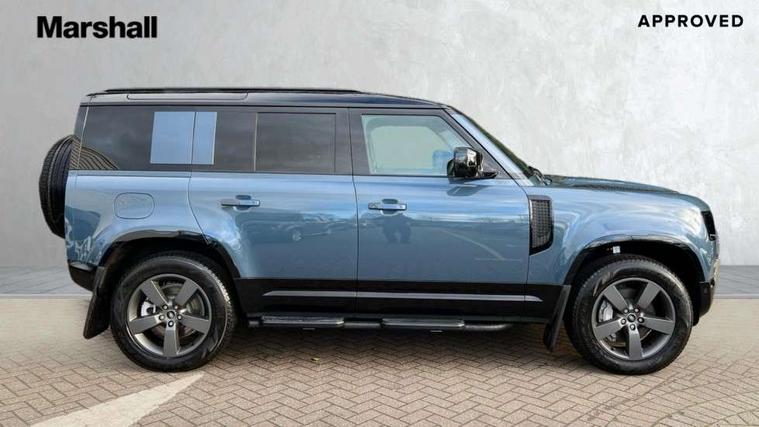 1 x USB-C (power only) & 1 x USB-C (power & data) in Row 1, 2 x USB-C in Row 2, 11.4" touchscreen, 360 degree parking aid, 3D Surround Camera with 360 View, 180 Rear View, Front Traffic Detection, Forward Vehicle Guidance, Tow Hitch Assist and clear sight Ground View, Adaptive cruise control, Android Auto, Apple CarPlay, Blind spot assist, Bluetooth system, Brake pad wear indicator, Clear exit monitor, Connected navigation pro, Driver condition monitor, Electric power assisted steering (EPAS), Interactive driver display, Lane keep assist, Push button start, Rear collision monitor, Rear traffic monitor, Traffic sign recognition with adaptive speed limiter, Trip computer, Wireless device charging, 8 speed automatic transmission, AC/DC charging, Adaptive dynamics, All wheel drive system, Electronic air suspension, Home charging cable mode 2 basic, Public charging cable, Twin speed transfer box, DAB Radio (Digital Audio Broadcasting), Meridian 700w surround sound audio system with 15 speakers, Pivi pro connected, Automatic headlight levelling, Automatic headlights, Black exposed rear recovery eyes, Body coloured bonnet, Centre high mounted stop light, Electric heated/power fold door mirrors with approach lights and auto dimming driver side, Electric windows with one touch open/close and anti-trap, Follow me home lighting, Front fog lights, Heated rear window with timer, Heated windscreen, Illuminated metal treadplates with brand name script, LED tail lights, Matrix LED headlights with signature DRL, Privacy glass, Puddle lights, Rain sensing windscreen wipers, Rear fog lights, Rear side wing doors, Rear wiper, Side hinged tailgate, Sliding panoramic roof, Standard tail door, Trailer stability assist, X-Dynamic badge, 12V power socket in loadspace, 3 seat bench in 2nd row, Alpine lights, Configurable cabin lighting, Durable rubber cabin flooring, Durable rubber loadspace flooring, Electric reach + rake adjustable steering column, Electrically adjustable steering column, Extended leather upgrade, Footwell lights, Front head restraints, Front passenger isofix child seat attachment, Heated steering wheel, Loadspace cover, Loadspace Hook, Multifunction steering wheel, No flat load floor storage, Overhead stowage for sunglasses, Rear headrests, Rear ISOFIX, Rear reading lights, Single front passenger seat, Soft close tail door, Standard seat configuration, Storage glovebox, Sunvisors with illuminated vanity mirrors, Twin front cupholders, Non-smoker package, Online pack with data plan - Defender, 5 x 3 point seatbelts, ABS, Brake hold function, Cornering brake control (CBC), Customer configurable autolock, Driver and passenger airbags, DSC - Dynamic Stability Control, EBD - Electronic brakeforce distribution, Electric parking brake (EPB), Emergency brake assist, Emergency braking, ESP + traction control, Front airbags with passenger seat occupant detector, HDC - Hill descent control, Hill launch assist, Low traction launch, Power operated child locks, Remote for (e-Call, Optimised assistance call, InControl app, Climate, beep and flash and door), RSC - Roll stability control, Seat belt reminder, TPMS (Tyre pressure monitoring system), Alarm, Immobiliser, Intrusion sensor, Keyless entry, Locking wheel nuts, Secure tracker pro,