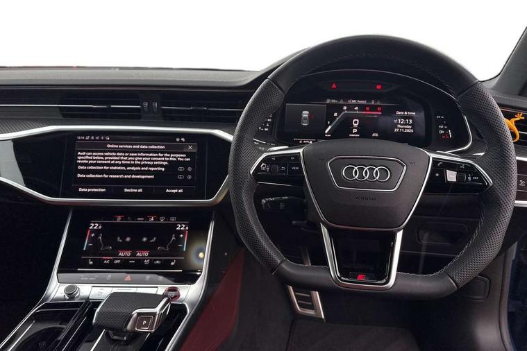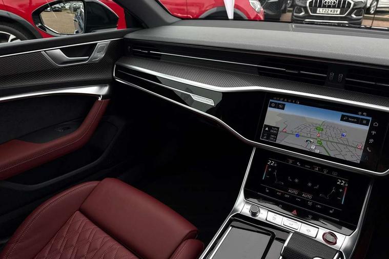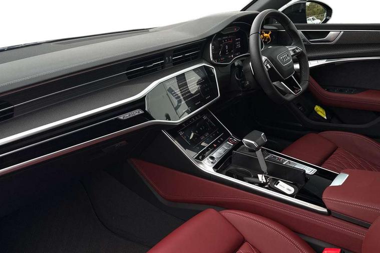 360 degree parking camera, Audi connect safety and service (e-call), Audi connect with Amazon Alexa Integration, Audi drive select, Audi virtual cockpit, Automatic start/stop system with coasting functionality, Bluetooth interface, Camera based traffic sign recognition, Colour driver's information system display, Head up Display, Lane departure warning system, MMI nav plus with MMI touch + 10.1" and 8.6" HD haptic touch screen/3D city models/country information/online map/route info and personal route assist, Operating buttons in black, glass look with haptic feedback, Progressive steering, Service indicator, Smartphone interface includes wireless Apple carplay/Android Auto, Voice control system, 22 litre AdBlue tank, 73 litre fuel tank, Diesel particulate filter, Quattro all wheel drive with self locking centre differential, Quattro on demand, S sport suspension with damper control, Audi music interface, Auxiliary input socket, Bang + Olufsen premium sound system, DAB digital radio module, Audi beam, Audi rings, front and rear as well S7 at the rear in black, Audi S badging on front grill with red rhombus and without model numbering, Body colour S specific rear diffuser, Electrically adjustable heated and folding + automatically dimming exterior mirrors with memory function, Frameless auto dimming interior rear view mirror, Front and rear electric windows, Gloss black highlights on the exterior area of the Audi Single frame, Gloss black highlights on the front and rear bumpers, Gloss black highlights on the radiator grille, Gloss black highlights on the side windows trim strips, HD Matrix LED headlights, Heat insulating darkened glass in side and rear windows, LED 3rd brake light, LED rear lights with dynamic indicators, Omission of output/technology badging, Privacy glass with side and rear windows, Rain and light sensors, Rear side wing doors, Rear wiper, Retractable rear boot spoiler, S air inlet in titanium anthracite black, S front and rear bumpers, S Line side skirts, Signature LED daytime running lights, Towbar preparation, Windscreen with heat-insulating glass, 4 zone climate control, 4-way electric lumbar support, 40/20/40 split folding 3 seater rear seat bench with rear centre armrest, Audi phone box light, Black cloth headlining, Electrically adjustable front seats - driver seat with memory, Front and rear headrests, Front centre armrest, Heated front seats, Height/reach adjust steering wheel, Illuminated sun visors with vanity mirrors, ISOFIX child seat mounting and top tether in front and outer rear seats with front passenger airbag deactivation, Leather gear knob, Leatherette upper instrument panel and door shoulders, Luggage compartment lid, electrically opening and closing, S line front and rear floor mats with contrast stitching, Single front passenger seat, Stainless steel pedals and foot rest, Valcona leather upholstery with super sport seats and S embossed logo, Extended LED Interior multi coloured light pack - A7, Non smoking pack - A7, Park assistance plus pack - A7, Storage pack - A7, 19" Disc brakes in front and brake calipers painted in black with "S" lettering (ECE), 3 point seatbelts on all seats, Audi pre-sense front, Driver and passenger airbags, Electromechanical parking brake, Electronic stabilisation control including ABS, ASR and EDL, Extended pedestrian protection measures, Hill hold assist, Manual child lock in rear doors, Seatbelt monitoring, Tyre pressure warning light, Warning triangle and first aid kit, Anti theft alarm with tow away protection, Anti-theft wheel bolts and wheel loosening detection, Immobiliser, Keyless Go, Preparation for tracking system, Remote central locking, Carbon twill inlays, 21" 5 V spoke trapezoid anthracite black, gloss turned alloy wheels, Tool kit,