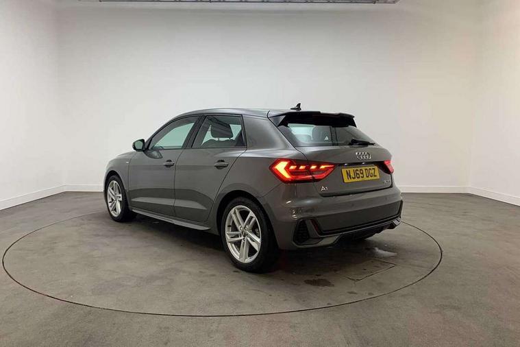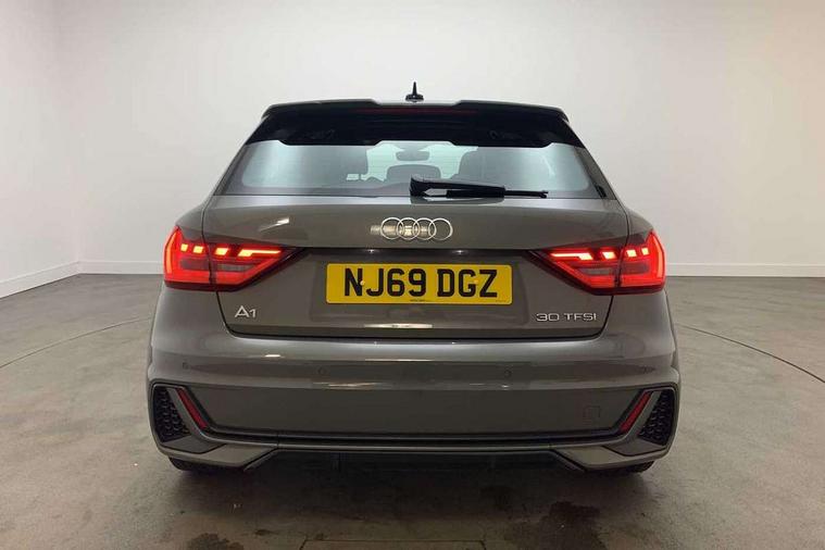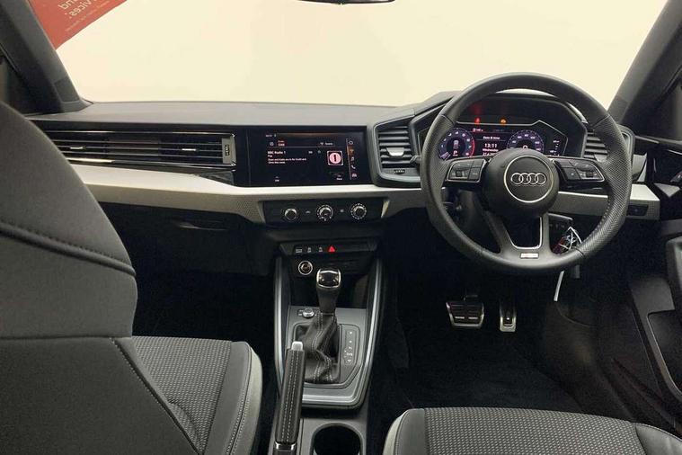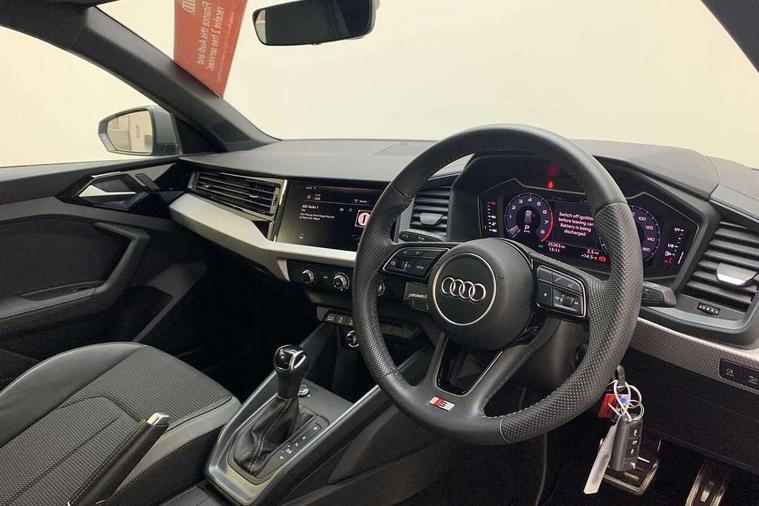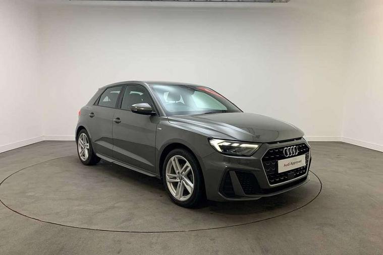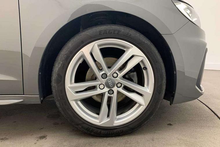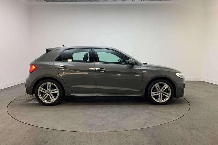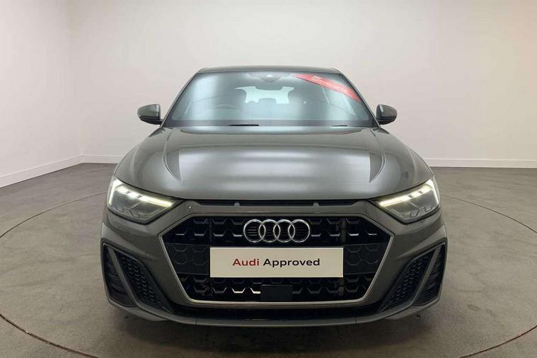 Aluminium trim for control switches, air vents and digital instrument cluster, Silver grey inlays polygon structure in diamond paint finish, Structured grey accent areas including air vents, door handle recesses and centre console in quartz paint finish, Anti theft alarm, Anti theft wheel bolts and loose wheel warning, Audi pre-sense front with pedestrain and cyclist recognition, Immobiliser, Remote central locking with 2 remote folding keys, 1 x SDXC card reader, 1 x USB type C and 1 USB type A charging points, Audi music interface, Bluetooth audio streaming, DAB Digital radio, MMI radio plus with 8.8" colour MMI display screen and MMI touch, 3x3 point rear seatbelts, Brake assist function, Driver and front passenger airbag with front side and head airbags, Electronic Stability Control including ABS, EBD, ASR and EDL, Front and rear seatbelt reminder, Front passenger airbag deactivation switch, Hill hold assist, Seatbelt height adjustment for front seats, Seatbelt monitoring, Tyre pressure warning light, Warning triangle and first aid kit, Auto dimming rear view mirror, Body colour side sill mouldings, Body coloured bumpers, Body coloured door mirrors, Door sills with aluminium inlays and S Line logo, Electric front and rear windows, Front side air inlets in grained matt black and C frame in titanium black, Heat insulating glass windscreen and side windows, Heated rear windscreen, LED headlights with LED rear lights + dynamic rear indicators, Matt aluminium silver tailpipe trim, Matt black radiator grille frame, Matt platinum grey in front spoiler clip and rear diffuser clip, Rain and light sensors, Rear fog lights, Rear wiper, S line badges on front wings, S line exterior bumpers, S line roof spoiler, Side air inlet frames titanium black, Side front spoiler lips in grained matt black, 12V socket in centre console with two cup holders, 3 rear seats, Black cloth headlining, Driver and passenger seat with manual height adjust with forward and backwards adjustment, Front and rear black floor mats with contrast stitching in fine silver, Front head restraints, Height and reach adjustable steering wheel, ISOFIX child seat mounting in front passenger and rear outer seats, Leather gear knob with aluminium trim, Leatherette handbrake grip, Luggage compartment light with front and rear reading lights, Lumbar adjustment for front seats, Rear head restraints, Split folding rear seats, Stainless steel pedals, 10.25" Digital instrument cluster display screen, Audi connect safety emergency and service including E-call, Audi drive select, Audi smartphone interface, Automatic start/stop system, Bluetooth interface, Driver's information system, Electromechanical power steering, Lane departure warning system, Service interval indicator, Speed limiter, Voice control system, Washer fluid level indicator, Sports suspension,