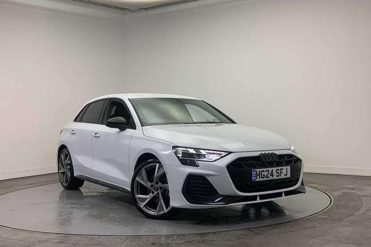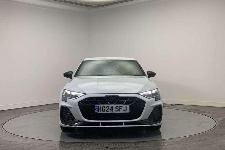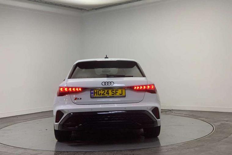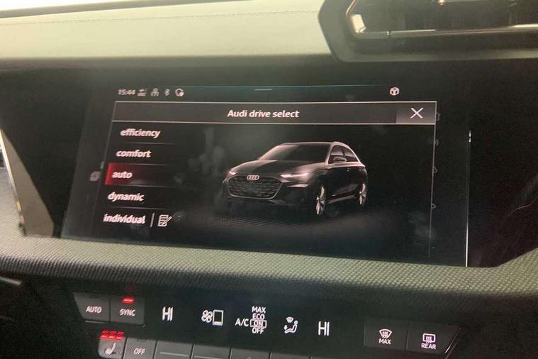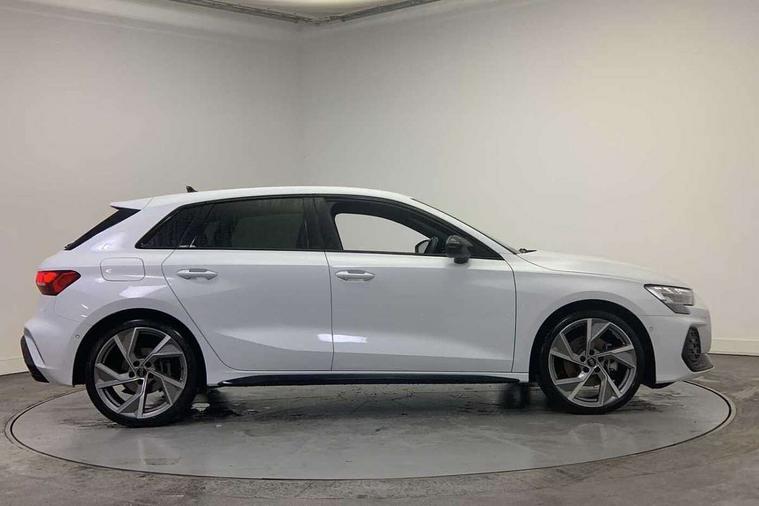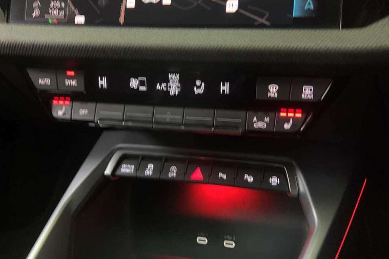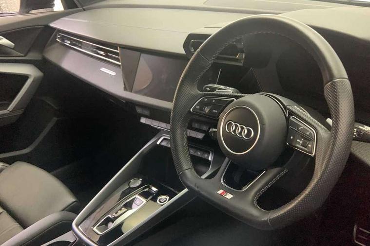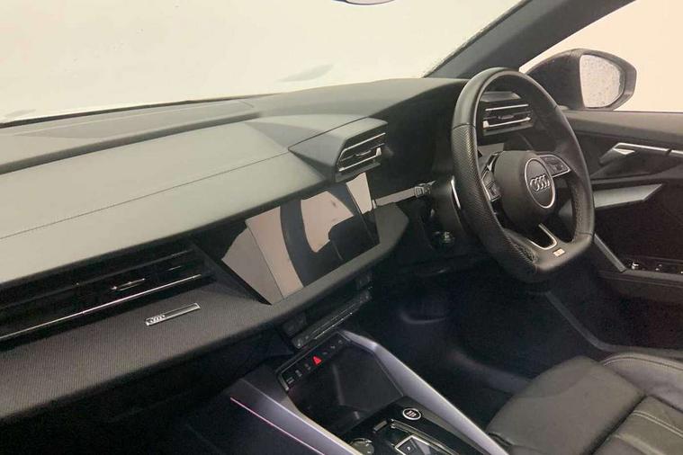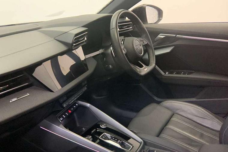 Adjustable speed limiter, Audi drive select, Audi smartphone interface with app store includes wireless Apple carplay, Android auto and Amazon alexa integration, Audi virtual cockpit plus - 12.3" full HD resolution dynamic digital instrument cluster, Automatic start/stop system with recuperation, Bluetooth interface, Camera based traffic sign recognition, Collision avoidance assistant, Cruise control, Distraction and Fatigue warning, e-Call (emergency call), Electromechanical power speed sensitive steering, Lane departure warning system, MMI Navigation Plus with high resolution 10.1" colour touch screen display, Park Assist with parking system Plus, Service indicator, Tailgate, Trip computer, Voice control system with natural language interaction, Sports suspension, Audi Phonebox light with wireless charging, Audi sound system - 10 loudspeakers including centre loudspeaker and subwoofer, DAB Digital radio, USB ports with charging function in the rear, Acoustic glass windscreen, Anthracite grey Audi rings (front and rear), Audi beam uses LEDs to project the Audi logo onto the ground as you exit your A3, Auto dimming frameless rear view mirror, Black accents front and rear bumpers, Black accents in the area of the Audi single frame grille, Black accents window trims strips, Electrically adjustable/heated/folding/auto dimming door mirrors with integrated LED indications + kerb view function for passenger side, Exterior model badging, Front electric windows, Heat insulating glass windscreen, Illuminated door sills with aluminium inserts at the front with S logo, LED 3rd brake light, LED daytime running lights, LED headlights with LED rear lights and dynamic rear indicators, Light and rain sensors, Privacy glass - dark tinted rear window, rear door and side windows, Rear electric windows, Rear side wing doors, Rear wiper, S roof spoiler, 12V socket and storage compartment in front centre console, 3 seat bench in 2nd row, 3 spoke flat bottomed leather multifunction sport steering wheel with gear shift paddles, 3-zone deluxe automatic air conditioning, 4 way electrically adjustable lumbar support for driver and front passenger, 40/20/40 split folding rear seat bench, Black cloth headlining, Front and rear centre armrest in artificial leather, Front and rear headrests, Front/rear floor mats, Heated front seats, Height and reach adjustable steering wheel, Manual boot compartment lid, Manually adjustable front seats, S badging on the steering wheel, Seat side bolsters, Single front passenger seat, Stainless steel pedals and front footrest in black, Twin leather upholstery with front sports seats S embossed logo, Aluminium interior elements pack - A3 Sportback, Multi-coloured LED interior lighting pack - A3, 3x3 point rear seat belts, Driver and front passenger airbag with passenger airbag deactivation, Electronic Stabilisation Control (ESC) including ABS, ASR and EDL, First aid kit with warning triangle and 2 safety vests, Front side airbags with head airbags and interaction airbag, Hill hold assist, Pre-sense front with pedestrian and cyclist detection, Seatbelt monitoring, Tyre pressure loss indicator, Anti theft alarm, Anti-theft wheel bolts, Electronically operated child locks, Immobiliser, Remote control central locking, Inlays in black Impressum woven textile,