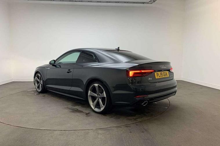 Piano black finish inlay, Non Smokers pack, 20" 5 arm rotor alloy design wheels with matt titanium finish, Tyre repair kit, Anti theft alarm system, Anti theft wheel bolts, Immobiliser, Keyless Go, Remote central locking, CD player, DAB Digital radio, Two SDXC card slots, 6 airbags - Driver, front passenger, curtain and side airbags, Electromechanical parking brake, Electronic Stabilisation Control (ESC) including ABS, ASR and EDL, Front passenger airbag deactivation, Height adjustable front seatbelts, Hill hold function, Multi-Collision braking, Pop-up bonnet for pedestrian protection, Pre sense city, Seatbelt monitoring, Tyre pressure warning, Variable restraint system, Warning triangle and first aid kit, Air inlets in titanium black with matt aluminium inlay, Auto dimming rear view mirror, Body colour bumpers, Chrome plated exhaust pipe, Electric adjustable heated door mirrors, Electric front windows, Front fog lights, High beam assistant, High gloss black door mirrors, Rain and light sensors, Rear diffuser in Twilight grey matt with honeycomb grille, S Line body styling, S line sill plates, S style high gloss black rear spoiler, Side and rear windows privacy glass, Titanium black frame and radiator grille, Titanium black front and rear air intakes, Titanium black window surround, Windscreen with acoustic glazing, 2 x USB charging port with aux input socket, 3 spoke flat bottom high multi-function leather steering wheel, 40/20/40 split folding 2 seater rear seat bench with rear centre armrest, Adjustable steering column, Black headlining, Black perforated leather gearknob, Centre console with cupholders, Contrast stitching on seats, steering wheel and gear lever gaiter, Deluxe 3 zone electronic climate control, Front centre armrest, Front head restraints, Front/rear floor mats, Gearshift paddles, Illuminated door sills, ISOFIX child seat mounting and top tether, Jack and tool kit, Luggage compartment mat, Rear headrests, S embossed logo on front sport seats, Stainless steel pedals and foot rest, 7" Colour driver information system, Audi connect, Audi drive select, Audi parking system plus with front and rear sensors, Audi smartphone interface, Automatic start-stop system with coasting functionality and efficiency programme, Bluetooth interface, Electric boot release, Electro-mechanical power steering, MMI Navigation, Service interval indicator, Voice control system,