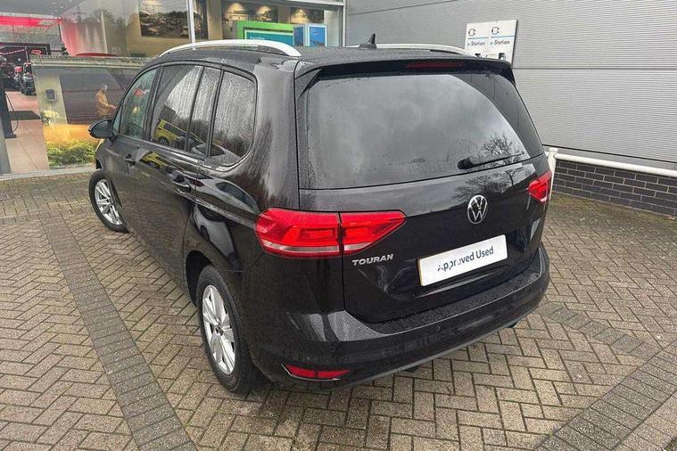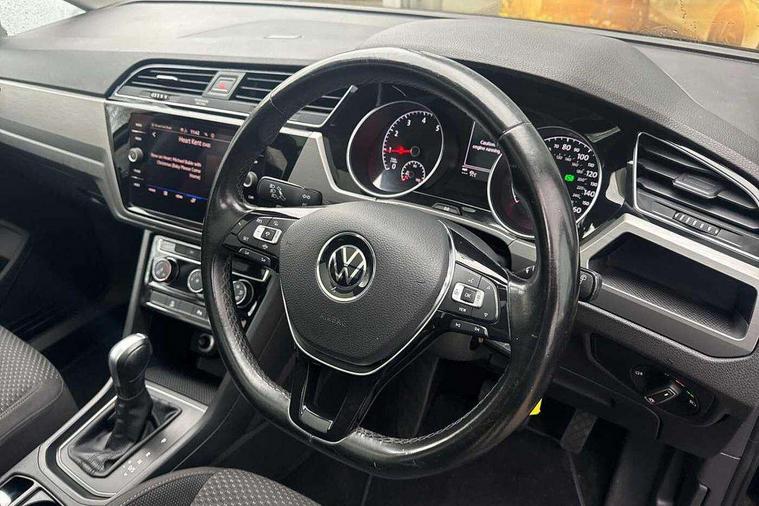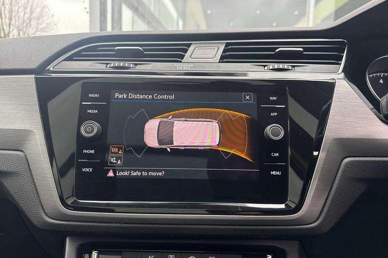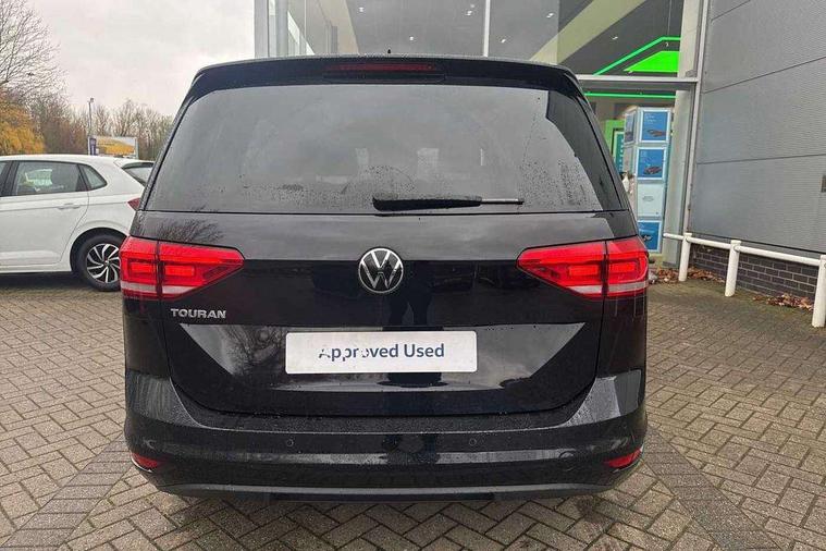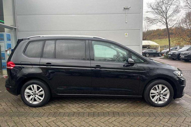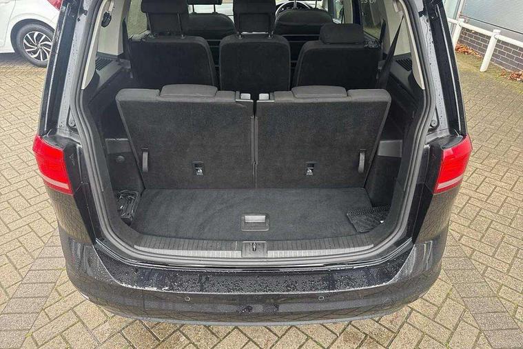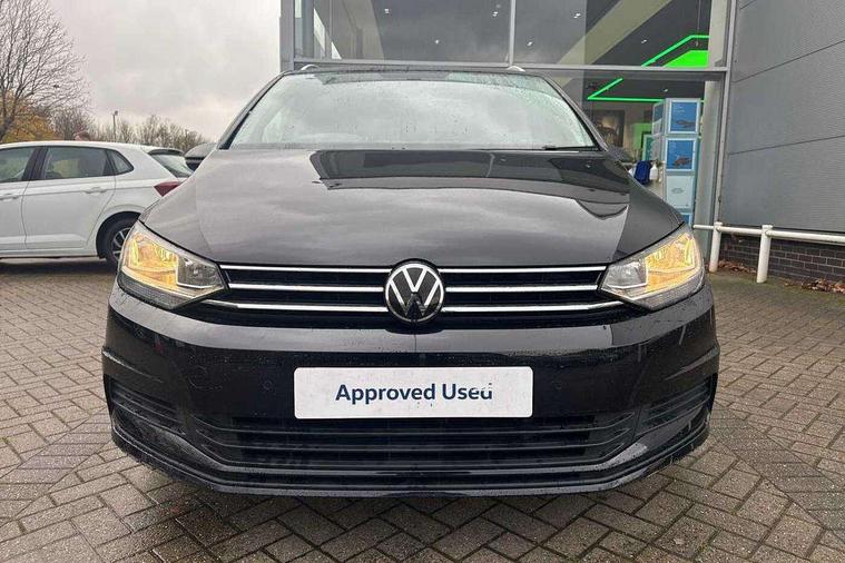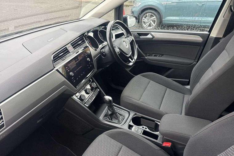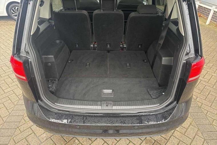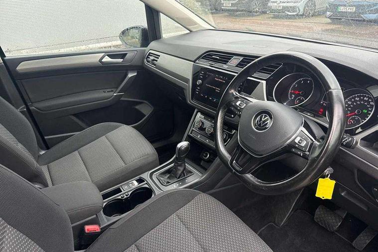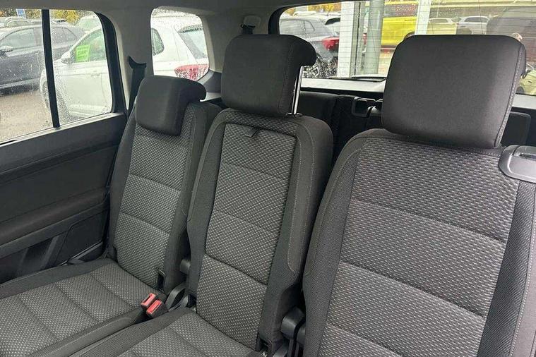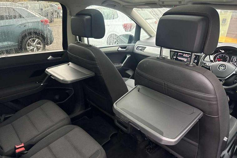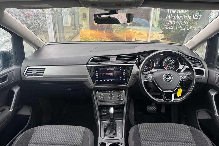 Adaptive cruise control, Audible lights on warning, Bluetooth telephone connectivity, Car information display, Driver profile selection, Electronic odometer, External temperature gauge, Misfuelling protection device, Mobile pairing with SMS function, Multi function display, Rev counter with fuel gauge, Speed limiter, Speed sensitive power steering, Stop/start system, Think blue trainer driver tips and journey analysis, Trip and service interval display, We Connect Go Dongle, Petrol Particulate Filter, XDS electronic differential lock, 4x20 watt output, 8 Speakers, Audio Connectivity System, DAB Digital radio, MP3/WMA compatability, SD card slot, Title and cover art display, USB connection, Aerial integrated into side window, Auto dimming rear view mirror/rain sensor, Automatic coming/leaving home lighting function, Black front air intake and radiator grilles, Body colour bumpers, Body colour door handles, Body colour door mirrors with integral indicators, Chrome trimmed radiator grille louvre inserts, Dusk sensor + auto driving lights, Electric heated + adjustable door mirrors, Electric, glass sliding/tilting panoramic sunroof including integrated roller blind, Front and rear electric windows, Fully galvanised body, Gloss black finish B pillar, Green tinted heat insulating glass, High level third brake light, Rear tinted glass from B-pillar backwards approx 65% tinted, Rear wash/wipe with intermittent wipe setting, Silver roof rails, Tailgate wiper- reverse gear activation, Twin chrome exhaust tailpipes, Volkswagen roundel, Windscreen wipers intermittent wipe, 12V power point for Row 2, 12V socket in luggage compartment, 2 individual fold flat 3rd row seats, 2 three point seatbelts in 3rd row, 2nd row centre armrest, 2nd row centre seat converts into table, 3 single slide/fold/removable 2nd row seats, 3 spoke steering wheel, 3x3 point seatbelts on 2nd row with height adjust on outer seats, 4 boot load lashing points, 4 way adjustable front head restraints, 5 headrests, Driver and front passenger under seat drawer, Dust/pollen filters, Foldable front passenger seat backrest, Front and rear reading lights, Front centre armrest with storage compartment, Front cupholders x 2, Front seat storage pockets, Front seatback folding tables, Height adjustable driver's seat, Height/reach adjust steering wheel, Illuminated glovebox, Illuminated vanity mirrors, Instrument lighting white adjustable panel illumination with red night time illumination, Interior light with delay, Isofix on 3rd row seats, Large storage compartment in roof console, Leatherette on rear of front seats, Low tunnel 2nd row seat, Media box in dashboard on passenger side, Multi storage in passenger/luggage areas, Multi-function centre console with storage facilities, Retractable luggage cover, Split folding rear seat backrests, Storage bins on all doors, Family Pack - Touran, 3 point height adjustable front seatbelts, Auto hold function, Automatic post collision braking system, Door open warning reflectors, Driver/Front Passenger airbags, Drivers knee airbag, EDL + ASR, Electronic parking brake, Energy recovery system, ESC with ABS, First aid kit, Front and rear (row 2) curtain airbags, Front assist including city emergency braking, Front seat side impact airbags, Front/rear disc brakes, Hill hold control, Hydraulic Brake Assist (HBA), Loose wheel warning function, Passenger airbag deactivation system, Seatbelt warning lamp and buzzer, Traction control, Two tone horn, Warning triangle, Alarm with remote central locking and interior protection, Electronic engine immobiliser, Brushed design decorative inserts, Tyre mobility system,