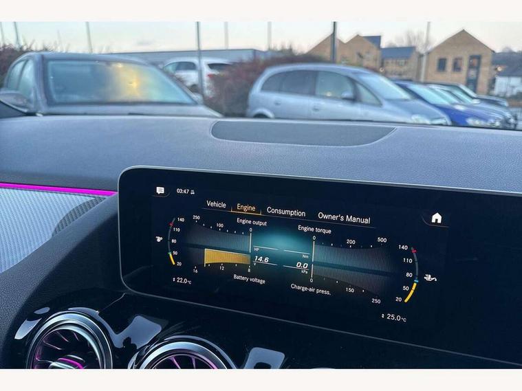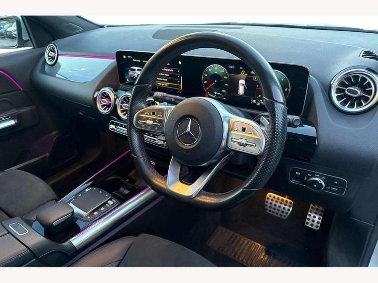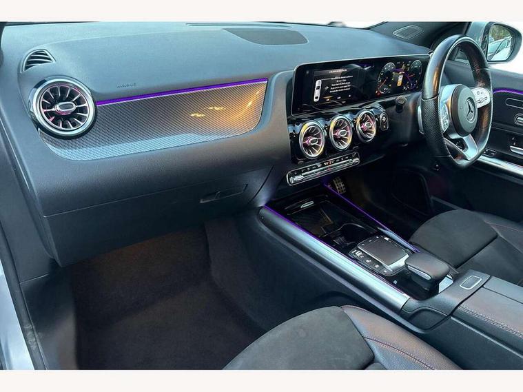 10.25 inch touchscreen media display, 10.25" Digital instrument cluster display screen, Active lane keeping assist, Attention assist, Augmented reality navigation, Direct steering, DYNAMIC SELECT with a choice of driving modes (ECO, Comfort, Sport, Sport+ and Individual), Easy-pack tailgate, ECO start/stop function, Fluid level warning indicator for fuel, oil, coolant and washer fluid, Hard-disk navigation, Hey Mercedes Voice activation, Lamp failure indicator, MBUX multimedia system with DAB digital radio and touchpad including satellite navigation, Mercedes me connect including emergency call system, accident recovery, breakdown management and maintenance, Multi function trip computer, Outside temperature gauge, Owners manual and service booklet in English, Pre-installation for Vehicle Monitoring, Pre-installation for Vehicle set up, Pre-installation of private car share, Radio aerial integrated into front and rear windshields, Service indicator (ASSYST), Smartphone integration with Apple CarPlay and Android auto, Status display for rear seat belts in instrument cluster, Traffic sign assist, Wireless charging, Lowered comfort suspension, Rear axle multi-link, 2 USB ports (type C) in rear stowage compartment and one in front of center console, Bluetooth connectivity including audio streaming, DAB Digital radio, Media interface, Mercedes-Benz advanced sound system - 225W, Adaptive brake lights, Aerial for GPS, Aluminium roof rails, AMG front and rear apron, AMG specific/dual flow exhaust pipes in chrome (non-functional), Automatic headlamp activation, Beltline strips and weather strip in chrome, Black grained claddings with chrome parts, Body colour bumpers, Body colour door mirrors, Body coloured door handles with chrome insert for keyless entry, Car wash function, Dark privacy glass from B-pillar backwards, Electric front windows, Electric rear windows, Electrically adjustable and heated door mirrors with integrated LED indicators, Heated glass rear windscreen + timer control, Heated windscreen wash system, Interior mirror with black reading lamps and frameless, LED tail lights in two piece design, LED third brake light, Matt titanium grey front and rear apron trim, Multibeam LED headlamps with adaptive highbeam assist plus, Panoramic sunroof, Pre-installation for trailer coupling, Rain sensor windscreen wipers, Rear fog lights, Roof spoiler, Single lamella raditor grille with chrome dotted diamond grille and inlay, 12V power socket in centre console, 3 spoke multifunction sports steering wheel in nappa leather with flattened bottom and perforated grip area, 40:20:40 split folding rear seats with backrest, Adjustable head restraints, Air conditioning - Two zone thermotronic luxury automatic climate control with display, Ambient lighting in front headrests, AMG floor mats with AMG lettering and stiched edging, Artico man-made leather/Microfibre Dinamica upholstery with red contrast stitching, Auto Mercedes-Benz child seat recognition sensor, Black roof lining, Brushed door pulls in silver chrome, Courtesy light in boot, Electrically adjustable front memory seats with four way lumbar support, Front centre armrest with stowage, Galvanished gear shift paddles on steering wheel, Heated front seats, Illuminated door sills, Illuminated glovebox, Interior lighting - 64 colour Ambient lighting, Leather trimmed gearknob, Luggage net on driver/front passenger seat backrest, Manually height and reach adjustable steering column, Multi-gesture touchpad control on center console, Net in front passenger footwell, Seat cushion angle adjustment, Seat cushion depth adjustment for improved seating, Sports pedals in brushed stainless steel with black rubber studs, Sports seats, Stowage compartment in centre console, Stowage compartment with retractable cover, Sunvisors with illuminated vanity mirrors, Twin front cup holders, Two outer rear seat isofix and top tether child seat fixing points, AMG body styling pack - GLA, Interior lighting with light and sight pack - GLA, Load compartment pack - GLA, Mirror pack - GLA Class, Off road engineering pack - GLA, Parking pack - GLA, 3 rear 3 point seatbelts, ABS with Brake Assist, Active bonnet pedestrain safety measure which detects an impact and raises bonnet by 65mm, Active brake assist includes forward collision warning system with autonomous braking, Adaptive brake assist with hold function and hill start assist, Bonnet with power domes, Brake pad wear warning indicator, Childproof locks manually operated for rear doors and electrically operated for rear power windows, Crash responsive emergency lighting, Driver and passenger head and side airbags, Drivers knee airbag, Dual stage driver/passenger airbags, Electronic parking brake, ESP curve dynamic assist, ESP with ASR, Front and rear seatbelt reminder, Front brake callipers with Mercedes Benz logo lettering on front, Front passenger seat occupancy sensor, Internally ventilated brakes with perforated brake discs at the front, Tyre pressure monitoring system, Warning triangle and first aid kit, Window airbags, Alarm system with immobiliser and interior protection -Thatcham category 1, Keyless go lock/unlock, Keyless Go starting function, Remote central locking and crash sensor with emergency opening function, Vehicle key with decorative surround in chrome, Carbon structure trim, Chrome air vent surrounds, 19" AMG 5 twin spoke light alloy wheels aerodynamically optimised painted in tantalite grey with a high sheen finish, Summer tyres, Tirefit tyre sealant kit,