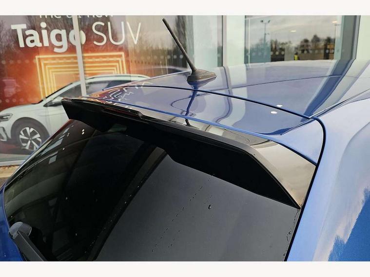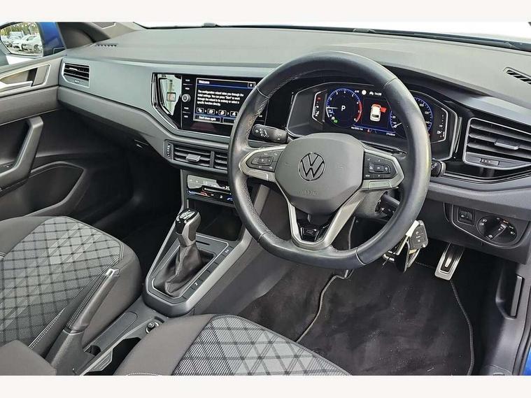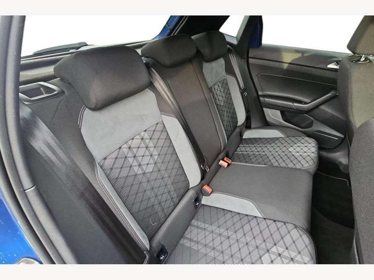 Adaptive cruise control with follow-to-stop and speed limiter, Bluetooth mobile phone interface, Digital Cockpit Pro with 10.25" Display, Driver alert system, Dynamic road sign display, Emergency call service, Power assisted speed sensitive steering, Preparation for We connect and We connect plus, Speedo and rev counter, electronic odometer, trip, service interval display and fuel gauge, Standard rear axle, Travel Assist - Lane keeping system and traffic jam assist, Travel assist including emergency assist, Trip computer, Warning signal and warning light for front and rear seatbelts not fastened, Washer fluid level indicator, Wireless app connect, Front wheel drive, Rear shock absorpion, Start-stop system with battery regeneration (recuperation - energy recovery during braking), DAB Digital radio, Diversity antenna for FM reception, Front and rear 6 speakers, Body colour bumpers, Body colour door handles, Body colour door mirrors, Electric front windows, Front scuff plates with R-Line logo, Heat insulating darkened glass in side and rear windows, Heat insulating glass windscreen, Power folding adjustable/heated exterior mirrors and front passenger exterior mirror lowering function, Rear electric windows, Rear fog light, Rear side wing doors, Rear tinted glass from B-pillar backwards approx 65% tinted, Rear windscreen washer and wiper with interval delay, Third brake light, 12V power socket in centre console, 2 USB-C ports in the front, 2 USB-C charging sockets on the center console in the rear, 3 rear head restraints, 60/40 split folding rear seat and rear seat bench not split, Air care climatronic air conditoning system with active combination filter and 2-zone temperature control, Black roof lining, Ceramique headliner, Chrome plated radiator grille inserts, air vent surrounds and light switch surrounds, Door and side trim panel, Driver and front passenger seat height adjustment, Driver/passenger sunvisors with illuminated vanity mirrors, Front + rear carpet mats, Front centre armrest, Front footwell illumination, Front seat backrest storage pockets, Front sports comfort seats, Handbrake lever handle in leather, Isofix child seat preparation easy-fit (for two outer rear seats, and front passenger seat) compatible with I-size, Karoso artvelours cloth upholstery, Leather trimmed gear knob, LED interior light with switch off delay and dimmer, 2 reading lights front and rear, Luggage compartment cover, Luggage compartment floor, Luggage compartment lighting, Lumbar adjustment for front seats, Single front passenger seat, Stainless steel pedals, Standard pedal cluster, Three spoke leather wrapped multifunction steering wheel with shifting paddles, Light and sight pack - Polo R-Line/Black Edition, 3 point height adj front seatbelts + pretensioners, 3x3 point rear seatbelts, ABS, Driver and front passenger airbag with front passenger airbag deactivation, Drivers and front passengers safety optimised head restraints, ESC (Electronic stability control) + EDL (Electronic Differntial lock) and ASR (Traction control), Extended and predictive pedestrian/ cyclist protection, Front curtain and side airbags with center airbag, Front/rear disc brakes, Hill hold control, Manual child lock in rear doors, Single tone horn, Tyre pressure loss indicator, Alarm with interior protection, Anti-theft alarm system with interior monitoring, backup horn, and towing protection, Anti-theft wheel bolts, Electronic engine immobiliser, Chrome applications on rotary light, mirror adjustment, window regulator switches, outlet with frame in black, Dark grey anodised matt decorative inserts in dash and front door panels, Low rolling resistance tyres,