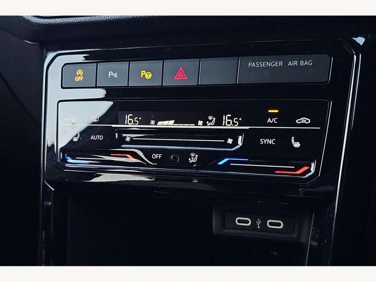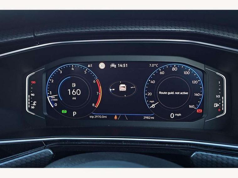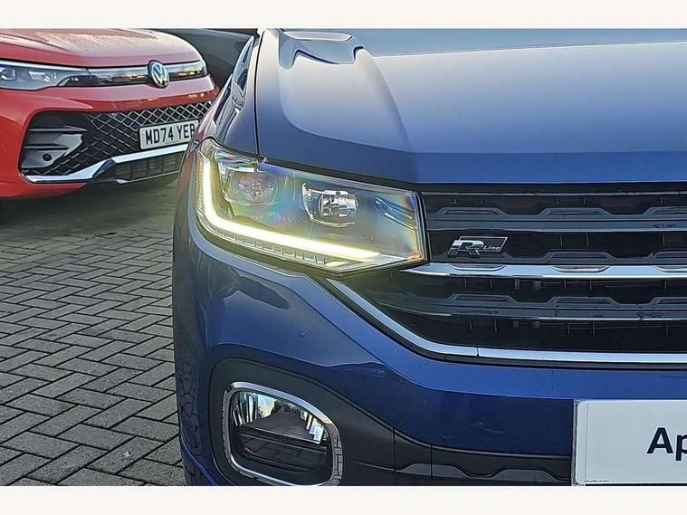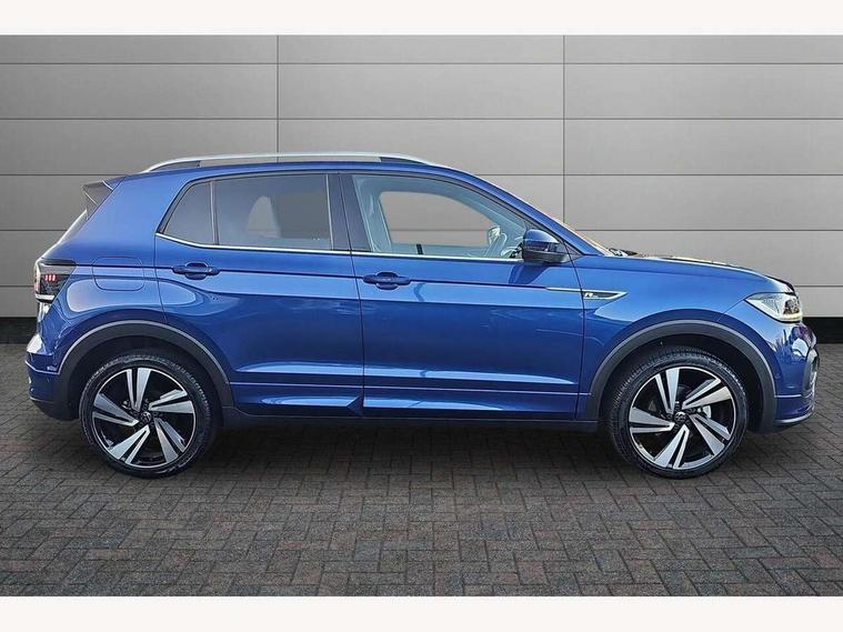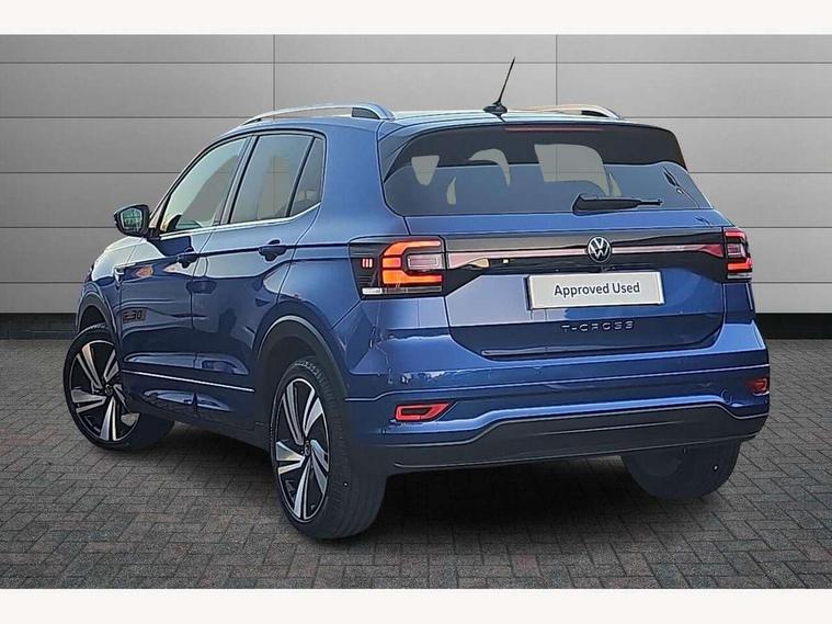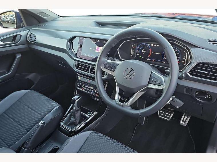 'Lights On' Reminder warning buzzer, 2D/3D map view, Active info display - 10.25" High resolution TFT dash display screen, Adaptive cruise control including front assist, forward collision warning, autonomous emergency braking, speed limiter, Blind spot monitoring, Bluetooth telephone and audio connection for compatible devices, Car information display, Driver alert system, eCall emergency call system, Lane assist, Low washer fluid warning light, Multifunction computer with visual gear change recommendation for fuel consumption, Operating permit alteration, Power assisted speed sensitive steering, Speed limit display, Speedo, rev counter, electronic odometer, trip, service interval display, exterior temperature and fuel gauge, Stop/start system, Tailgate, Warning sound and light for doors and tailgate open, Warning sound and light for front seatbelts unfastened, We connect plus preparation, Wireless Car net app connect with Apple CarPlay, combined functionality of Apple CarPlay/Android Auto and MirrorLink, Battery regeneration during braking, Misfuel prevention device, 2x USB connection with USB charging sockets and in rear centre console, DAB Digital radio receiver, Diversity antenna for FM reception, Multi device interface (MDI) with USB connection, Music playback - MP3, WMA and AAC files, Premium USB cable for Apple or Android smartphone compatibility, Simultaneous pairing of 2 compatible mobile devices, SMS Functionality, Three route options - Fast, Short, Eco, Title and cover art display, Automatic hazard lights activation under emergency braking, Body colour door handles, Body colour door mirrors with integrated indicators, Body colour rear roof spoiler, Body coloured bumpers, Dusk sensor + automatic driving lights, Electrically foldable, adjustable and heated door mirrors with reverse activated kerb view adjustment on passenger's side, Front and rear electric windows, Front fog lights with static cornering function, Galvanised body, Heated rear window, LED third brake light, Lower door sills and door pillars in black, Radiator grille with chrome trim and chrome bezel front fog lamp, Rear fog light on one side, reversing light on both sides, Rear lights incorporating LED technology, Rear side wing doors, Rear tinted glass 65% approx light absorbing from B pillar backwards, Rear window aerial, Rear windscreen washer and wiper with interval delay, Reflectors in all doors, Silver roof rails, Stainless steel door sill protection, Tailgate with integrated roof spoiler, Unique R Line badging, Windscreen wipers/ intermittent wipe + 4 position delay, 12V Accessory socket in centre console, 2 Front and rear reading lights incorporating LED technology, 2 Zone electronic climate control with automatic air recirculation, 3 rear head restraints and 3 rear three point seat belts with ECE label, 3 seat bench in 2nd row, 60/40 split folding rear seat backrest, Ambient lighting and sourround lighting, Black headlining, Branded points of interest, Brushed stainless steel pedals, Carbon flag cloth upholstery, Drawer under drivers seat, Driver and front passenger sunvisor with vanity mirror, Driver's sunvisor with ticket holder, Dust and pollen filter, Front and rear carpet mats with contrast stitching, Front centre armrest with storage compartment, Front footwell illumination, Front seat back storage pockets, Front seat R Line logo with rear seat backrest, Front sports seat with height and lumbar adjustment, Glovebox, Heating and fresh air system with 4 stage blower, Height/reach adjust steering wheel, Instrument lighting white adjustable panel illumination, Interior light with delay, Isofix child seat preparation for 2 rear child seats, Leather trimmed three spoke multifunction steering wheel with contrast stitching and aluminium inserts with R Line logo, Luggage compartment cover, Luggage compartment lighting, Moveable and foldable Rear bench seat, Scuff plates in door apertures, Steering wheel paddle shift, Storage compartment in drivers and front passengers door, R Line styling pack - T-cross, 3-point seat belts in front with electric tensioner + height adjustment, Anti-lock Braking System (ABS) with Hydraulic Brake Assist (HBA), Automatic post collision braking system, Driver and front passenger safety-optimised head restraints, Drivers and Front Passengers airbags with front passengers airbag deactivation switch, ESC with EDL, ASR, EDTC and trailer stabilisation function, Front and rear curtain airbags, Front seat side impact airbags, Hill start assist, Pre crash preventive occupant protection, Proactive passenger protection system in combination with front assist, Rear door child safety locks, Rigid safety cell with front and rear crumple zones, Single torn horn, Tyre pressure loss indicator, Volkswagen roadside assistance, Alarm with interior protection and deactivation via infotainment system, Child security locks in rear doors, Electronic engine immobiliser, Remote tailgate unlocking using key fob, Race decorative inserts in dash and doors, 18" Nevada black alloy wheels, Breakdown kit,