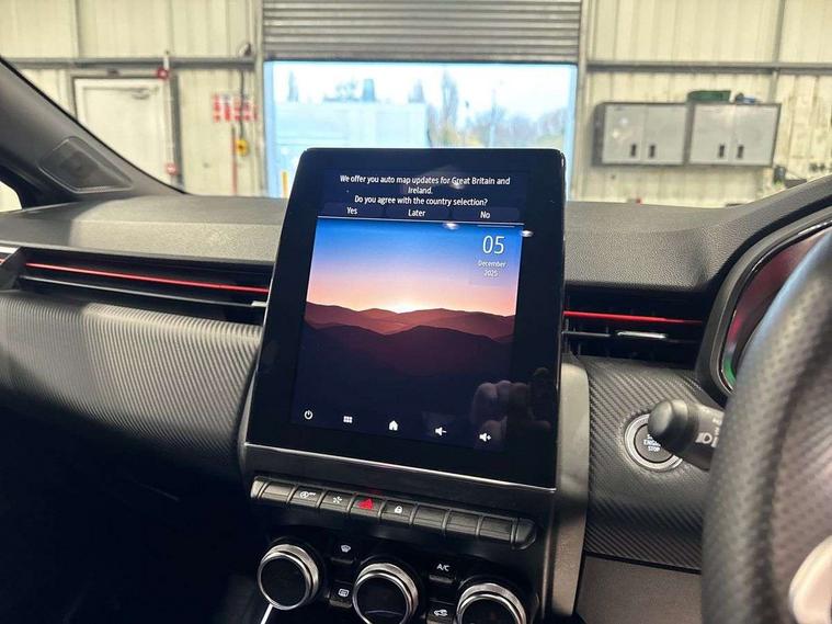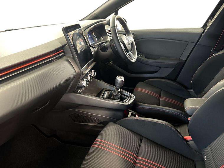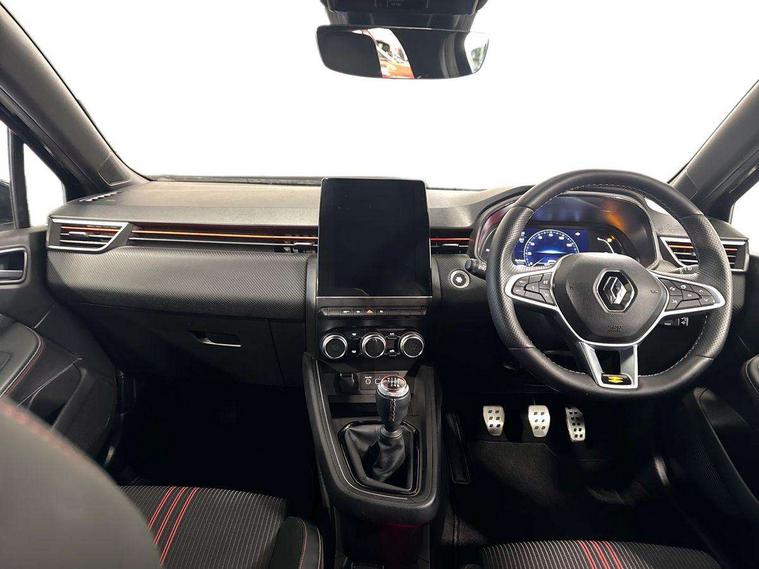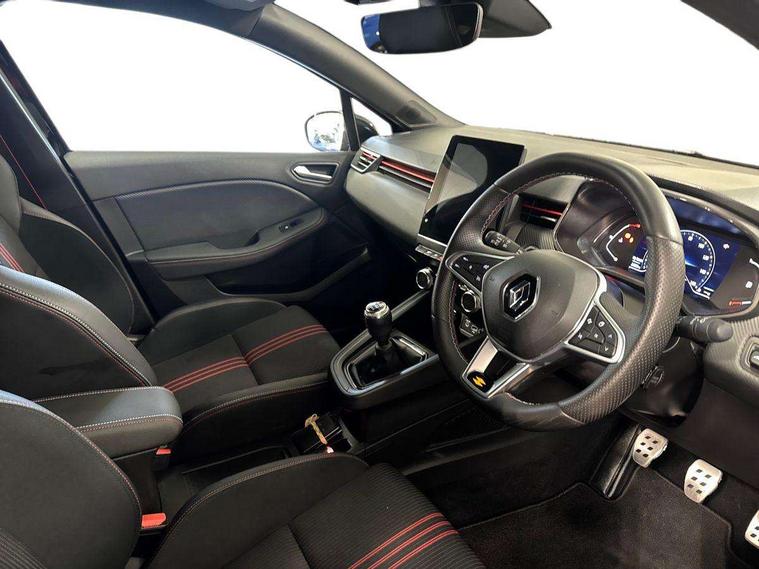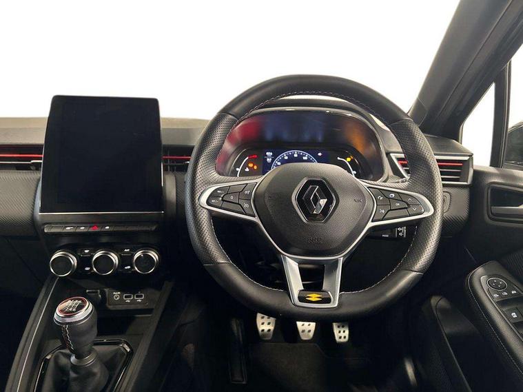 7" TFT colour instrumental display, Cruise control + speed limiter, E-call, Easy link navigation with 9.3" touchscreen+4x20W amplifier+FM DAB double tuner, sound auditorium, 2xUSB/1xjack/bluetooth, smartphone integration plus, Eco mode driving function, Gear change indicator, Lane departure warning system, Lane keep assist, Over speed prevention, Rear parking sensors, Traffic sign recognition, Trip computer, Variable assistance electric PAS, Auto light control and rain sensing wiper, Automatic headlights, Body colour door handles, Body colour door mirrors, Body coloured bumpers, Body coloured rear spoiler, Chrome exhaust tailpipe, Chrome front grille, Chrome window surround, Drivers one touch window with anti-pinch feature, Electric adjustable/heated/folding door mirrors, Electric front windows, Electric rear windows, Exterior rear hidden door handles, Extra tinted glass on rear windows + tailgate, Frameless auto dimming interior rear view mirror, Full C-shape LED front and rear signature lighting, Full LED front and rear headlamps integrating daytime running lights at the front and rear, Gun Metal insert on lower side doors with Clio embossing, LED front fog lights, LED Roof light, Rear fog lights, Rear side wing doors, Rear wiper, RS Line badging, RS Line exterior styling, RS Line side marker chrome, RS Line sports front bumper, RS Line sports lower grill, RS marker chrome gun metal grey sport rear bumper with chrome oval exhaust pipe, Shark fin antenna, Variable speed on front windscreen wipers, 12V Accessory socket, 3 rear height adjustable headrests, 3 seat bench in 2nd row, 6.2L front glovebox, 60/40 split rear seats, Air recirculation control, Auto climate control, Black headlining, Dark roof lining and aluminimum pedal set, Driver's seat height adjustment, Front cupholders, Front decor strip in red, Front door storage bin, Height adjustable front headrests, Height adjustable passenger seat, Height/reach adjust steering wheel, Isofix system on outer rear seats, Multi function steering wheel, Pollen filter, RS branded top grain leather steering wheel, RS Line cloth upholstery, RS Line Interior trim including airvent stripe and gearshifter in red, Single front passenger seat, System for Restraint and Protection SRP-front seats, Parking Pack - Clio, Storage pack - Clio, 3 point seatbelts on all rear seats, ABS+EBD+Brake assist, Automatic emergency braking system, Curtain airbags, Distance warning alert, Driver and passenger front and side airbag deactivation, Driver/Front Passenger airbags, ESC - Electronic Stability Control + traction control, Front side airbags(head+thorax), Height adjustable driver's seatbelt, Hill start assist, Seatbelt warning, Tyre pressure warning, Central door locking, Deadlocking system, Hands free key card with push button, start and stop function, Locking fuel filler cap, RAID (Renault Anti-Intruder Device) with automatic door locking, Rear side wing door and window child locking function (front driver door control panel), Remote central locking with thatcham approved immobiliser, Grey dashboard trim, 17" RS diamond cut alloy wheels,