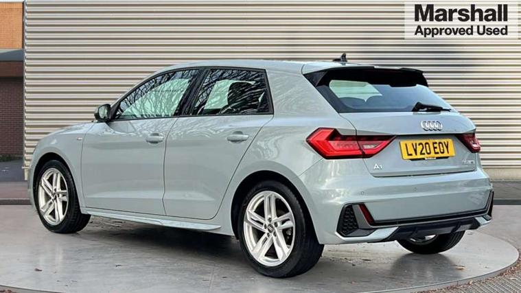 10.25" Digital instrument cluster display classis style instrument dials + speed, odometer, time, outside temperature, telephone menu + fuel level warning, Audi connect safety emergency and service including E-call, Audi drive select - power steering assistance + engine, Audi smartphone interface with connect compatible smartphone via USB directly MMI display + Nav, music, third party apps controlled via MMI controller, Automatic start/stop system, Bluetooth interface, Cruise control, Driver's information system, Electromechanical power steering, Lane departure warning system, Rear parking sensor, Service interval indicator, Speed limiter, Voice control system, Washer fluid level indicator, Sports suspension, 1 x SDXC card reader, 1 x USB type C and 1 USB type A charging points, DAB Digital radio, MMI radio plus with 8.8" colour MMI display screen and MMI touch, Auto dimming rear view mirror, Body coloured door mirrors, Door sills with aluminium inlays and S Line logo, Electric front and rear windows, Electrically adjustable, heated, folding door mirrors with integrated LED side indicator, Front side air inlets in grained matt black and C frame in titanium black, Heat insulating glass windscreen and side windows, Heated rear windscreen, LED headlights with LED rear lights + dynamic rear indicators + headlight adjustment and high beam, turning light + LED daytime running lights, Radiator grille and rear diffuser in matt titanium black, Radiator protective grille frame in matt aluminium silver, Rain and light sensors, Rear fog lights, Rear wiper, S line badges on front wings, Side front spoiler lips in grained matt black, 12V socket in centre console with two cup holders, 3 rear seats with headrests, 40:60 Split folding rear seat or folded fully, Black cloth headlining, Driver and passenger seat with manual height adjust with forward and backwards adjustment, Front and rear black floor mats with contrast stitching in fine silver, Front head restraints, Height and reach adjustable steering wheel, ISOFIX child seat mounting for front passenger and outer rear seats including top tether attachment point of outer rear seats, Leather gear knob with aluminium trim, Luggage compartment light with front and rear reading lights, Manually adjustable lumbar support in front seats, Stainless steel pedals, LED interior lighting pack - A1, Luggage compartment pack - A1, S line exterior styling pack - A1 Sportback, 3x3 point rear seatbelts, Audi pre-sense front with pedestrain and cyclist recognition, Brake assist function, Driver and front passenger airbag with front side and head airbags, Electronic Stability Control including ABS, EBD, ASR and EDL, Front and rear seatbelt reminder, Front passenger airbag deactivation switch, Hill hold assist, Seatbelt height adjustment for front seats, Seatbelt monitoring, Tyre pressure warning light, Warning triangle and first aid kit, Anti theft alarm, Anti theft wheel bolts and loose wheel warning, Immobiliser, Remote central locking with 2 foldaway keys, Aluminium trim for control switches, air vents and digital instrument cluster, Silver grey inlays polygon structure in diamond paint finish, Structured grey accent areas including air vents, door handle recesses and centre console in quartz paint finish,