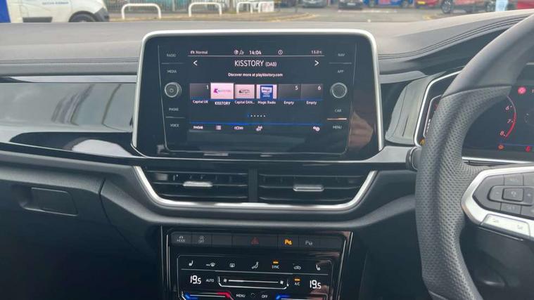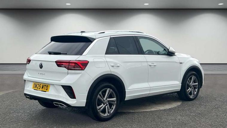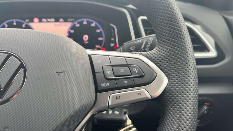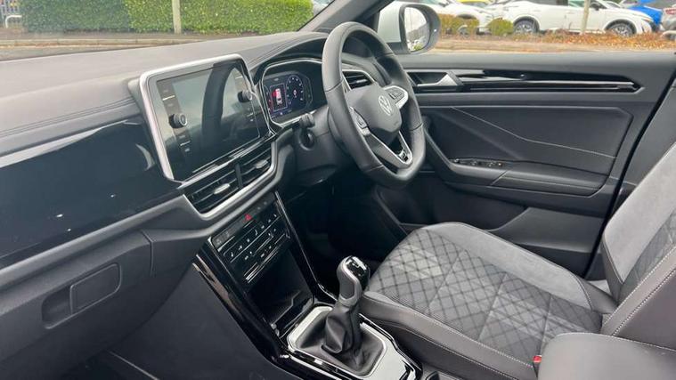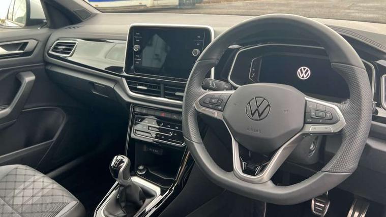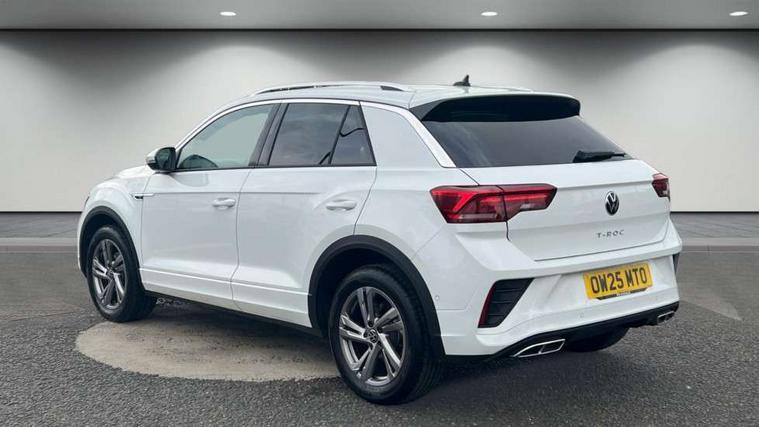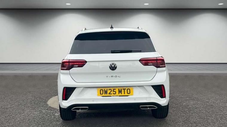 10.25" Digital cockpit pro, Advanced driver attention and drowsiness monitor, Emergency call service, Lane keeping system Lane Assist, Mobile phone interface, Modified key software - reduce switch off time for key status change to Long no motion, Online services, Park assist including front and rear parking sensors, Service interval indicator, Tailgate/trunk lid release from outside, Think blue trainer driver tips and journey analysis, Warning sound and light for front seatbelts unfastened, Wireless app connect, Battery regeneration during braking, Start/stop function with battery regeneration, DAB Digital radio, Diversity antenna for FM reception, Front and rear 6 speakers, Music playback - MP3, WMA and AAC files, Premium USB cable in choice of either Apple or Android smartphone compatibility, SD card slot, Simultaneous pairing of 2 compatible mobile devices, Title and cover art display, We Connect and We Connect Plus functionality, Auto dimming interior rear view mirror, Automatic hazard lights activation under emergency braking, Automatic headlight control with LED separate daytime running lights with coming/leaving home function, Body coloured exterior mirror housings and door handles, Electrically adjustable and heated door mirrors, Extended roof spoiler, Exterior mirrors aspherical on driver side, convex on front passenger side, External USB type C socket and charging sockets, Front windscreen wiper with intermittent wipe and 4 position delay, Heated rear window, LED 3rd brake light, LED rear combination lamps, LED rear number plate lights, Power windows with comfort operation and circuit breaker, Privacy glass for rear side windows and rear window, R-Line design body coloured bumpers, Rain sensor, Rear exhaust tailpipe, Rear fog light on one side and reversing lights on both sides, Rear side wing doors, Rear wash/wipe with intermittent wipe setting, Remote electrically foldable door mirrors, puddle lights and reverse activated passenger's door mirror, 12V power socket in centre console, 3 rear head restraints, 3 seat bench in 2nd row, 4 load lashing points in luggage compartment, Air care climatronic air conditoning system with active combination filter and 2-zone temperature control, Black roof lining, Chrome plated decorative trims, Chrome plated radiator grille inserts, air vent surrounds and light switch surrounds, Door and side trim panel with leatherette insert, Front + rear carpet mats, Front centre armrest, Front cupholders x 2, Front footwell illumination, Front reading light, Front scuff plates with R Line logo, Front seat back storage pockets, Glove compartment door with light, Instrument lighting, white adjustable panel illumination, Interior ambient lighting and surround lighting, Interior light delay, Isofix child seat preparation, Leather gearshift handle, Load-through provision with cup holder when folded down ('Unsplit rear seat bench, split folding backrest, with centre armrest), Luggage compartment lighting, Single front passenger seat, Stainless steel pedals, Storage compartment in left and right luggage area, Storage compartment in rear doors, Storage compartments in driver and front passenger doors, Sunvisors with illuminated vanity mirrors, Variable boot floor, height adjustable and removable, Driver assistance pack without proactive passenger protection - T-Roc, 3 point height adj front seatbelts + pretensioners, 3 point seatbelts in outer rear with ECE label, ABS, Child locks on rear doors, City emergency braking and pedestrian monitoring, Driver and front passenger airbag with front passenger airbag deactivation, Driver and front passenger safety-optimised head restraints, Drivers seatbelt reminder, Electronic parking brake, Electronic Stability Control (ESC) inc EDL (Electronic Differential Lock) and ASR (Traction Control), Front and rear passengers curtain airbag system including front side airbags, Hill start assist, Predictive pedestrian protection, Rear disc brakes, Two tone horn, Tyre pressure loss indicator, Volkswagen roadside assistance, Piano black decorative inserts in dashboard and front door trim panels, Trims for alloy wheels,