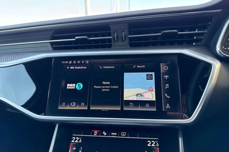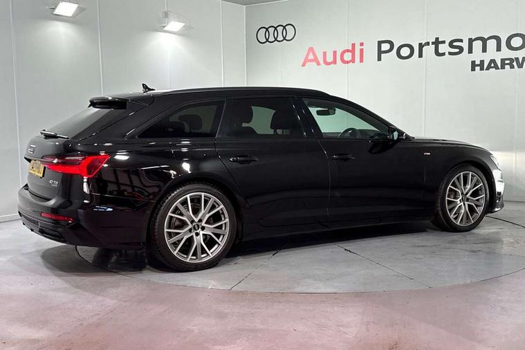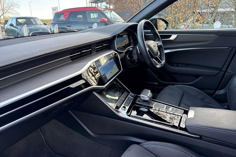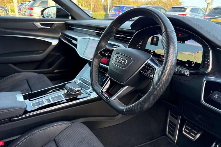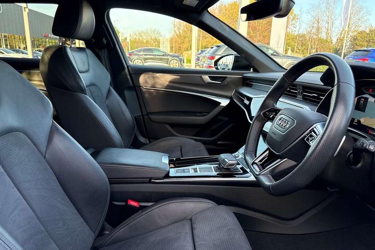 7" high resolution colour driver information display system, Audi connect safety and service (e-call), Audi connect with Amazon Alexa Integration, Audi drive select, Audi smartphone interface includes wireless Apple carplay/Android Auto, Automatic start/stop system with coasting functionality, Bluetooth interface, Lane departure warning system, Power operated tailgate, Progressive steering, Service interval indicator, Voice control system, 12V Mild hybrid, 24 litre AdBlue tank, Diesel particulate filter, Quattro on demand, Sports suspension, Audi front music interface, Auxiliary input socket, DAB Digital radio, USB connection, Black roof rails, Electric front/rear windows, Frameless auto dimming interior rear view mirror, Front intermittent wipers, Gloss black highlights on the exterior area of the Audi Single frame, Gloss black highlights on the front and rear bumpers, Gloss black highlights on the radiator grille, Gloss black highlights on the side windows trim strips, Headlight washers, Heat insulating glass in side and rear windows, Heat insulating glass in windshield, LED signature front daytime running light, LED third brake light, Matrix LED headlights, Matt black rear diffuser with diffuser strip and tailpipes in chrome, Matt black side air intake grille with inlay in matt aluminium, Privacy glass, Rain and light sensors, Rear roof spoiler, Rear side wing doors, Rear wiper, Signature rear LED light design, 2 zone deluxe electronic climate control, 4 way electric lumbar support for driver and front passenger, 40/20/40 split folding 3 rear seat bench in 3 parts with rear centre armrest, Black cloth headlining, Black front and rear carpet floor mat, Black steering wheel insert, Electrically adjustable front seats with driver memory, Front centre armrest, Front head restraints, Heated front seats, Height/reach adjust steering wheel, Illuminated door sill trims with S logo, Illuminated sun visors with vanity mirrors, ISOFIX child seat mounting and Top Tether with front passenger airbag deactivation, Leather gear knob, Luggage compartment system, Rear headrests, Single front passenger seat, Stainless steel pedals and foot rest, Comfort and sound pack - A6, Non smoking pack - A6, Technology pack - A6, 3 point seatbelts on all seats, Airbags - Front side, front and rear including head, Audi pre-sense front, Black seatbelts, EBD - Electronic brakeforce distribution, Electromechanical parking brake, Electronic Stability Control (ESC) including ABS, ASR and EDL, Extended pedestrian protection measures, Manual child proof rear door locks, Seatbelt monitoring, Tyre pressure warning light, Warning triangle and first aid kit, Anti theft alarm with tow away protection, Anti-theft wheel bolts and wheel loosening detection, Immobiliser, Remote central locking, Carbon twill inlays, 20" 5 V spoke star design Audi sport cast aluminium alloy wheels in matt grey look,