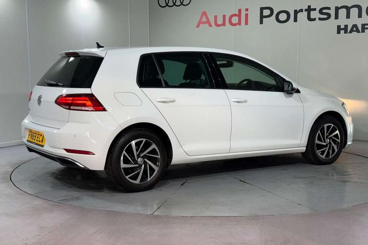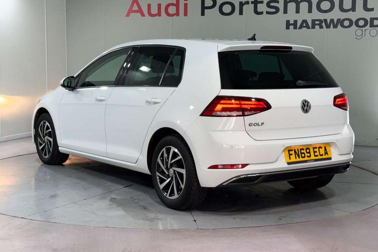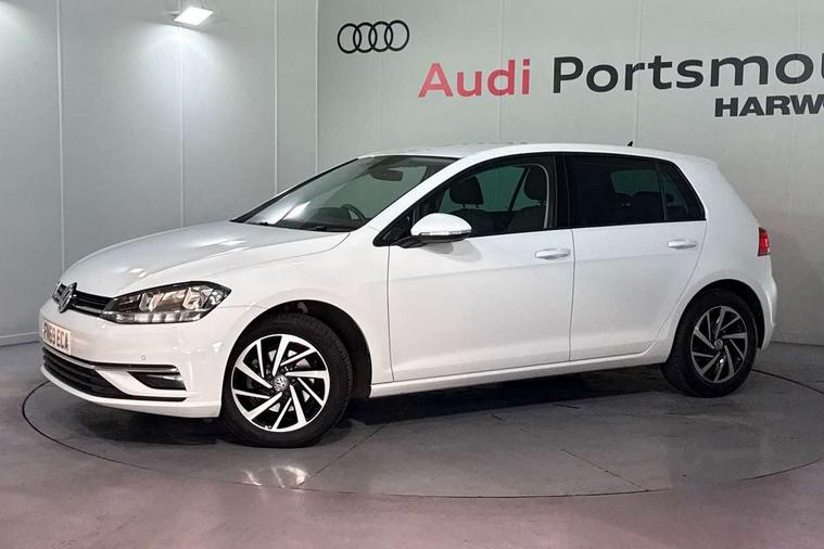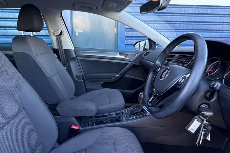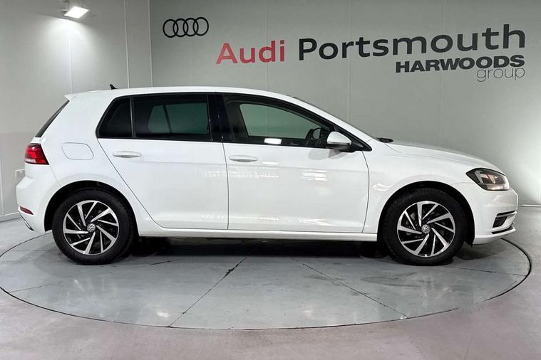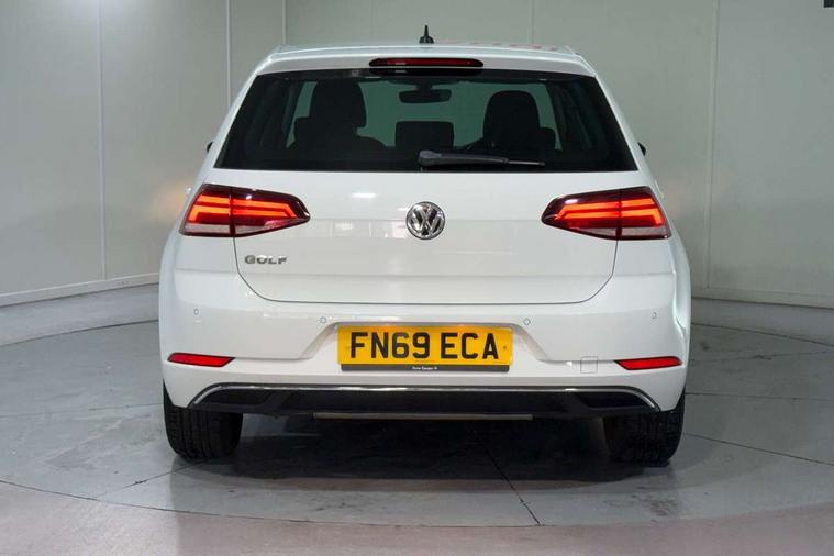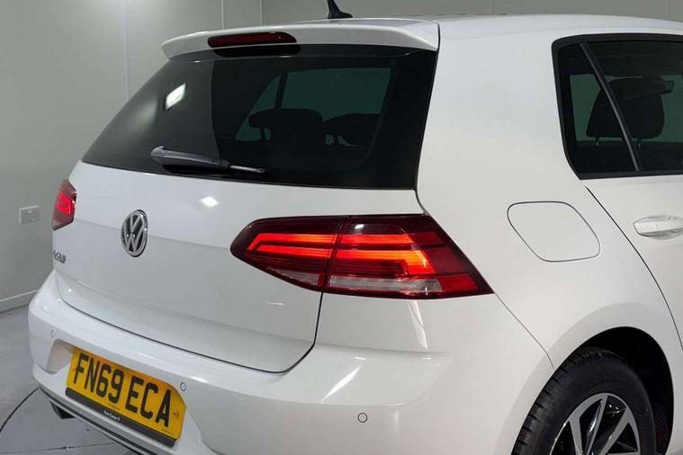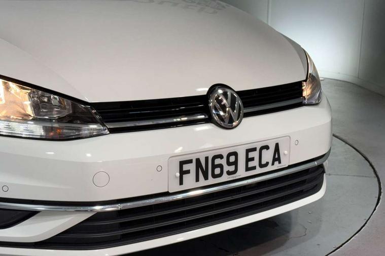 'Lights On' Reminder warning buzzer, ACC - Adaptive cruise control with front assist, forward collision warning, distance monitoring, city emergency brake and speed limiter, Bluetooth telephone and audio connection for compatible devices, Brake pad wear indicator warning light, Driver alert system, Driving Mode Selection with four preset modes - Eco, normal, sport or individual modes, Instrument cluster in white, Multifunction computer with visual gear change recommendation for fuel consumption, Power assisted speed sensitive electro-mechanical steering, Push tank flap, Speed limit display, Speedo, rev counter, electronic odometer, trip, service interval display, exterior temperature and fuel gauge, Stop/start system, Think blue trainer driver tips and journey analysis, Warning buzzer and light for front seatbelts unfastened, We Connect Go Dongle, Battery regeneration during braking, XDS electronic differential lock, Composition media system, DAB Digital radio receiver, Driver Personalisation profile selection, MP3/WMA compatability, Multi device interface (MDI) with USB connection, Personalisation 1.1 profile for media, Premium USB cable in choice of either Apple or Android smartphone compatibility, SMS Functionality, Title and cover art display, 4 X 20W output, USB connection and socket, USB and SD card connectivity, Auto dimming rear view mirror, Black front air intake and radiator grille with chrome insert, Black rear diffuser, Body colour bumpers, Body colour door handles, Body colour door mirrors with integrated indicators, Dusk sensor + automatic driving lights, Electric front windows, Electric rear windows, Electrically adjustable and heated door mirrors, Fully galvanised body, Heated rear windscreen, Hidden exhaust pipe, High level 3rd brake light incorporating LED Technology, LED front fog lights with static cornering light function, Range adjustable headlights via infotainment system with LED daytime running lights, Rear fog lamp, Rear number plate lights incorporating LED technology, Rear tinted glass 65% light absorbing from B pillar backwards, Rear window aerial, Rear window wash/wipe with intermittent wipe, Reflectors in all doors, Remote electrically foldable door mirrors, door mirror puddle lights and reverse activated kerb-view adjustment on passengers door mirror, Tailgate with integrated rear roof spoiler, Windscreen wipers/ intermittent wipe + 4 position delay, 12V socket in luggage compartment, 3 rear headrests, 4 load lashing points in luggage compartment, 60/40 split folding rear seat backrest, Auto fold down lever in rear seat backrest, Bag hook in luggage compartment x 2, Black decorative sleeve on gear handles, Cooled glovebox, Cover for storage compartment in centre, Cupholder cover, Dust/pollen filter, Front and rear reading lights X 2, Front centre armrest with storage compartment and two rear air vents, Front seat back storage pockets, Grab handles front x 2, rear x 2 with integrated coat hooks, Height and reach adjustable steering wheel, Illuminated vanity mirrors, Instrument lighting white adjustable panel illumination, Interior light delay, Isofix preparation for 2 rear child seats, Load through provision with rear centre armrest and cupholders x2, Luggage compartment lighting, Overhead storage box, Passenger underseat drawer, Pearl grey headlining, Storage box in luggage compartment, Storage compartment in roof console with cover, Storage compartments in centre console, Storage compartments in front doors, Storage compartments in rear doors, Stowable luggage compartment cover, Sun visors, Variable boot floor, height adjustable and removable, Convenience Pack - Golf, Light and Sight pack - Golf, Mirror pack - Golf, 3 rear three point seatbelts, Airbags - Driver's and front passenger's, curtain airbag, Driver's knee, front side impact and passenger's airbag deactivation switch, Anti-lock Braking System (ABS) with Hydraulic Brake Assist (HBA), Automatic post collision braking system, Child locks on rear doors, Driver/Passenger optimised head restraints, Electronic parking brake with auto hold, Electronic stability control (ESC) including Electronic differential lock (EDL) and ASR (Traction control) with deactivation via infotainment system, Front ventilated disc brakes and rear disc brakes, Pre crash preventive occupant protection, Three point height adjustable front seatbelts with tensioners, Tyre pressure loss indicator, Alarm with interior protection and deactivation via infotainment system, Electronic engine immobiliser, Brushed dark silver decorative inserts in dash and door panels, Chrome plated air vent surround, Chrome-plated light switch surround, Polar night black decorative inserts in centre console, Steel space saver spare wheel,