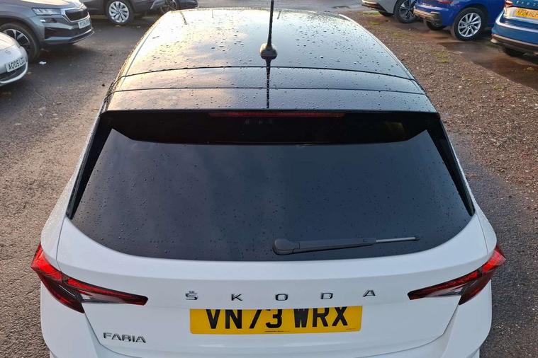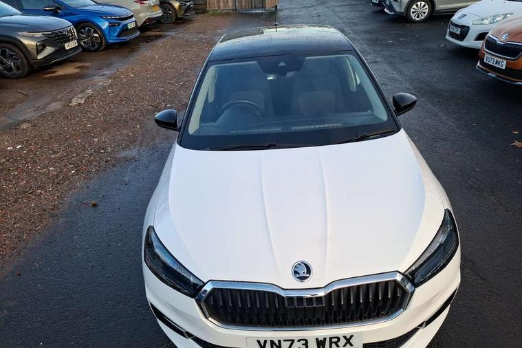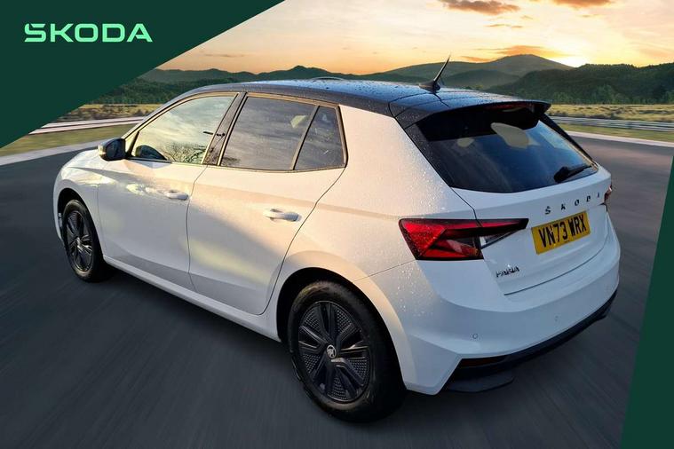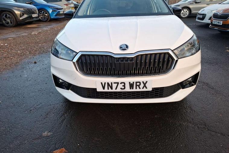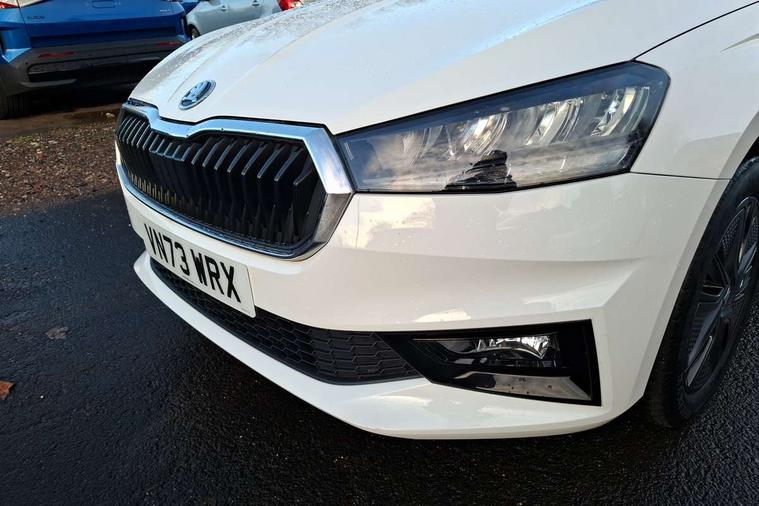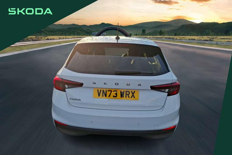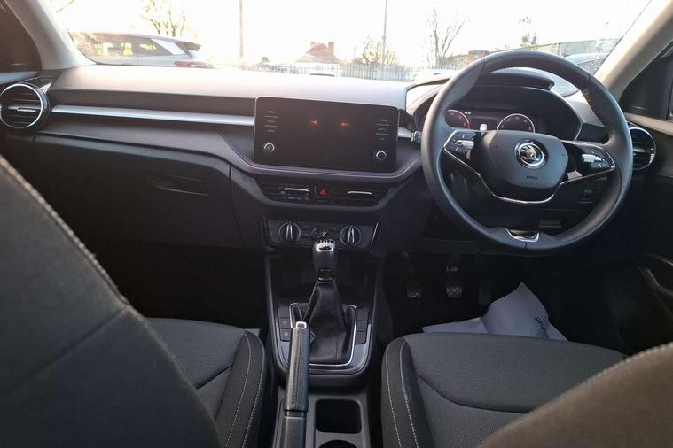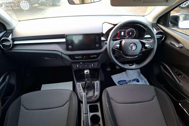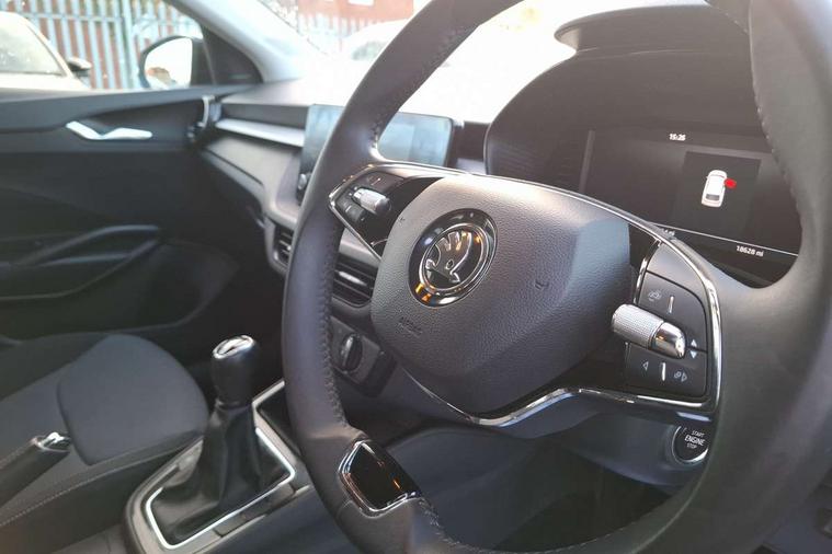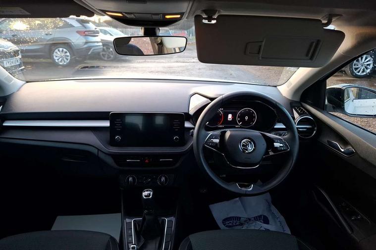 Bluetooth connection, Driver alert system - DAS, Electromechanical power steering, Exterior temperature gauge, Lane assist including road edge detection, Service interval indicator, Virtual cockpit with 10.25" colour display, 2x USB-C in the front (for data transmission and charging), 6 Speakers (4 in front and 2 in rear), Auxiliary socket for external MP3 player, Bolero radio with 8" colour display, DAB digital radio reception, Basic LED Headlights, Body coloured bumpers, Dimming rear view mirror with black frame, Door mirror integrated indicators, Electrically adjustable and heated door mirrors, Electrically adjustable front windows with function auto up/down, Front fog lights, Front window wiper intermittent control, Headlight range control - Automatic, Ice scraper in fuel cap, LED daytime running lights with coming and leaving home feature, Mechanical adjustable rear windows, Privacy glass, Rain sensor, Rear LED fog light, Rear side wing doors, Rear window wiper with washing nozzles, Roof mounted spoiler, SKODA tailgate lettering in chrome, Third brake light, 2 reading lights in front and 2 reading lights in rear, 3 rear headrests, Backrest split and folding, Central console with fixed cup holder and storage box, Chrome handbrake release button, Fabric upholstery, Gearshift knob/handle in leather, Grain satin black interior door handles, Hand brake lever handle in leather, Height adjustable drivers seat, Height adjustable front headrests, Height adjustable steering wheel, ISOFIX and TopTether anchorage points to the outer rear seats, ISOFIX and TopTether on the front passenger seat, Luggage compartment lighting, Pollen filter, Rear seat bench unsplit, Single front passenger seat, Storm grey headlining, Sun visors with mirror and airbag label on passenger side, Ticket holder, Umbrella in drivers door, 3-point height adjustable front seats belts with pretensioner and force limiter, Automatic warning lights in case of crash, Driver and passengers airbag with switch off function, e-Call+, ESC including ABS, MSR, ASR, EDS, HBA and XDS, Front and rear seat belt warning, FRONT ASSIST (AEB City and AEB Inter Urban), Front side airbags, Head airbags, One tone horn, Pedestrian protection, Three rear 3-points safety seat belts with pretensioner and force limiter including stop function for outer rear seat belts, Tyre pressure monitoring system, Anti-theft alarm system including immobiliser, interior monitoring, backup horn, and towing protection, Central locking with radio remote control, interior controls, SAFE function and 2 foldable keys, KESSY - Keyless engine start/stop, Anodized cross line upper decorative trim, Colour Edition air vents, Grain satin black central console cover, Grain satin black lower decorative trim, Satin black door and side trim panel in front, Anti-theft wheel bolts protection, Super-low rolling resistance tyres,