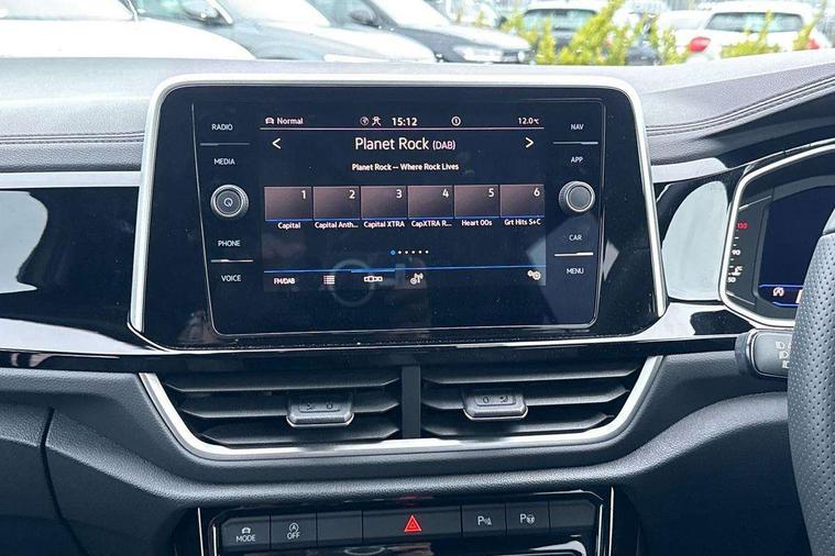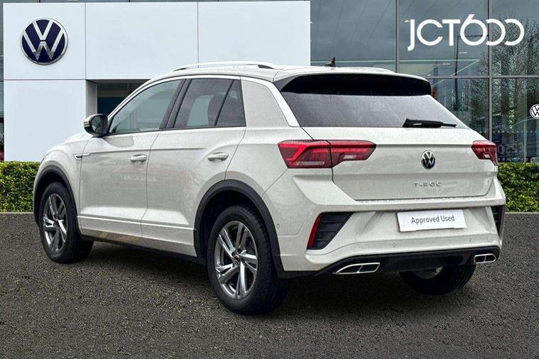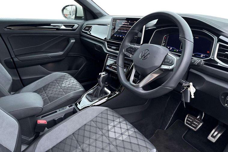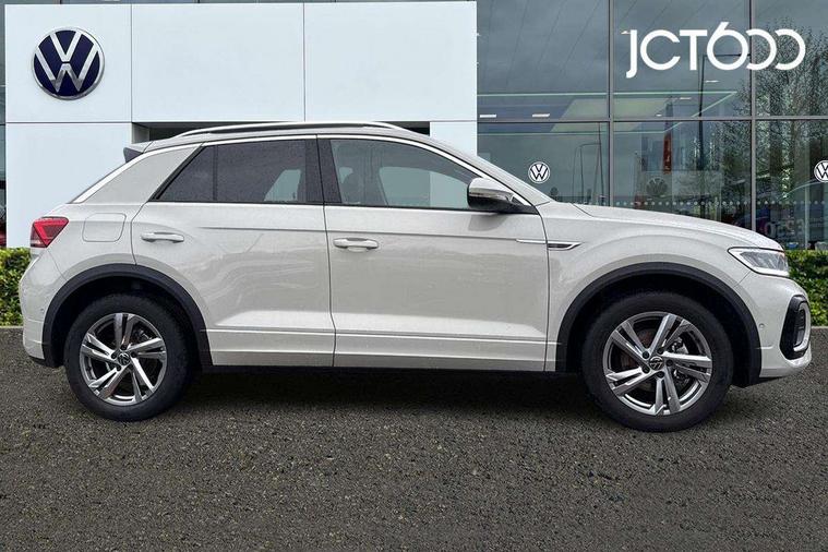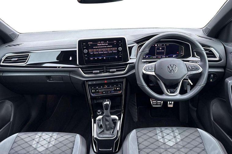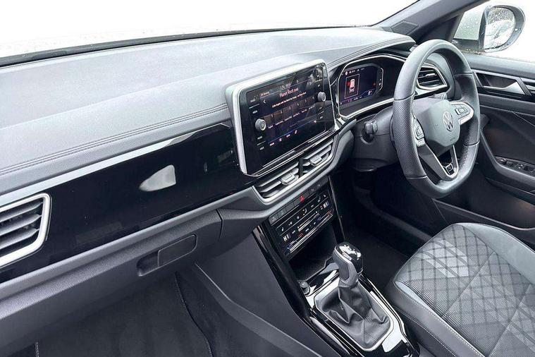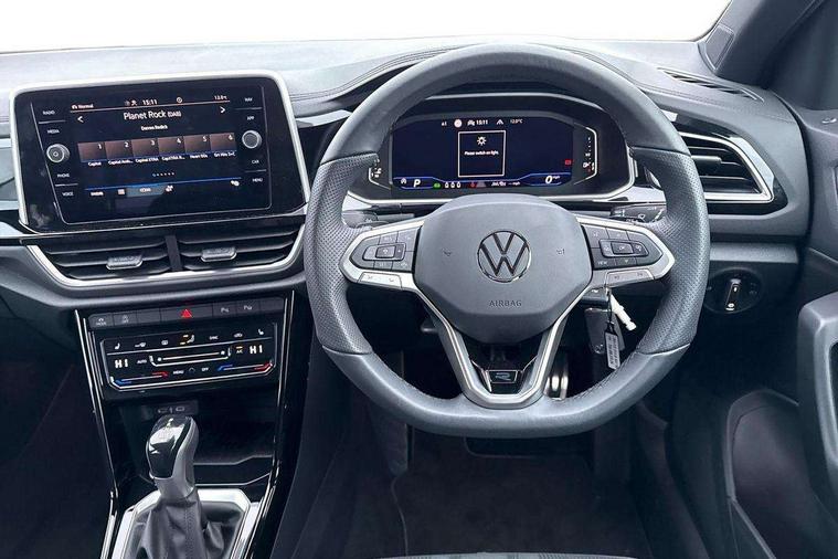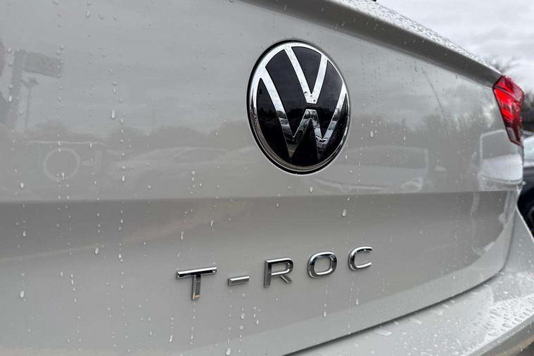 10.25" Digital cockpit pro, Advanced driver attention and drowsiness monitor, Emergency call service, Lane keeping system Lane Assist, Mobile phone interface, Modified key software - reduce switch off time for key status change to Long no motion, Online services, Park assist including front and rear parking sensors, Service interval indicator, Tailgate/trunk lid release from outside, Think blue trainer driver tips and journey analysis, Warning sound and light for front seatbelts unfastened, Wireless app connect, Battery regeneration during braking, Start/stop function with battery regeneration, DAB Digital radio, Diversity antenna for FM reception, Front and rear 6 speakers, Music playback - MP3, WMA and AAC files, Premium USB cable in choice of either Apple or Android smartphone compatibility, SD card slot, Simultaneous pairing of 2 compatible mobile devices, Title and cover art display, We Connect and We Connect Plus functionality, Auto dimming interior rear view mirror, Automatic hazard lights activation under emergency braking, Automatic headlight control with LED separate daytime running lights with coming/leaving home function, Body coloured exterior mirror housings and door handles, Electrically adjustable and heated door mirrors, Extended roof spoiler, Exterior mirrors aspherical on driver side, convex on front passenger side, External USB type C socket and charging sockets, Front windscreen wiper with intermittent wipe and 4 position delay, Heated rear window, LED 3rd brake light, LED rear combination lamps, LED rear number plate lights, Power windows with comfort operation and circuit breaker, Privacy glass for rear side windows and rear window, R-Line design body coloured bumpers, Rain sensor, Rear exhaust tailpipe, Rear fog light on one side and reversing lights on both sides, Rear side wing doors, Rear wash/wipe with intermittent wipe setting, Remote electrically foldable door mirrors, puddle lights and reverse activated passenger's door mirror, 12V power socket in centre console, 3 rear head restraints, 3 seat bench in 2nd row, 4 load lashing points in luggage compartment, Air care climatronic air conditoning system with active combination filter and 2-zone temperature control, Black roof lining, Chrome plated decorative trims, Chrome plated radiator grille inserts, air vent surrounds and light switch surrounds, Door and side trim panel with leatherette insert, Front + rear carpet mats, Front centre armrest, Front cupholders x 2, Front footwell illumination, Front reading light, Front scuff plates with R Line logo, Front seat back storage pockets, Glove compartment door with light, Instrument lighting, white adjustable panel illumination, Interior ambient lighting and surround lighting, Interior light delay, Isofix child seat preparation, Leather gearshift handle, Load-through provision with cup holder when folded down ('Unsplit rear seat bench, split folding backrest, with centre armrest), Luggage compartment lighting, Single front passenger seat, Stainless steel pedals, Storage compartment in left and right luggage area, Storage compartment in rear doors, Storage compartments in driver and front passenger doors, Sunvisors with illuminated vanity mirrors, Variable boot floor, height adjustable and removable, Driver assistance pack without proactive passenger protection - T-Roc, 3 point height adj front seatbelts + pretensioners, 3 point seatbelts in outer rear with ECE label, ABS, Child locks on rear doors, City emergency braking and pedestrian monitoring, Driver and front passenger airbag with front passenger airbag deactivation, Driver and front passenger safety-optimised head restraints, Drivers seatbelt reminder, Electronic parking brake, Electronic Stability Control (ESC) inc EDL (Electronic Differential Lock) and ASR (Traction Control), Front and rear passengers curtain airbag system including front side airbags, Hill start assist, Predictive pedestrian protection, Rear disc brakes, Two tone horn, Tyre pressure loss indicator, Volkswagen roadside assistance, Piano black decorative inserts in dashboard and front door trim panels, Trims for alloy wheels,