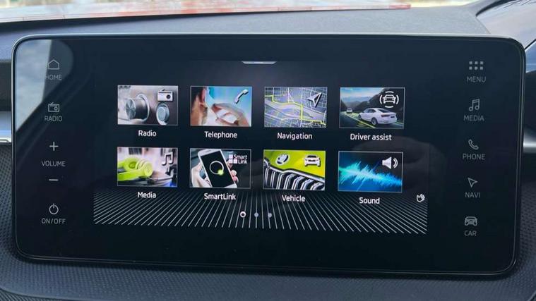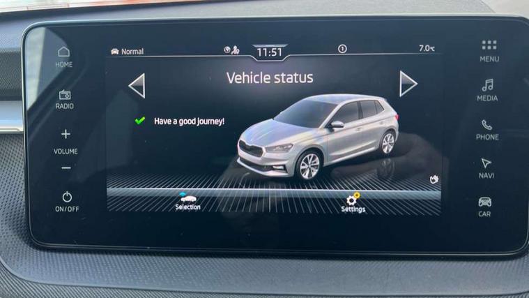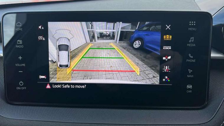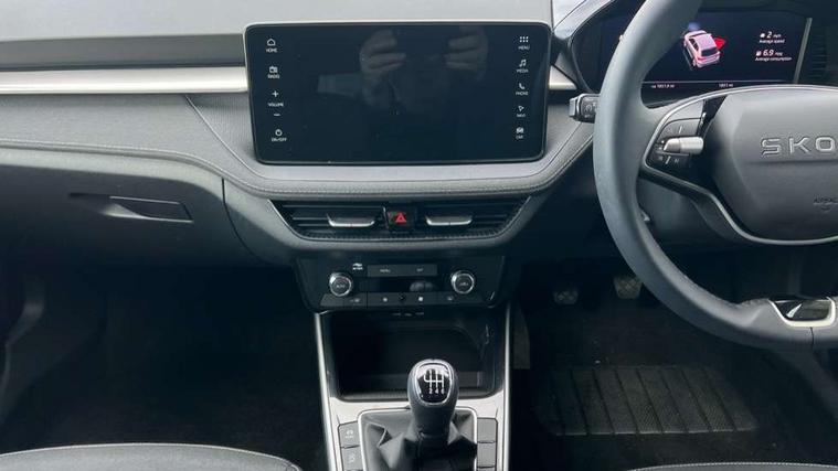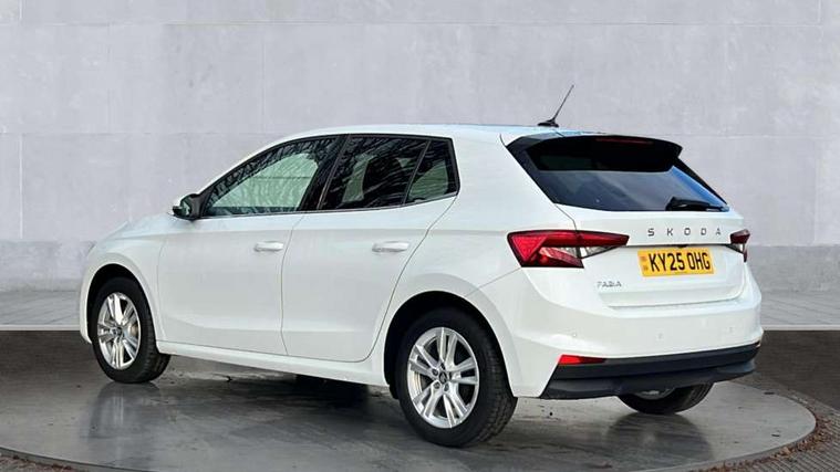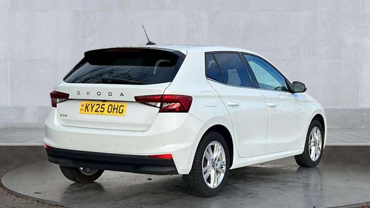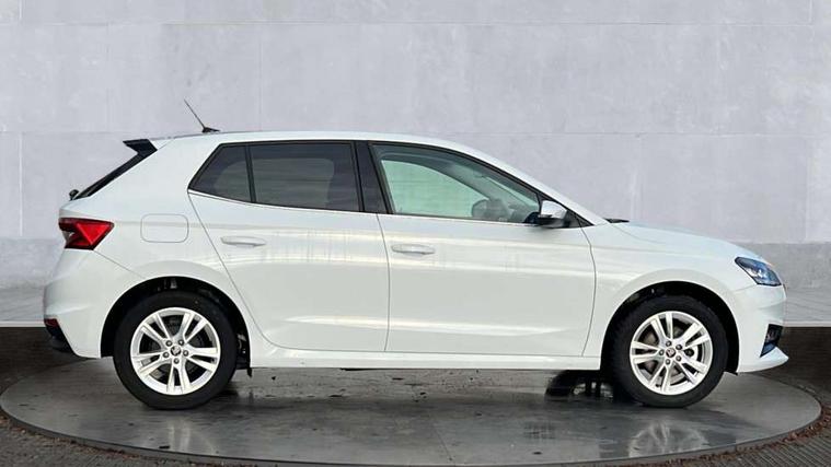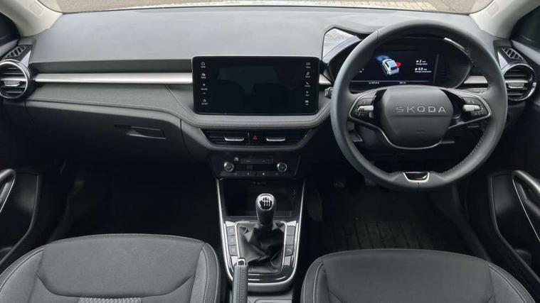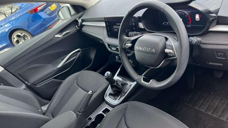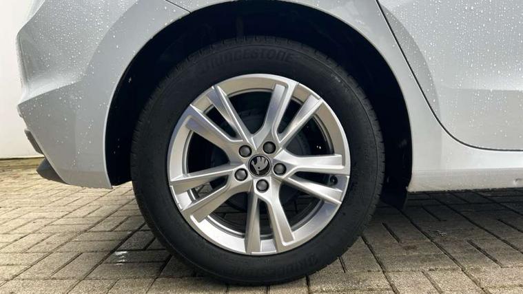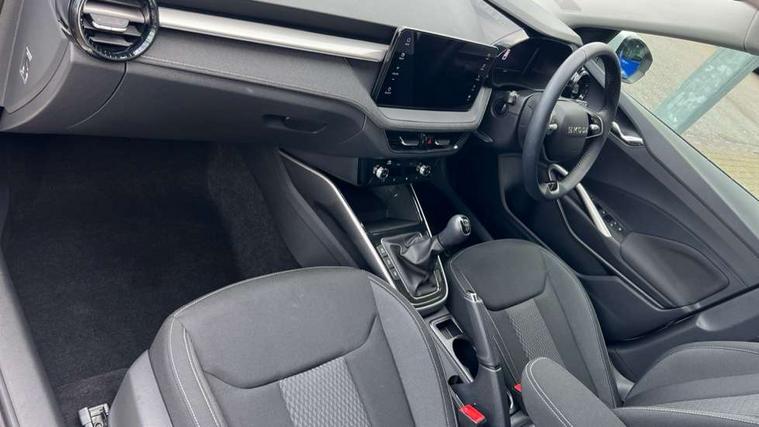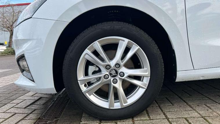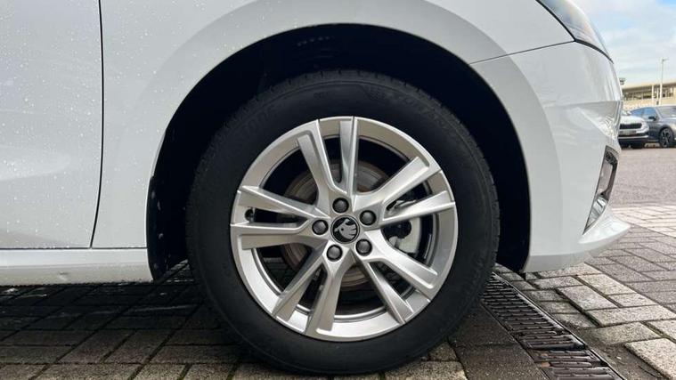 Advanced driver attention and drowsiness monitor, Bluetooth connection, Electromechanical power steering, Exterior temperature gauge, Service interval indicator, Traffic sign recognition, Virtual cockpit with 10.25" colour display, Wireless SmartLink for Apple CarPlay and Android Auto, 6 Speakers (4 in front and 2 in rear), 9.2" colour display skoda navigation system with voice control and web radio, Auxiliary socket for external MP3 player, DAB digital radio reception, Auto dimming rear view mirror, Body colour door mirrors, Body coloured bumpers, Chrome window surround, Door mirror integrated indicators, Front and rear electric windows, Front window wiper intermittent control, Headlight range control - Automatic, Ice scraper in fuel cap, LED 3rd brake light, LED daytime running lights with coming and leaving home feature, LED rear lights, Privacy glass, Rear LED fog light, Rear side wing doors, Rear window wiper with washing nozzles, Roof mounted spoiler, SKODA tailgate lettering in chrome, Unique dark chrome design logo on alloy wheels, 2 LED reading lights in front and rear, 3 rear headrests, Backrest split and folding, Central console with removable cup holder and storage box, Chrome handbrake release button, Comfort seats, Door sills with fabia badging, Dual zone air conditioning with climatronic electronic control, Fabric upholstery, Front centre armrest, Gearshift knob/handle in leather, Hand brake lever handle in leather, Height adjustable front headrests, Height adjustable front seats, Height adjustable steering wheel, ISOFIX and TopTether anchorage points to the outer rear seats, ISOFIX and TopTether on the front passenger seat, Luggage compartment lighting, Manually adjustable lumbar support in front seats, Metallic grey interior door handles, Pollen filter, Rear seat bench unsplit, Single front passenger seat, Skoda lettering on steering wheel, Storm grey headlining, Sun visors with mirror and airbag label on passenger side, Textile floor mats, Ticket holder, Umbrella in drivers door, 3-point height adjustable front seats belts with pretensioner and force limiter, Automatic warning lights in case of crash, Driver and passengers airbag with switch off function, e-Call+, ESC including ABS, MSR, ASR, EDS, HBA and XDS, Front and rear seat belt warning, FRONT ASSIST (AEB City and AEB Inter Urban), Front side airbags, Head airbags, One tone horn, Pedestrian protection, Three rear 3-points safety seat belts with pretensioner and force limiter including stop function for outer rear seat belts, Tyre pressure monitoring system, Anti-theft alarm system including immobiliser, interior monitoring, backup horn, and towing protection, Central locking with radio remote control, interior controls, SAFE function and 2 foldable keys, Black painted air vents, Metallic grey central console cover, Metallic grey upper decorative trim, Satin black door and side trim panel in front, Textile microsuede grey lower decorative trim with art grey stitching, Anti-theft wheel bolts protection, Super-low rolling resistance tyres,