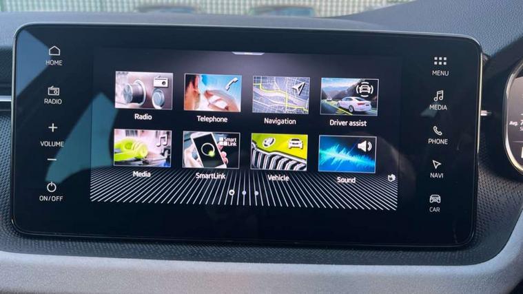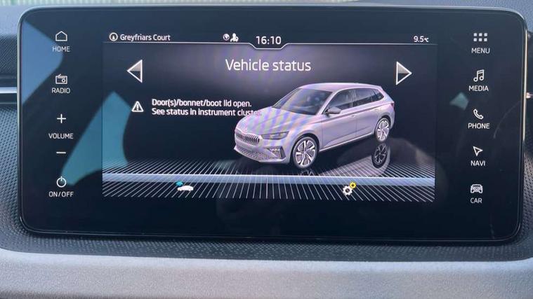Advanced driver attention and drowsiness monitor, Bluetooth, e-Call (emergency call), Front assist system, PAS, Rear parking sensors, Speed limiter, Tailgate, Traffic sign recognition, Virtual Cockpit - 10.25" digital display, Voice control system, Wireless smartlink, 4 USB C ports, 8 Speakers, 9.2" Skoda navigation display, DAB radio, Auto dimming rear view mirror, Automatic headlamp activation with Coming home and Leaving home feature, Automatic high/low beam, Automatic intermittent wipers, Body colour bumpers, Body colour door mirrors and handles, Chrome moulding around grille, Chrome window frames, Front and rear electric windows, Heated rear window, LED 3rd brake light, LED brake lights, LED daytime running lights, LED front turning lights, LED high beam, LED low beam, Light sensors, Privacy glass, Rear LED fog light, Rear side wing doors, Rear wiper, Tinted windows, 12V socket in luggage compartment, 3 seat bench in 2nd row, Ambient lighting in white/red, Black / Copper armrest stitching, Cargo elements, Chrome inner door handles, Copper hotstamping, Door inserts in accent black, Driver and passenger sun visors with vanity mirror, Dual zone climate control, Front and rear roof lights, Front centre armrest, Front head restraints, Glasses storage in roof liner, Height adjustable driver seat, Height adjustable passenger seat, Ice scraper, Illuminated glove compartment, Inner circulation control with pollen filter, ISOFIX for front passenger seat, Isofix preparation for back seats, Leather gearknob and handbrake lever, Lodge cloth upholstery, Luggage net under rear parcel shelf, Manual lumbar support for front seats, Net package and top tether hooks in boot space, Pearl grey ceiling, Pocket on the back of both front seats, incl. mobile phone pockets, Rear centre armrest, Single front passenger seat, Textile floor mats, Third rear headrest, Ticket holder, Top tether for front passenger seat, Umbrella in driver's door, 3x3 point rear seatbelts, ABS, Child locks, Curtain airbags and front side airbags, Disc brakes, Driver and front passenger airbags, ESP, Hill hold control, Manual leather parking brake, One tone horn, Passenger airbag switch off function, Seatbelt reminder for driver and front passenger, Tyre pressure monitoring system, Anti theft alarm system with interior monitoring, backup horn and towing protection, Anti-theft wheel bolts, Remote central locking with 2 remote folding keys, SAFE function for remote central locking, Decorative inserts,