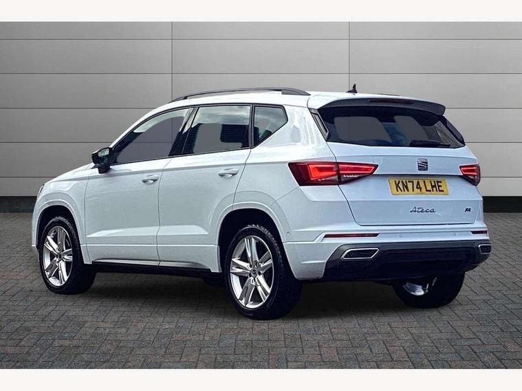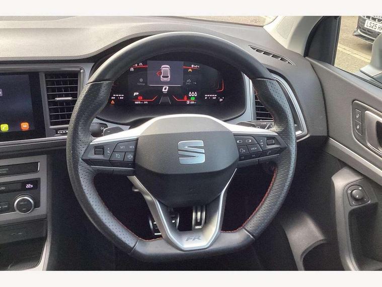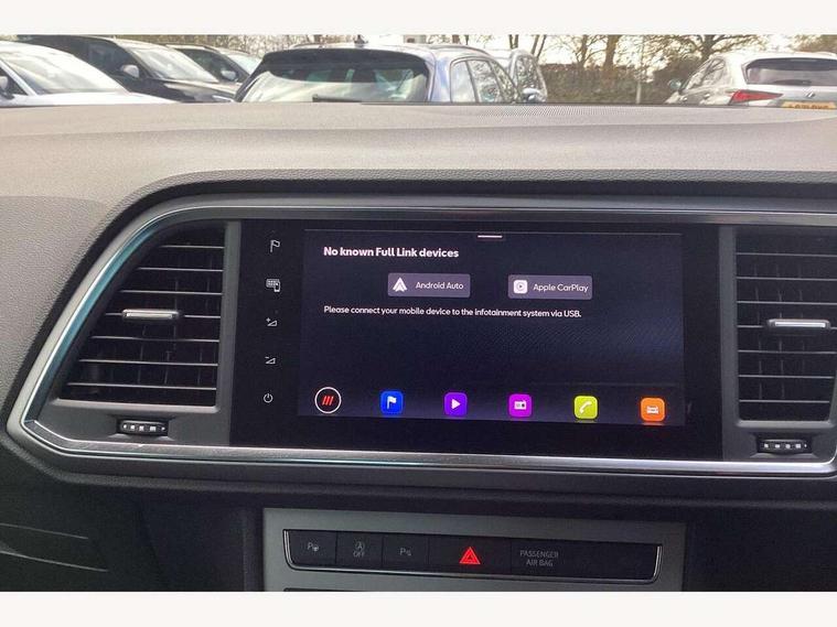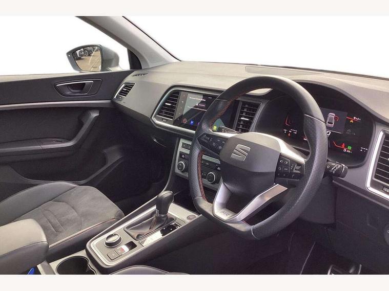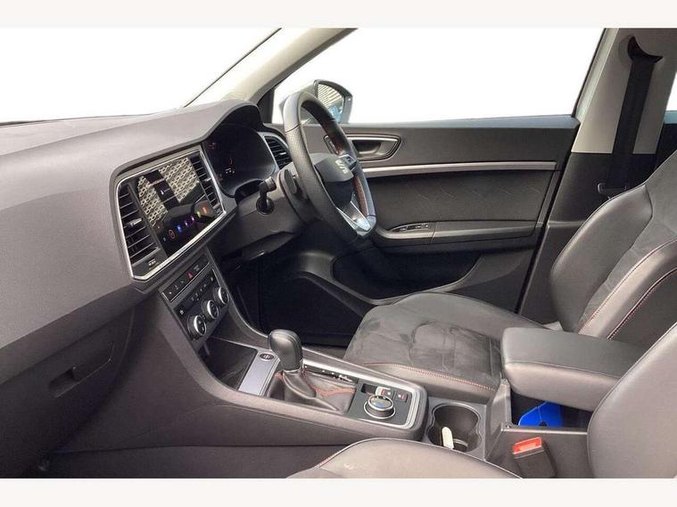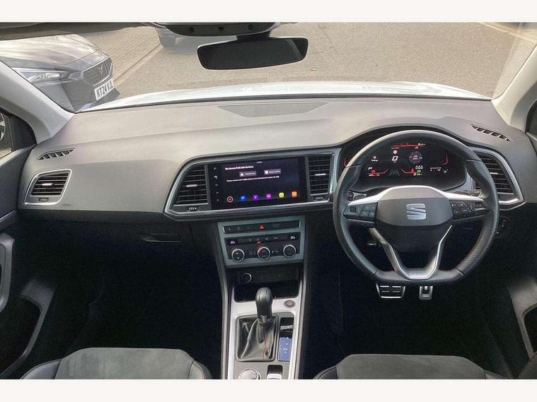 8" Digital cockpit, Colour multi-function on board computer display, Cruise control system with speed limiter, E-call, Outside temperature gauge, Progressive power assisted steering, SEAT drive profile with driving experience button - Normal, Sport, Eco and Individual mode, gearshift, steering and throttle response, Self parking functionality (includes front and rear parking sensors), Start/stop system, Tailgate, Trip computer, Wireless full link smartphone integration, Wireless phone charger, Steering wheel mounted audio/phone controls, Black roof rails, Black side window trim, Body colour bumpers, Body coloured wheel arch surrounds, Chrome front grille frame, Dark tinted rear windows, Daytime running lights, Door mirrors with welcome light silhouette, Dynamic headlight range control with self adjusting whilst driving, Electric adjustable/heated/folding door mirrors, Front and rear electric windows, Full LED headlamps with lens and LED front fog lamps with cornering function, Illuminated aluminium front door sill, LED 3rd brake light, LED rear tail lights with dynamic indicators, Rear exhaust tailpipe, Rear fog lights, Rear side wing doors, Rear wash/wipe, Roof spoiler, Variable front intermittent wipers, 12V socket in front, 3 seat bench in 2nd row, 60/40 split folding rear seat, Aluminium pedals, Dinamica upholstery with front comfort seats, Drawer under right front seat, Dual zone climate control, Front and rear head restraints, Front centre armrest, Front seat back storage pockets, Height adjustable driver and passenger seat with lumbar adjustment, ISOFIX points in outer rear seats with top tether anchorage points, Leather sports steering wheel and gear knob, Rear armrest and easy back seat release mechanism from boot, Single front passenger seat, Steering wheel mounted gearshift paddles, Convenience pack - Ateca, Interior lighting pack - Ateca, Navigation system pack with DAB - Ateca, Safety and driving pack with attention and drowsiness assist - Ateca, 3x3 point rear seatbelts, ABS, Traction control system (TCS), Electronic stability control (ESC) and Electronic differential lock system (XDS), Airbags - Driver and front passenger airbag with deactivation, front side, two curtain and driver's knee airbags, Electric parking brake with auto hold function, Front and rear seatbelt reminder, Front assist with autonomous emergency braking, Hill hold control, Manual rear child locks, Single tone horn, Tiredness recognition system, Tyre pressure monitoring system, Alarm, Keyless entry, Locking wheel bolts, Remote central locking, Chrome interior detailing, 18" Brillaint silver alloy wheels,