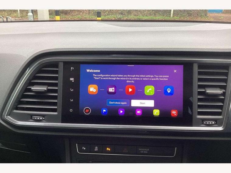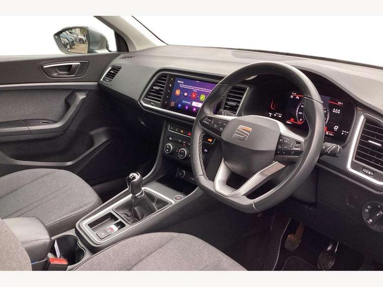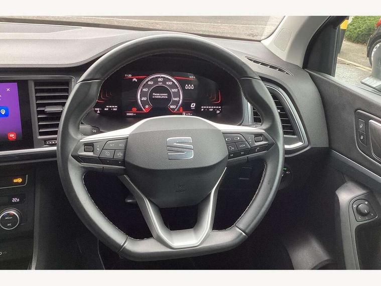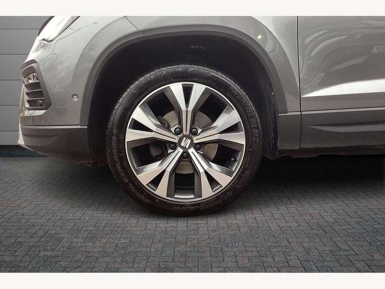 8" Digital cockpit, Colour multi-function on board computer display, Cruise control system with speed limiter, E-call, Outside temperature gauge, PAS, SEAT drive profile with driving experience button - Normal, Sport, Eco and Individual mode, steering and throttle response, Self parking functionality (includes front and rear parking sensors), Start/stop system, Tailgate, Trip computer, Wireless full link smartphone integration, Wireless phone charger, Steering wheel mounted audio/phone controls, Black wheel arch surrounds, Body colour bumpers, Chrome front grille frame, Chrome roof rails, Chrome side window trim, Daytime running lights, Door mirrors with welcome light silhouette, Dynamic headlight range control with self adjusting whilst driving, Electric adjustable/heated/folding door mirrors, Front and rear electric windows, Full LED headlamps with lens and LED front fog lamps with cornering function, LED rear tail lights with dynamic indicators, Rear fog lights, Rear side wing doors, Rear wash/wipe, Simulated exhaust pipes, Variable front intermittent wipers, 12V socket in front, 3 seat bench in 2nd row, 60/40 split folding rear seat, Cloth upholstery with front comfort seats, Drawer under right front seat, Dual zone climate control, Front and rear head restraints, Front centre armrest, Front seat back storage pockets, Height adjustable driver and passenger seat with lumbar adjustment, ISOFIX points in outer rear seats with top tether anchorage points, Leather steering wheel and gear knob, Rear armrest and easy back seat release mechanism from boot, Single front passenger seat, Interior lighting pack - Ateca, Navigation system pack with DAB - Ateca, 3x3 point rear seatbelts, ABS, Traction control system (TCS), Electronic stability control (ESC) and Electronic differential lock system (XDS), Airbags - Driver and front passenger airbag with deactivation, front side, two curtain and driver's knee airbags, Electric parking brake with auto hold function, Front and rear seatbelt reminder, Front assist with autonomous emergency braking, Hill hold control, Manual rear child locks, Single tone horn, Tiredness recognition system, Traction control, Tyre pressure monitoring system, Alarm, Keyless entry, Locking wheel bolts, Remote central locking, Chrome interior detailing, 18" Performance machined alloy wheels 36/2 in nuclear grey,